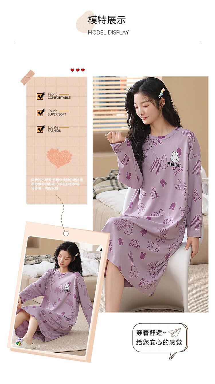 Algodón Otoño Manga Larga Primavera Vestido Largo para Mujer Ropa Exterior Holgada Talla Grande Pijamas Casuales para Mujer para Mujeres Embarazadas