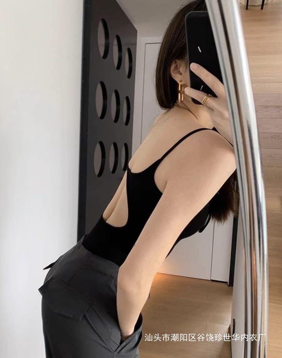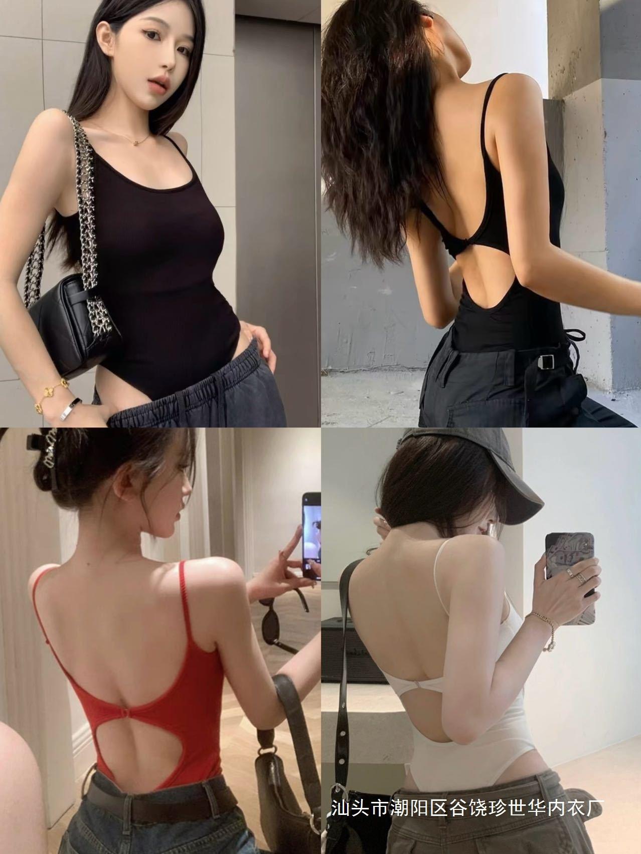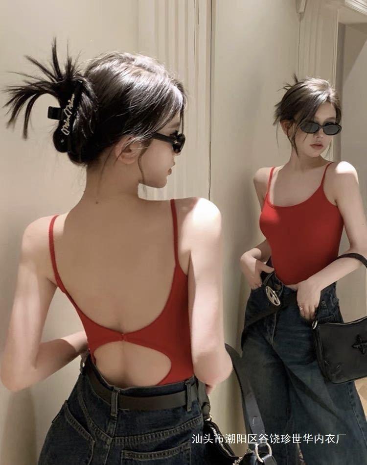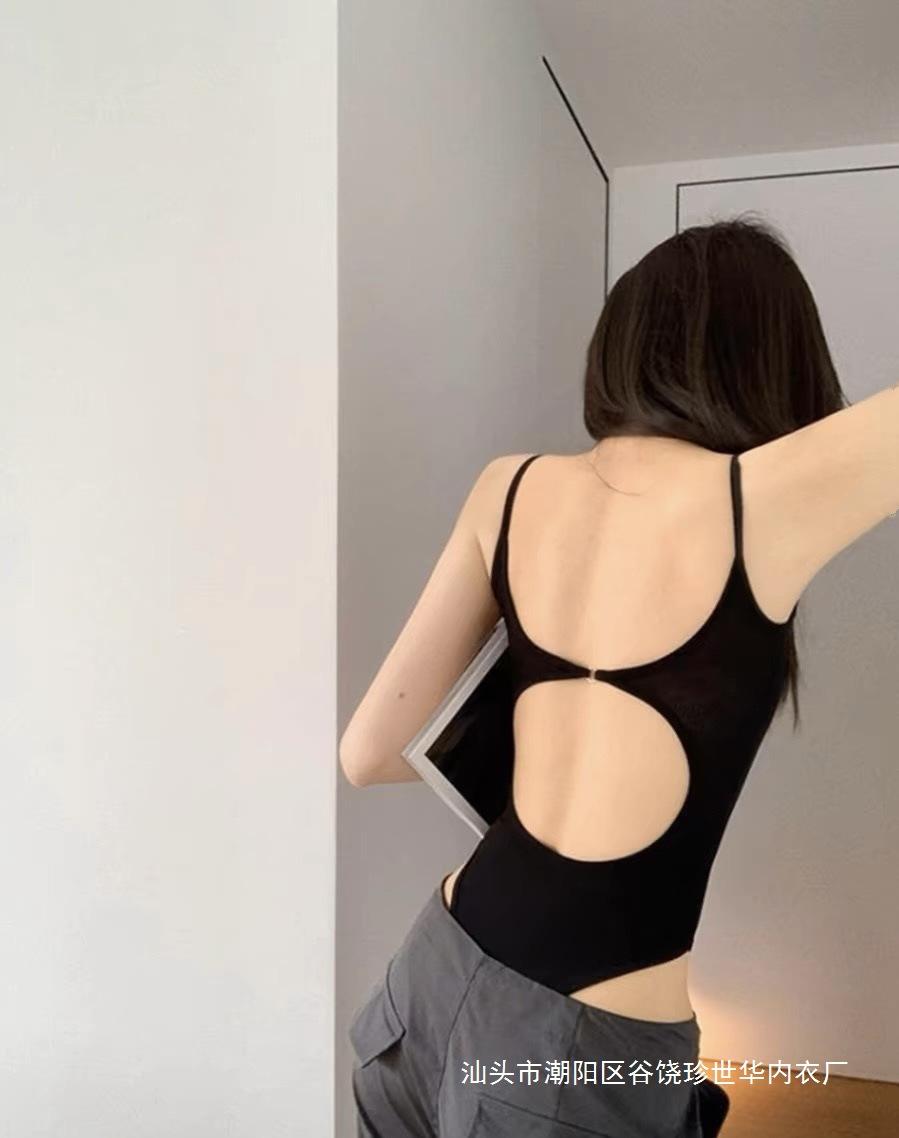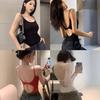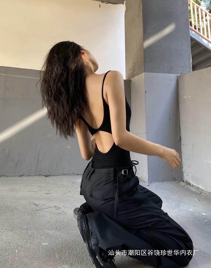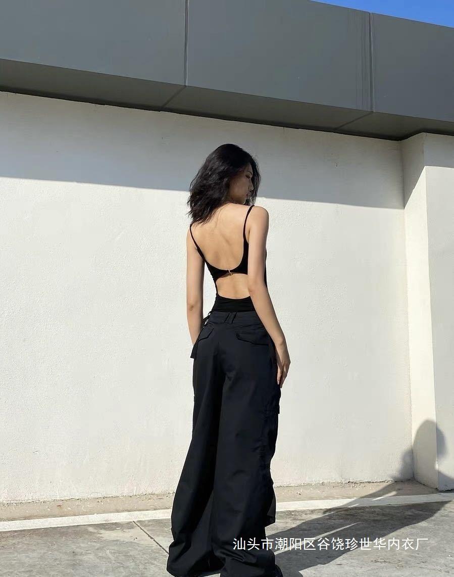 Camisola estilo americano para mujer, estilo sexy, de verano, color negro, con espalda descubierta, interior ajustada, para uso exterior