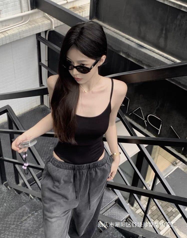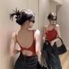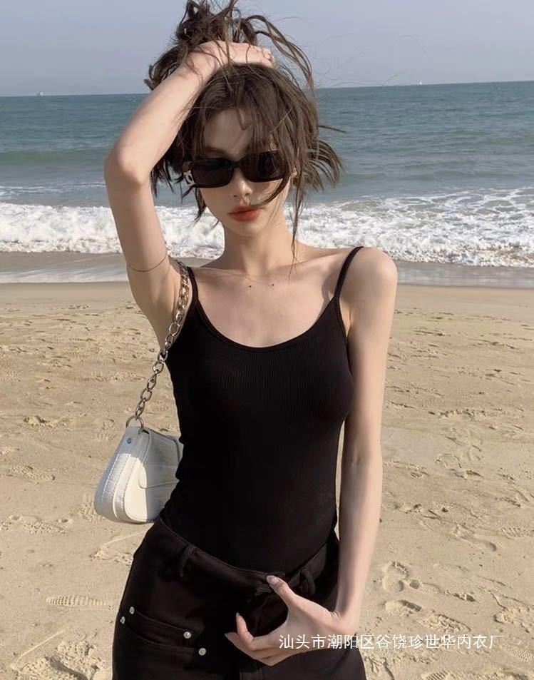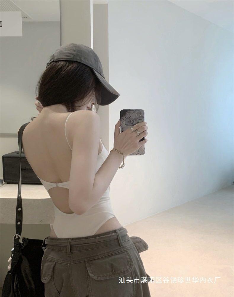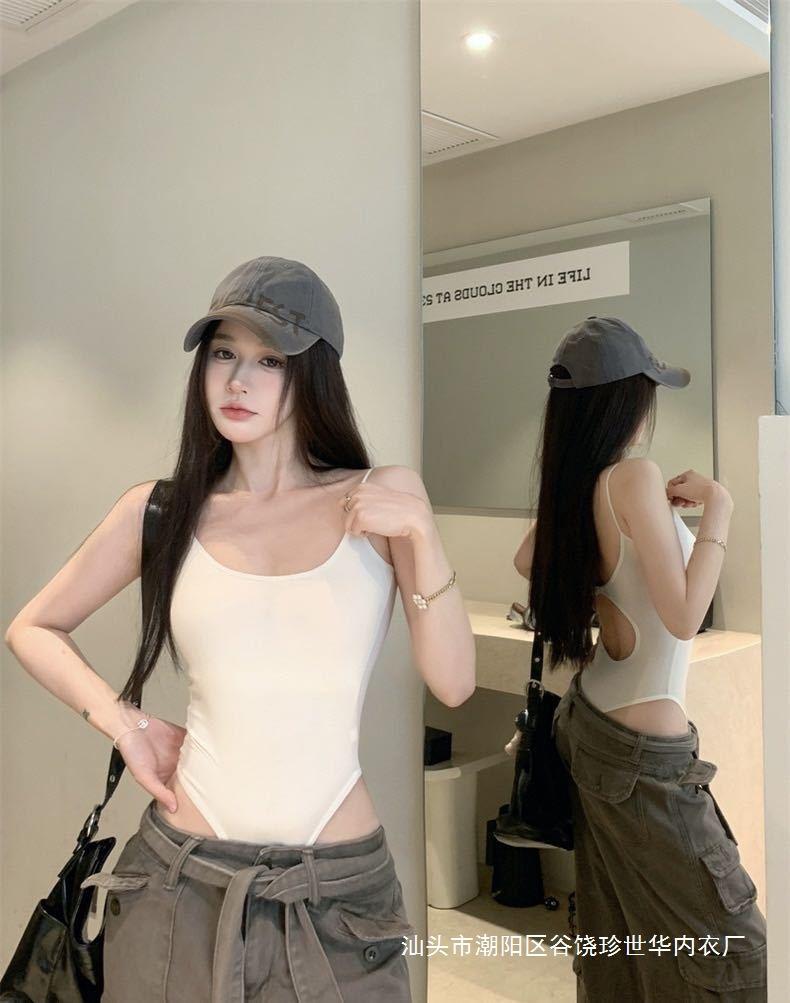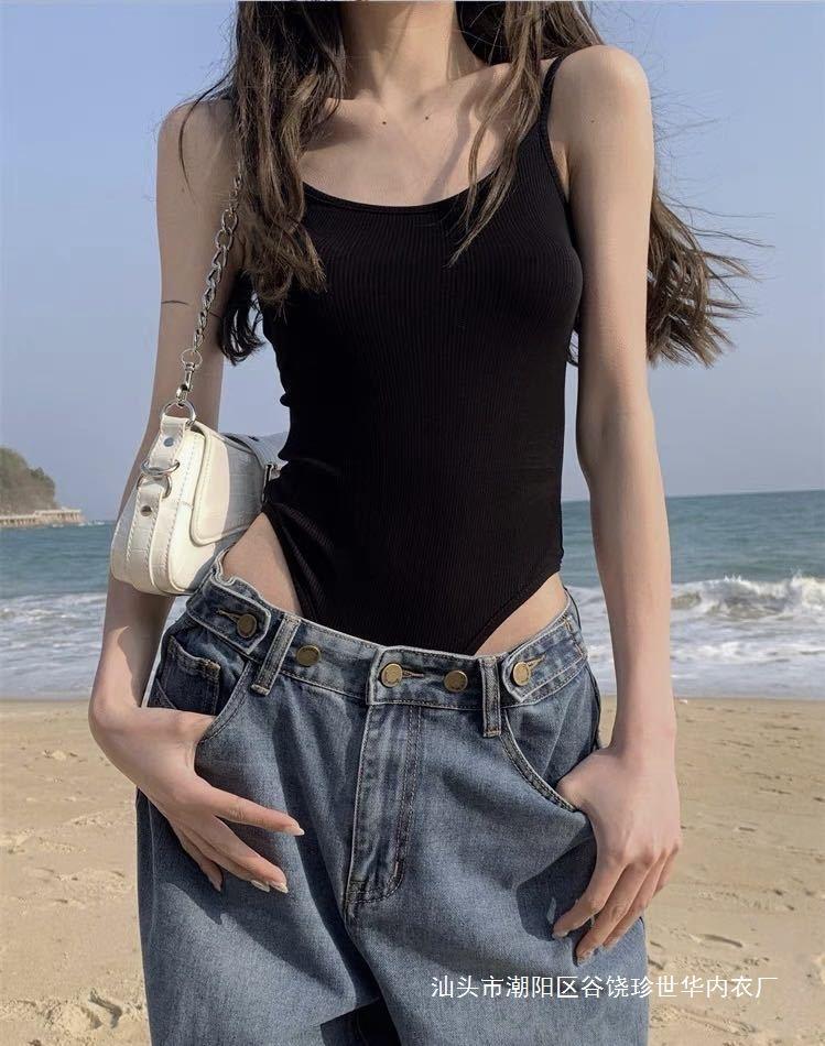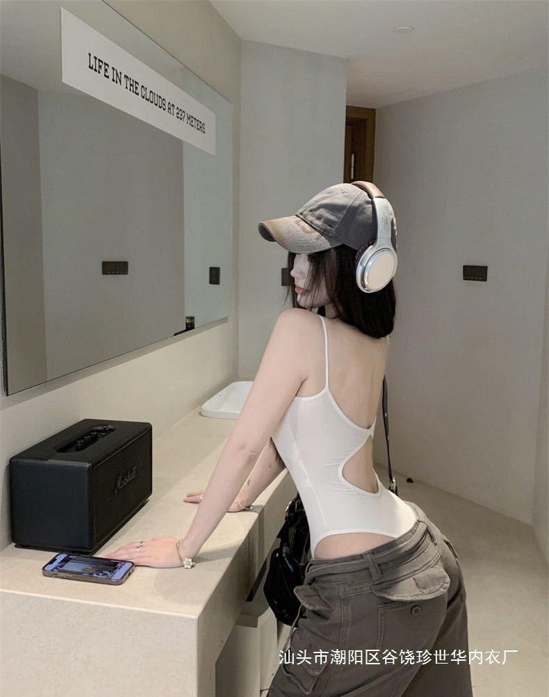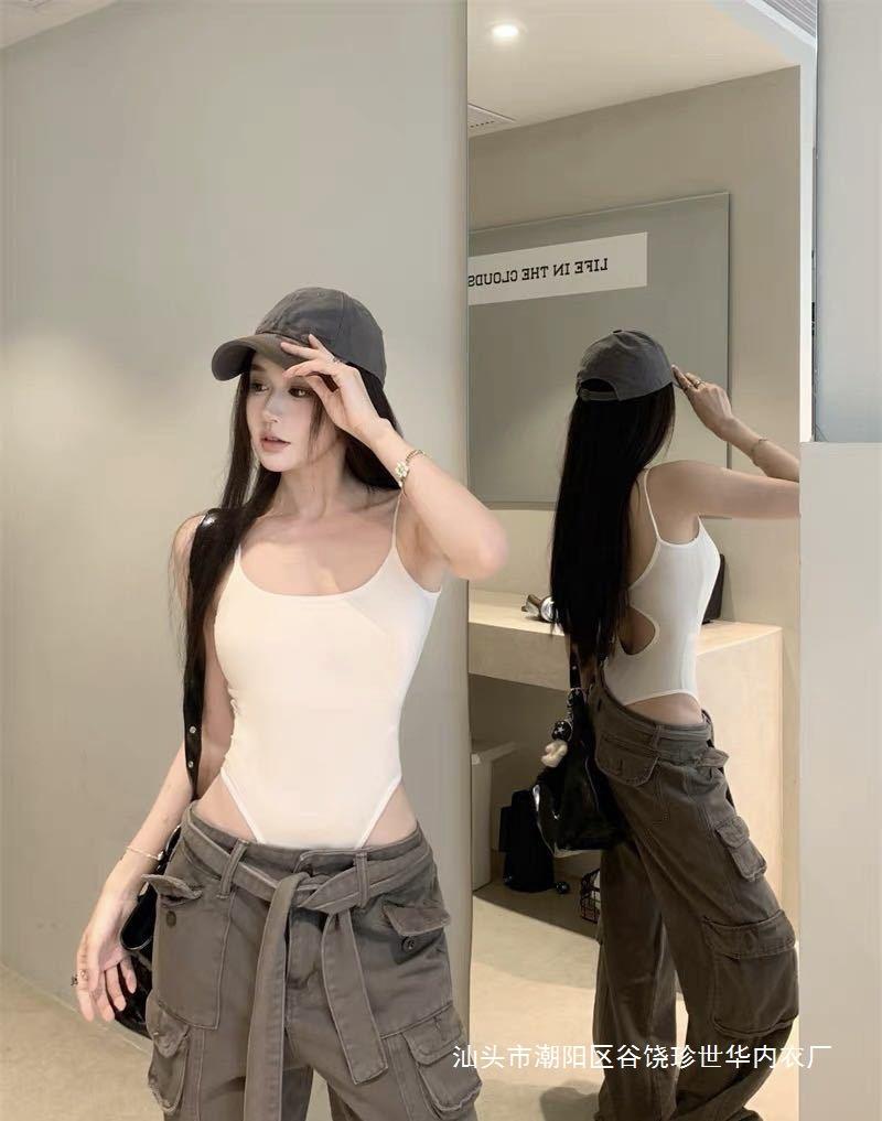 Camisola estilo americano para mujer, estilo sexy, de verano, color negro, con espalda descubierta, interior ajustada, para uso exterior