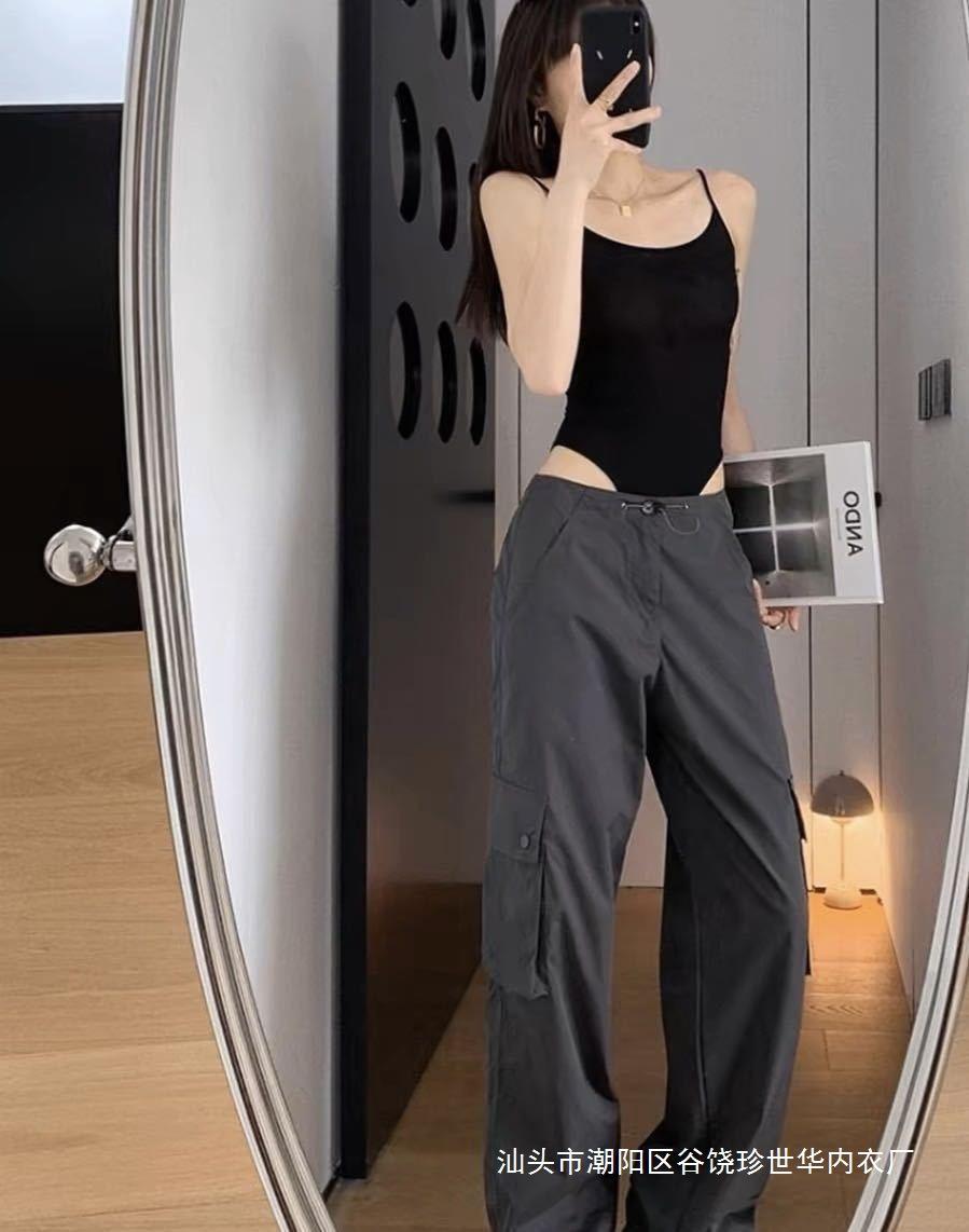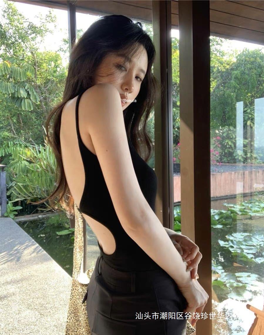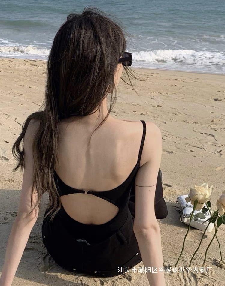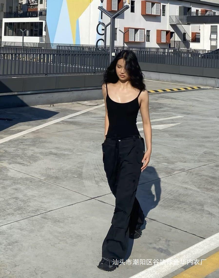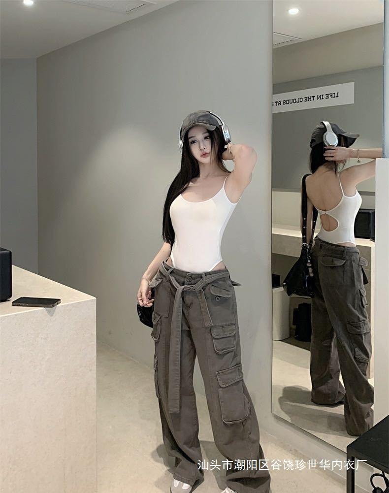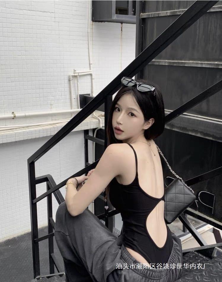 Camisola estilo americano para mujer, estilo sexy, de verano, color negro, con espalda descubierta, interior ajustada, para uso exterior
