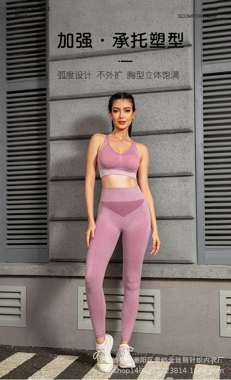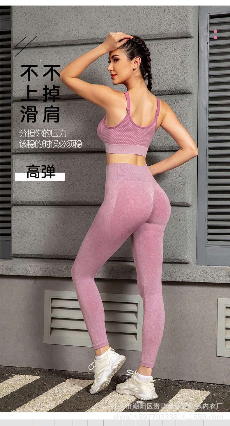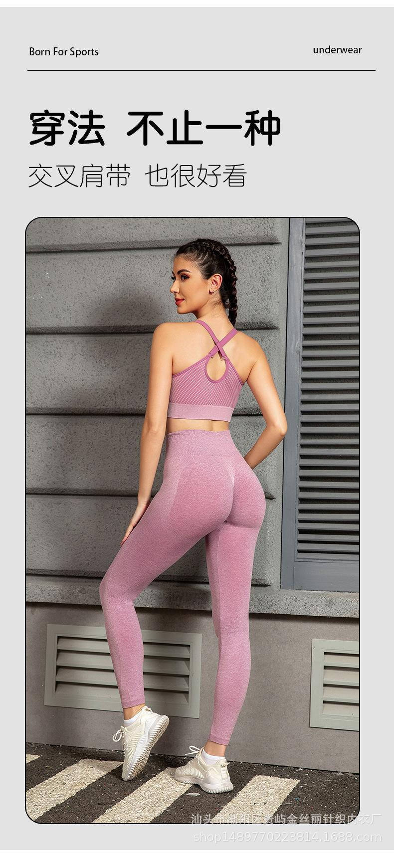Traje de yoga de cintura alta sin costuras para mujer, sujetador sexy con tirantes, pantalones a la cadera, ropa deportiva para correr