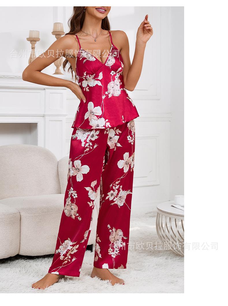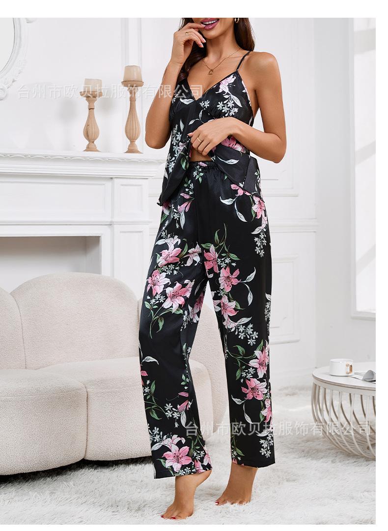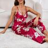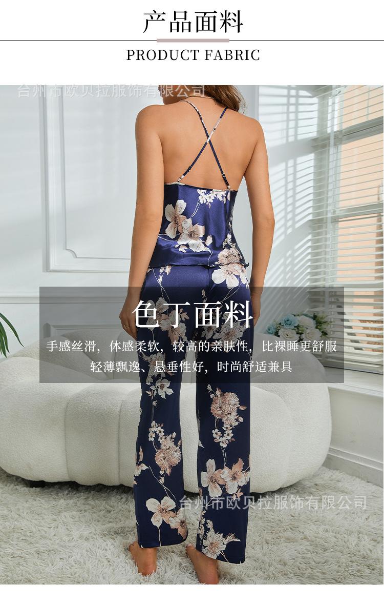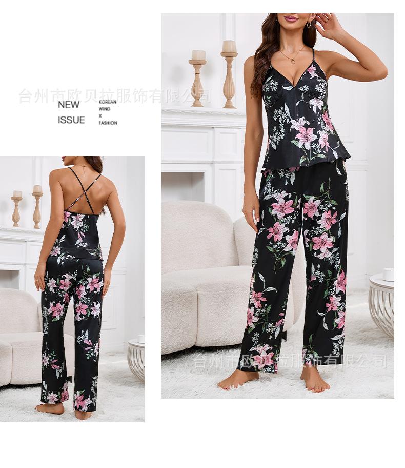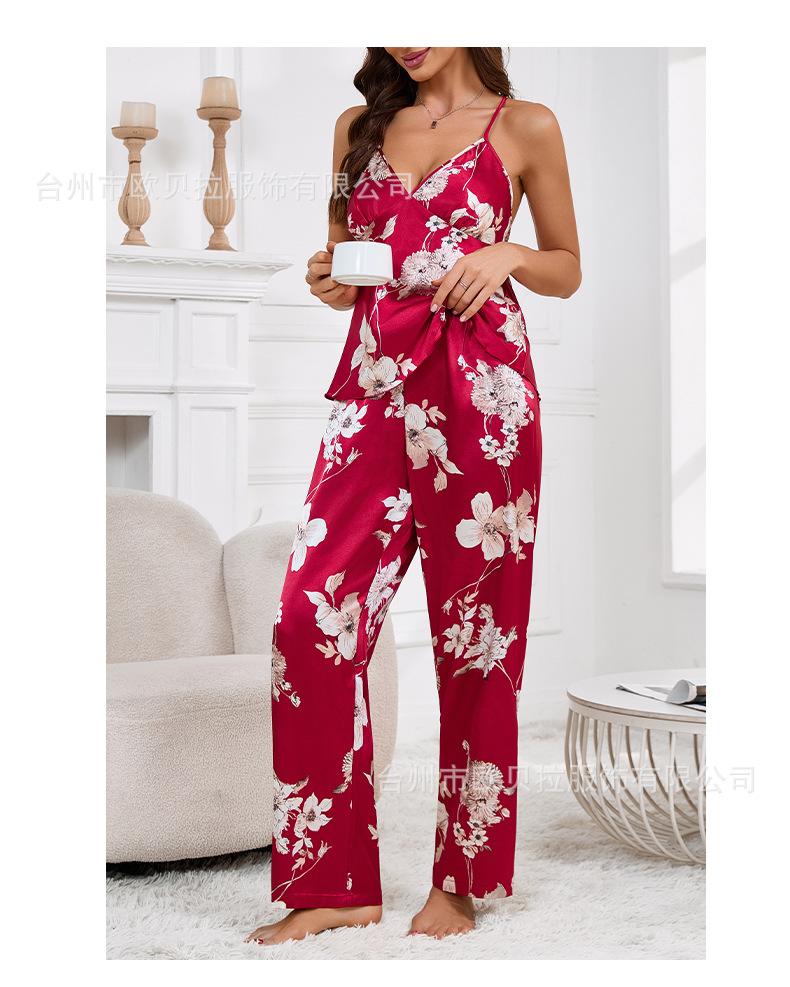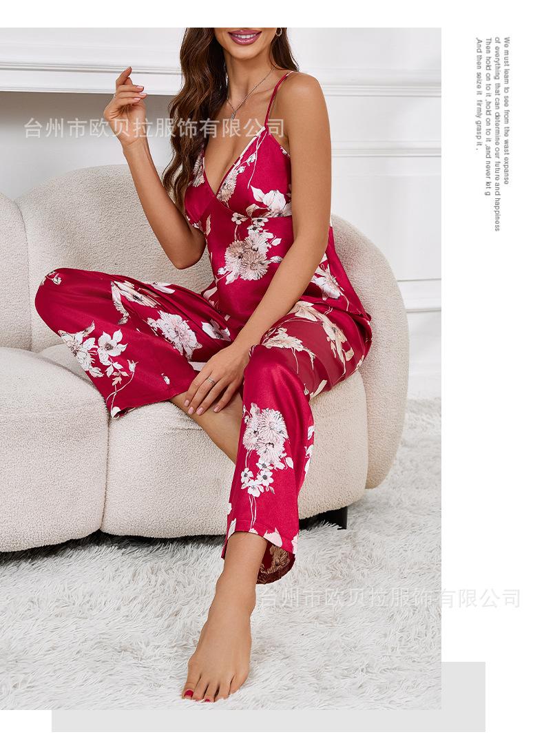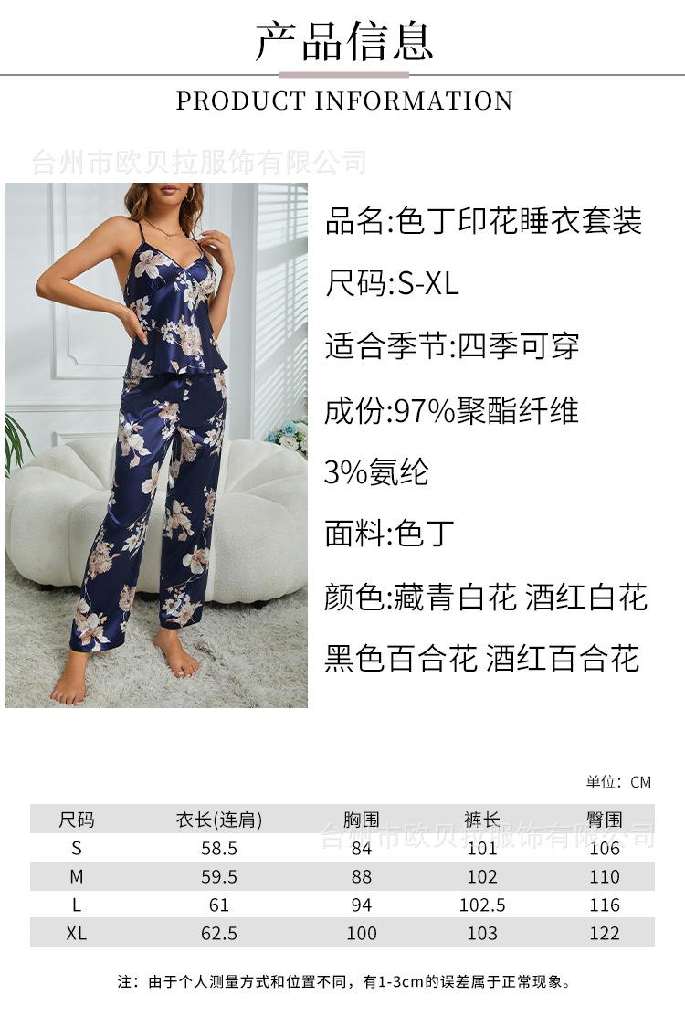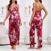 Pantalones de tirantes con estampado de seda de hielo de Amazon para primavera y verano, pijamas sexys de comercio exterior europeo y americano transfronterizos para mujeres TEMU Explosions