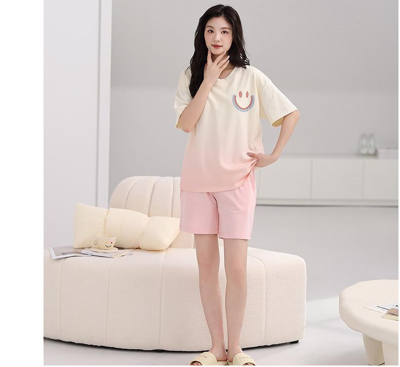 Pijama de Algodón Puro para Mujer Verano Manga Corta Verano Delgado Ropa para el Hogar Estilo Coreano Lindo Pijama para Mujer Traje Casual Ropa de Exterior
