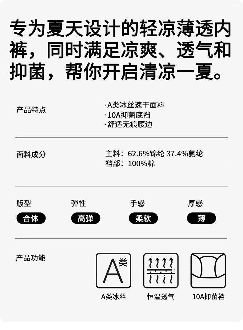 | Ropa interior de cintura alta sin costuras para mujer, pantalones cortos triangulares de cintura alta con realce de abdomen y cadera, transpirables, ultrafinos y sexys de seda de hielo de verano |