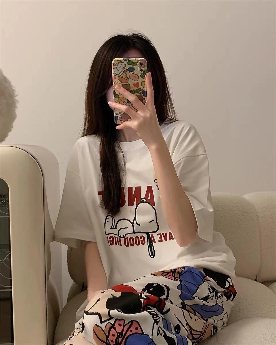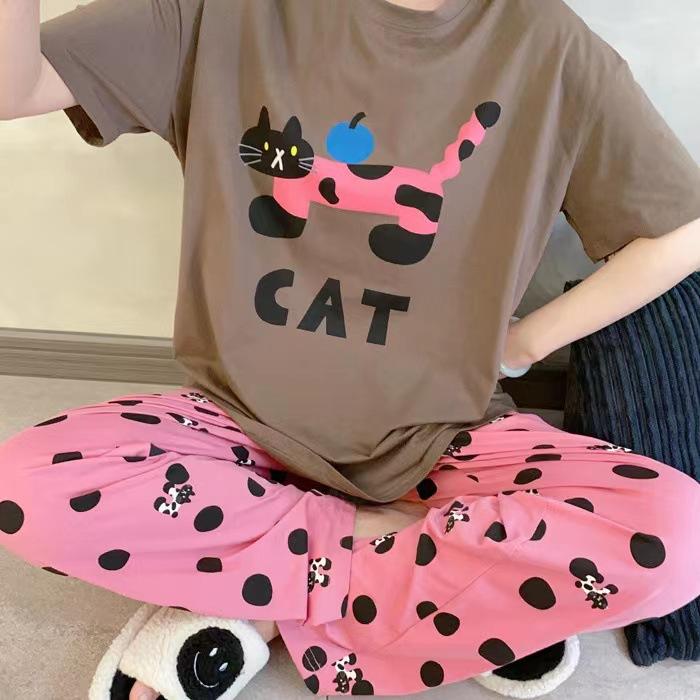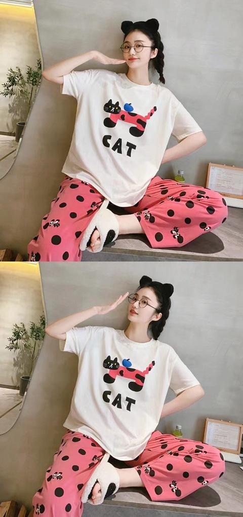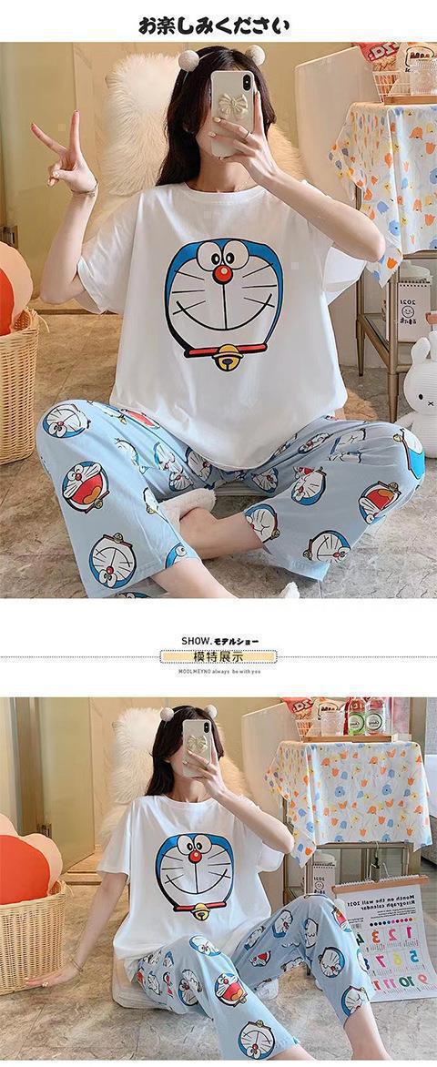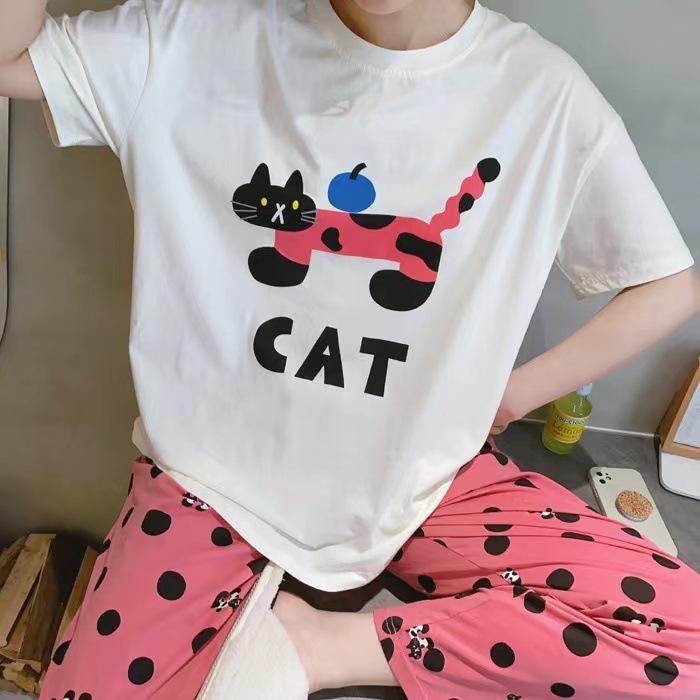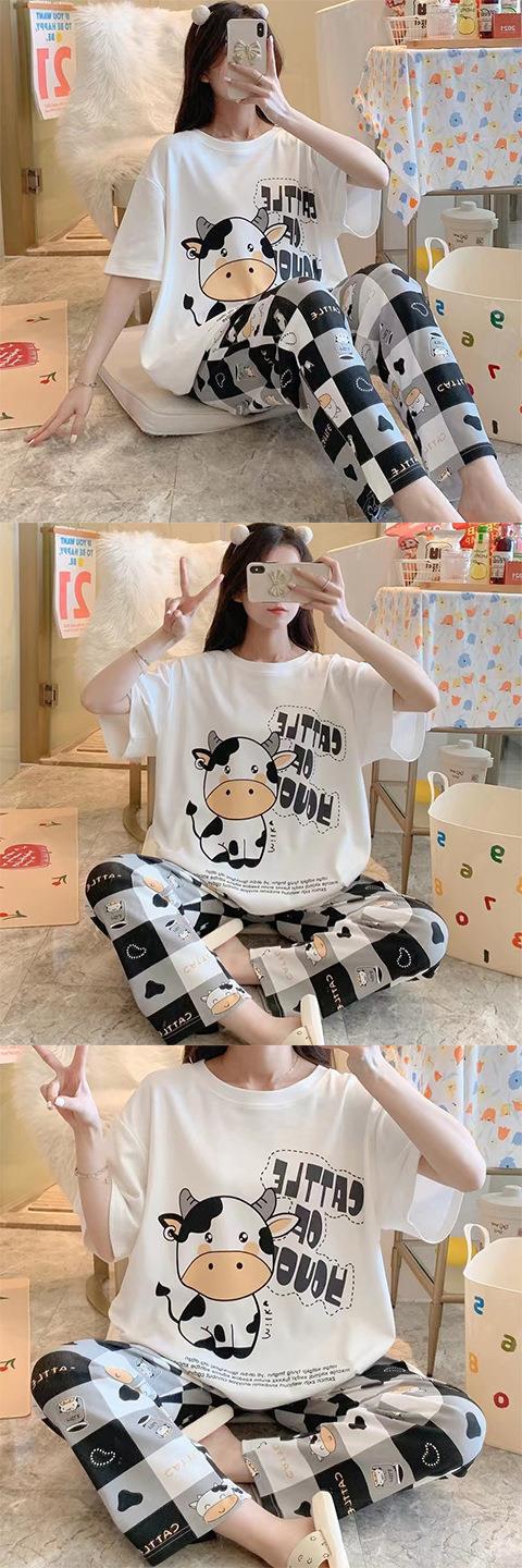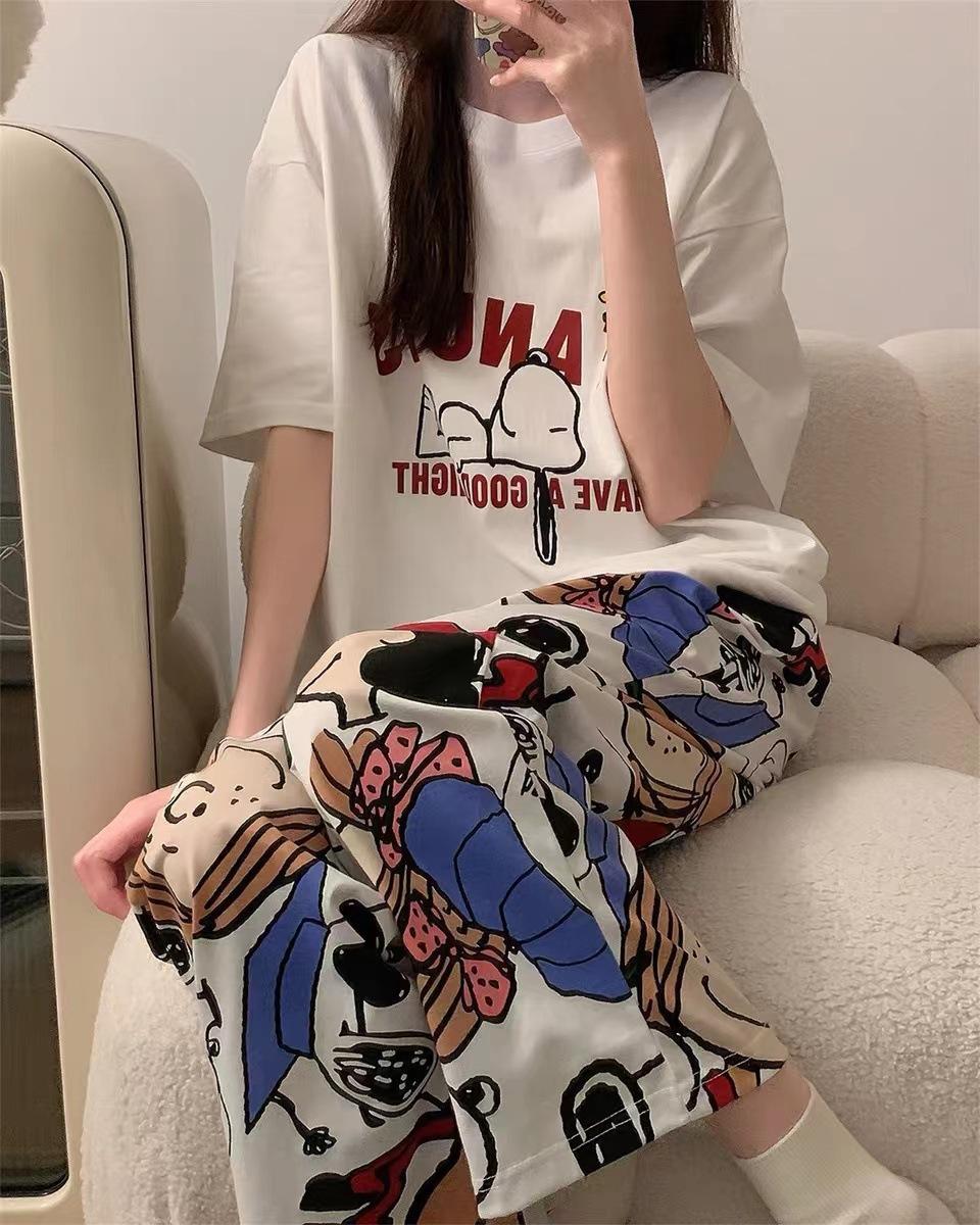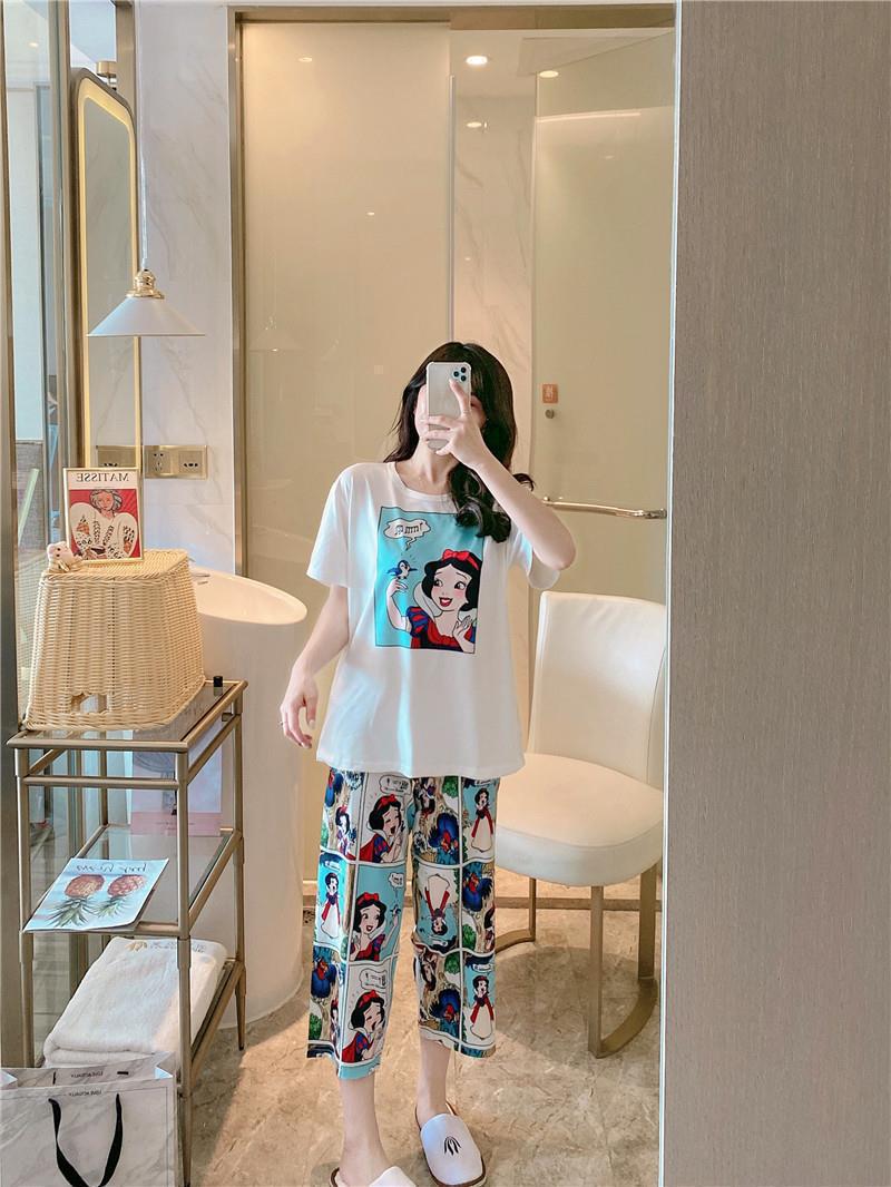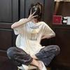 Pijamas 2025 para Mujer Verano Delgados Pantalones de Manga Corta Pintura al Óleo Dibujos Animados Lindo Talla Grande Se Puede Usar Fuera Conjunto de Ropa para el Hogar
