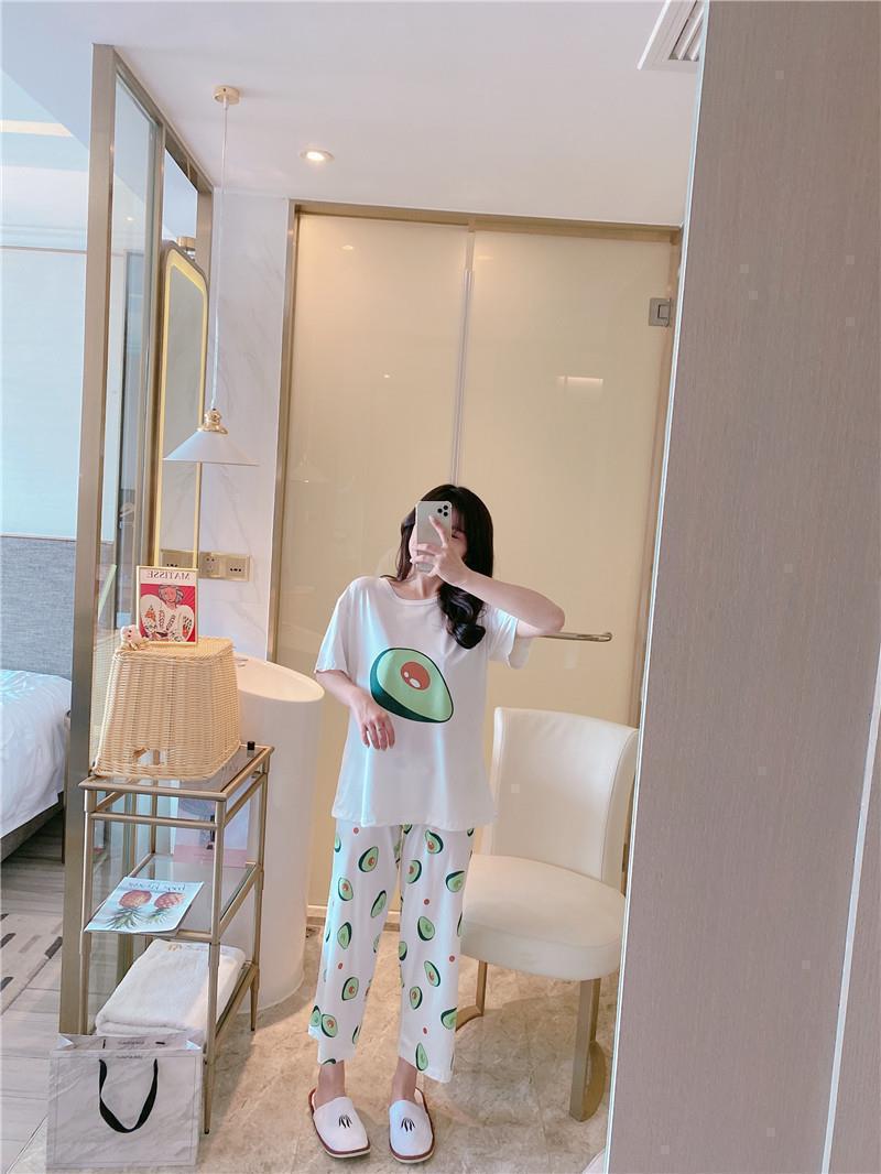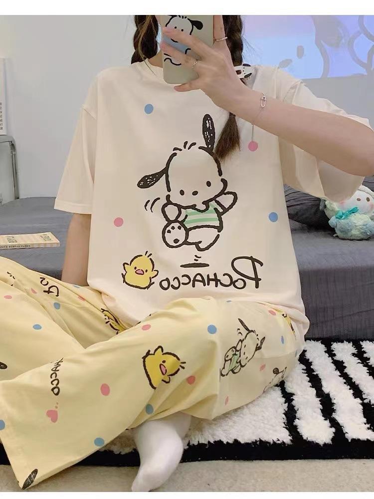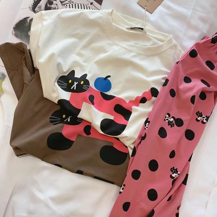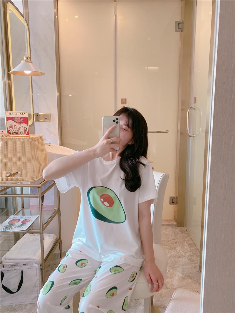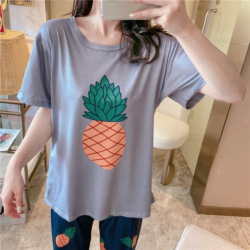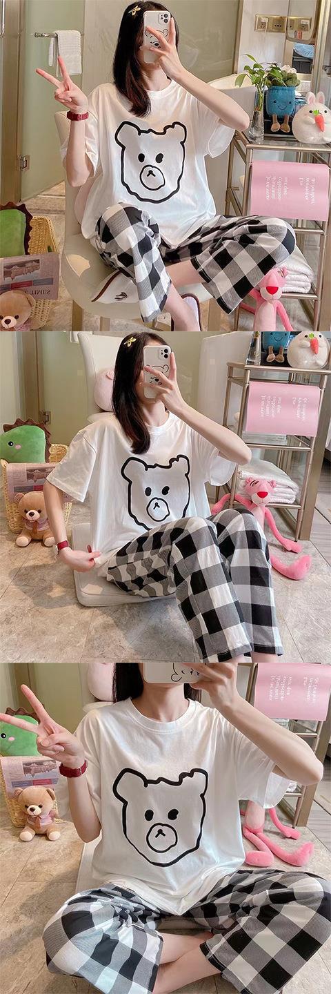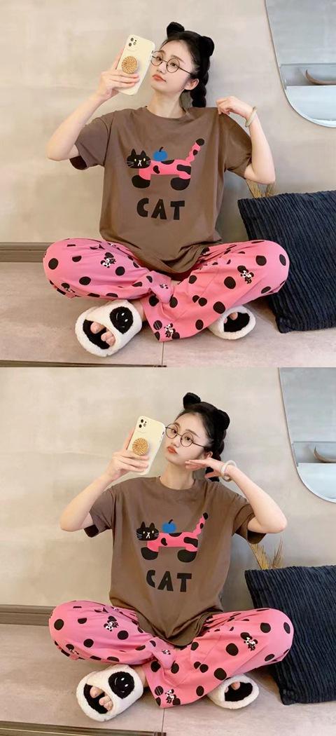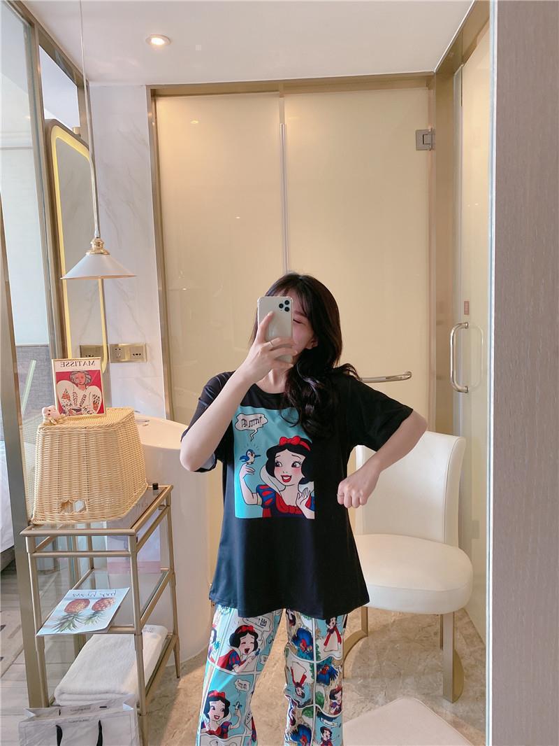 Pijamas 2025 para Mujer Verano Delgados Pantalones de Manga Corta Pintura al Óleo Dibujos Animados Lindo Talla Grande Se Puede Usar Fuera Conjunto de Ropa para el Hogar