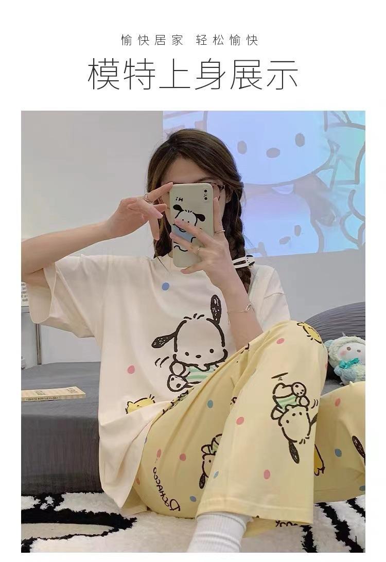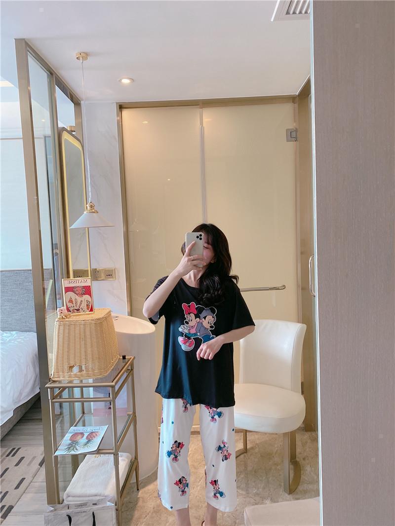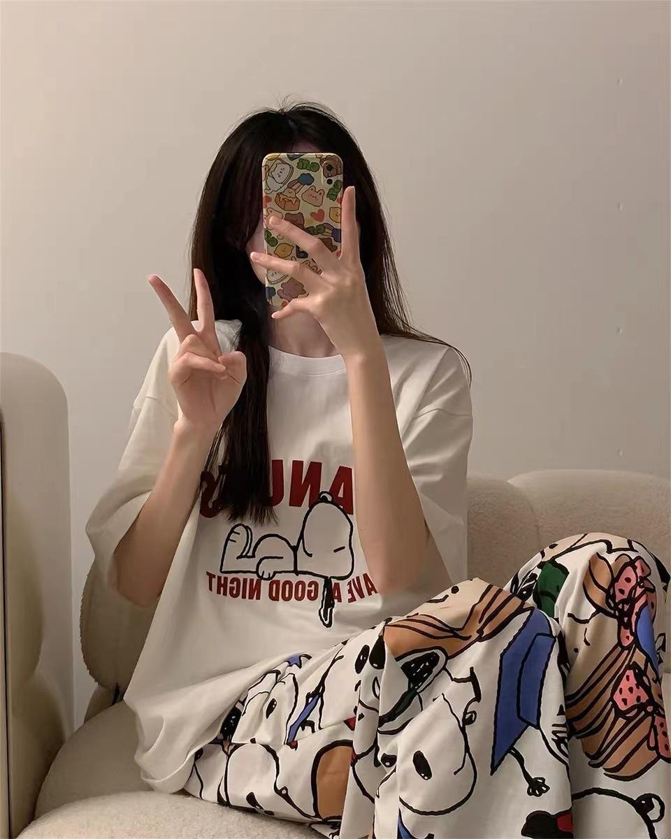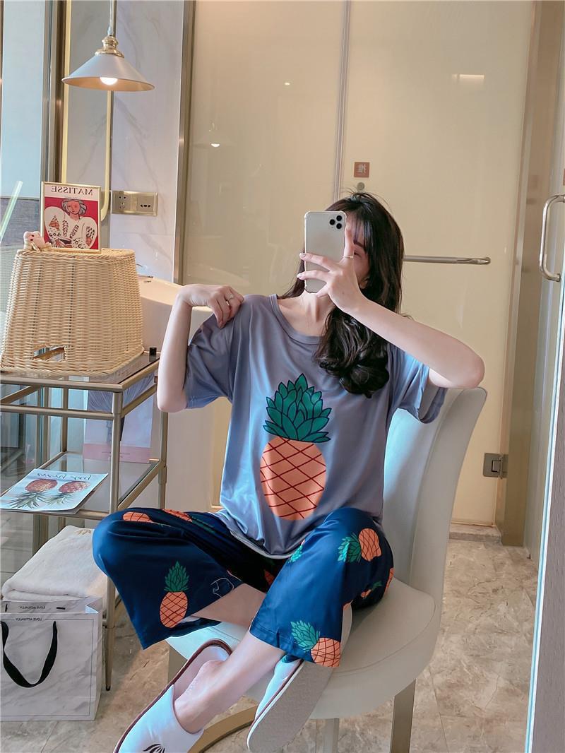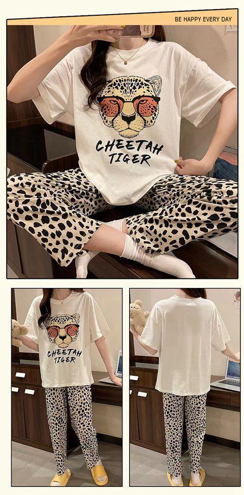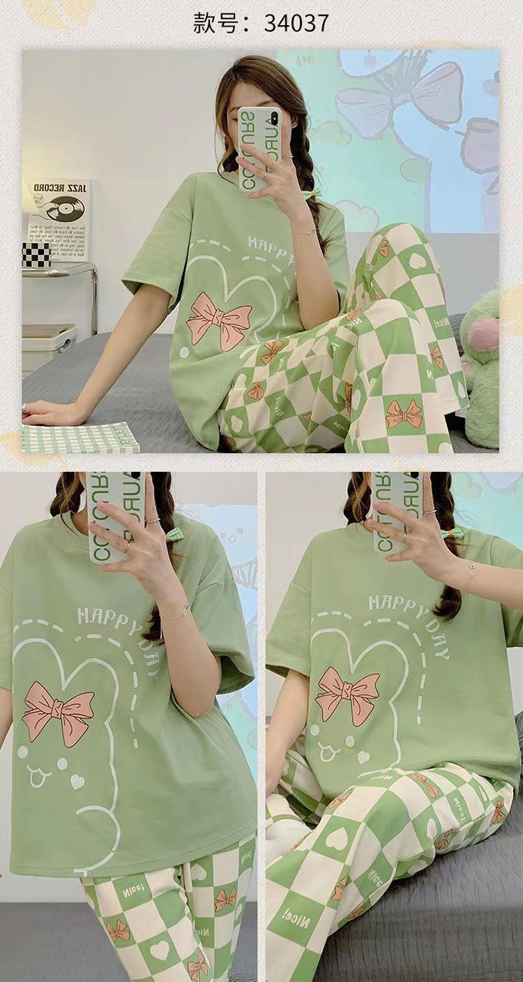 Pijamas 2025 para Mujer Verano Delgados Pantalones de Manga Corta Pintura al Óleo Dibujos Animados Lindo Talla Grande Se Puede Usar Fuera Conjunto de Ropa para el Hogar