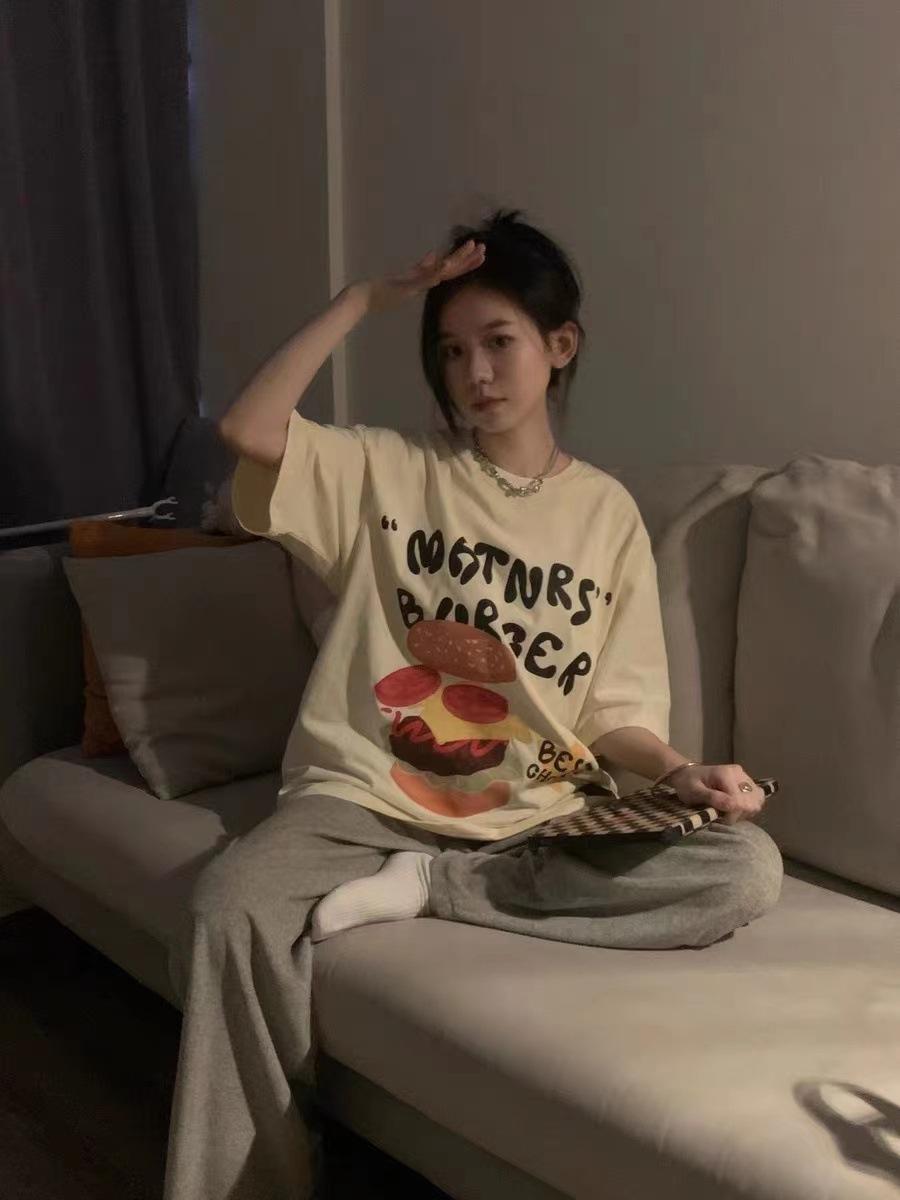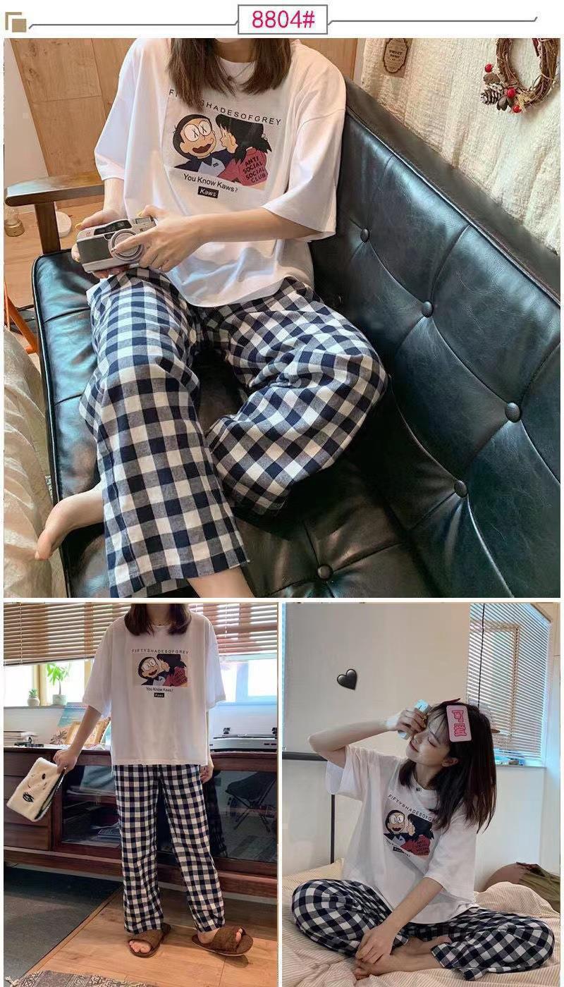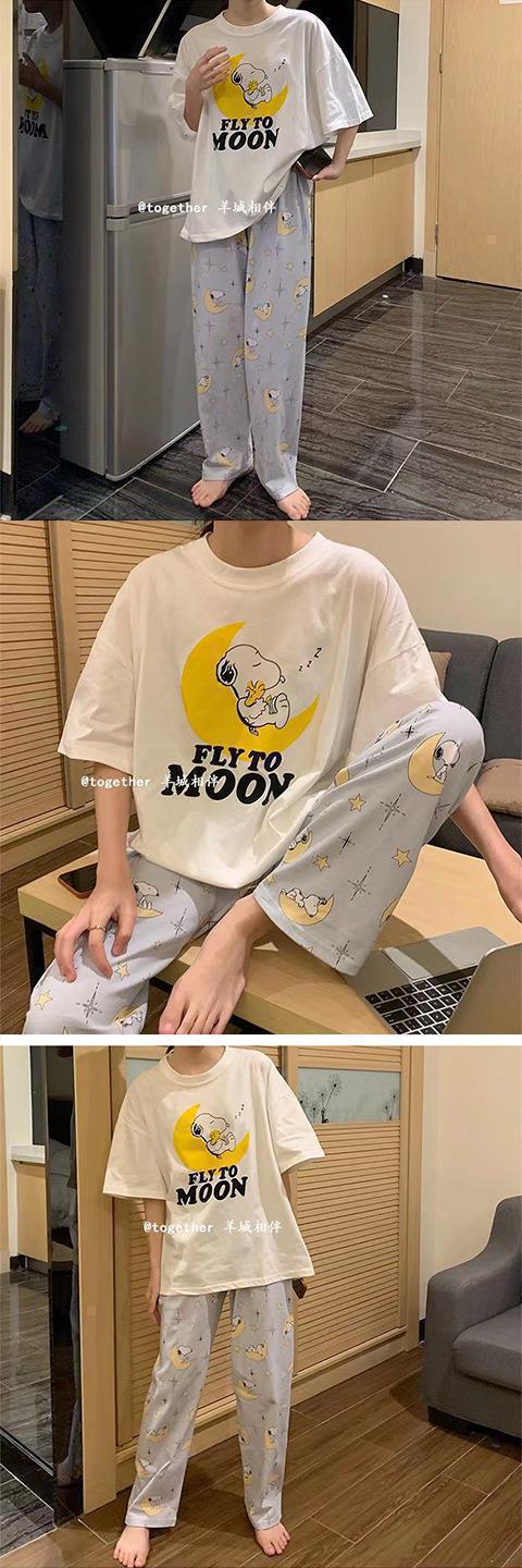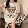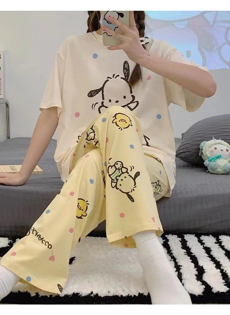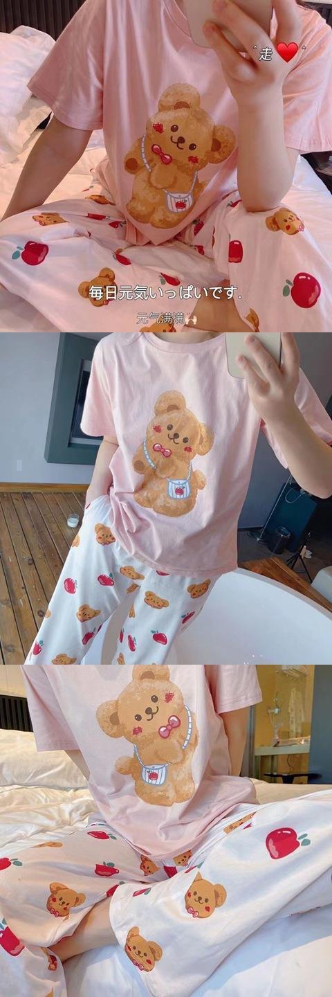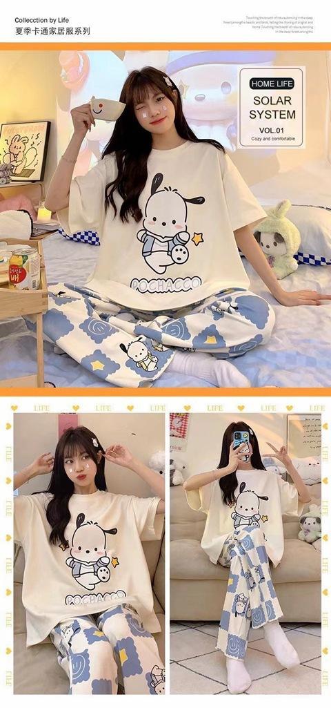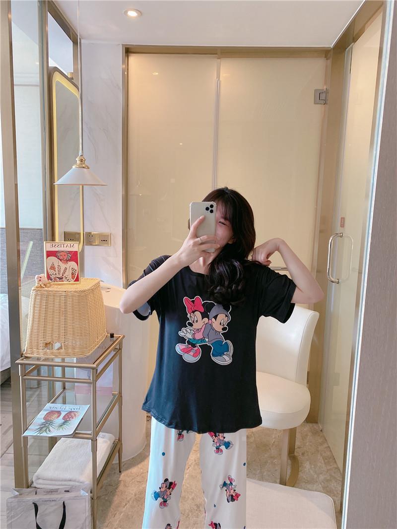 Pijamas 2025 para Mujer Verano Delgados Pantalones de Manga Corta Pintura al Óleo Dibujos Animados Lindo Talla Grande Se Puede Usar Fuera Conjunto de Ropa para el Hogar