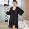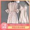 Bata de baño de seda helada de verano para mujer, pijama con tirantes, conjunto de dos piezas, camisón sexy con cinturón de encaje y almohadilla para el pecho, ropa de dormir Pure Desire para el hogar
