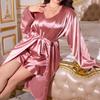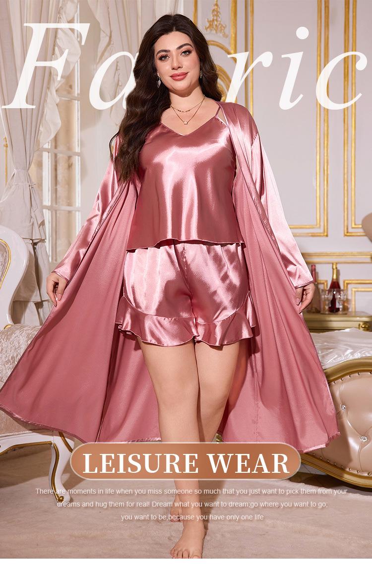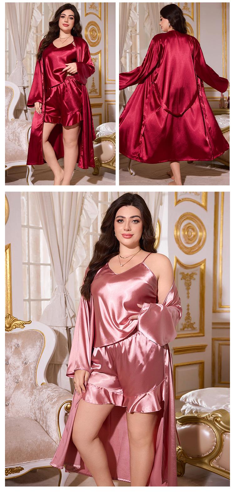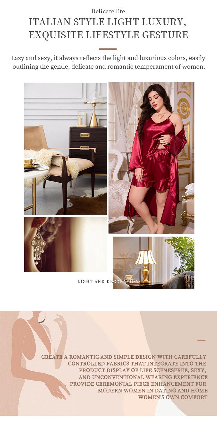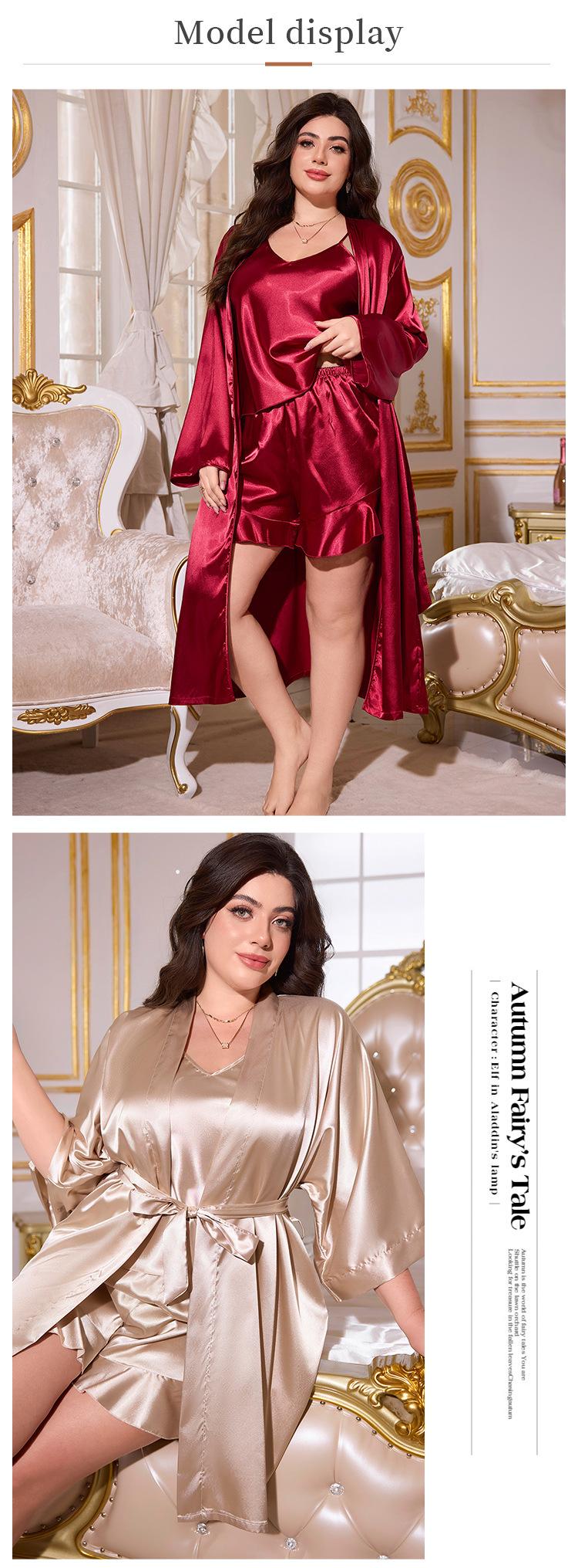 Pijamas de seda de talla grande estilo europeo y americano para mujer, sexys, sueltos, con falda, para primavera y verano, ropa informal para el hogar, pijamas