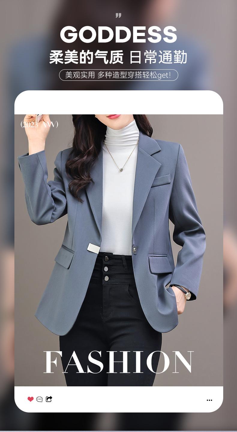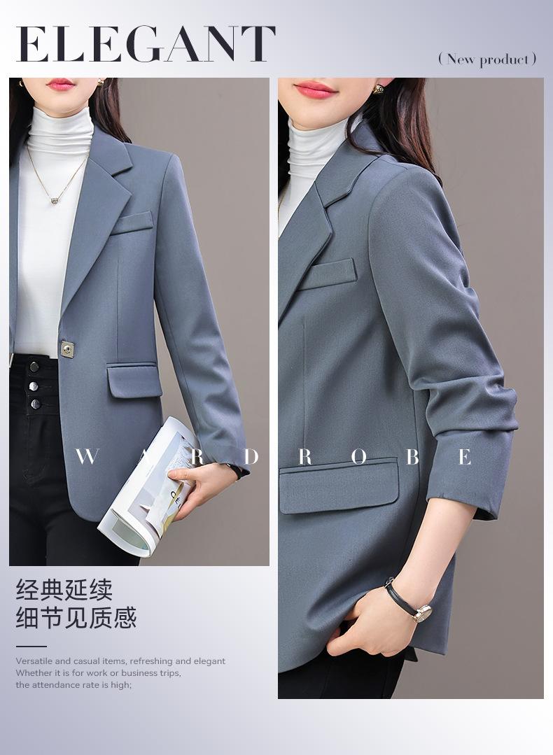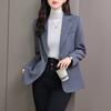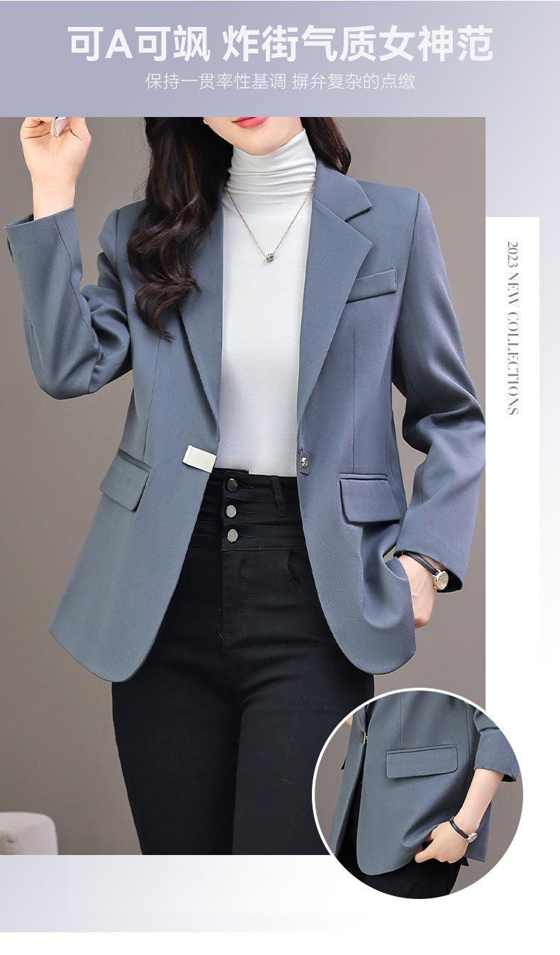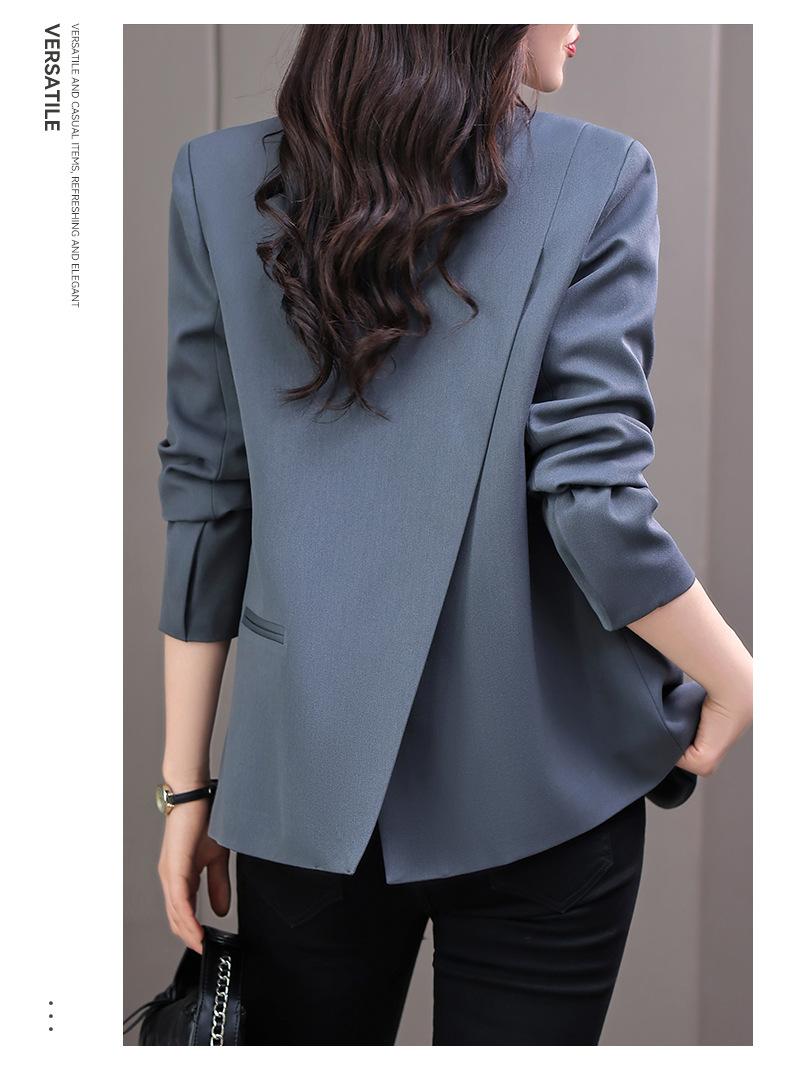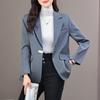 Otoño e invierno 2023 nueva chaqueta de cuello de traje pequeño simple profesional gris para mujer, moda casual de viajero, temperamento de moda