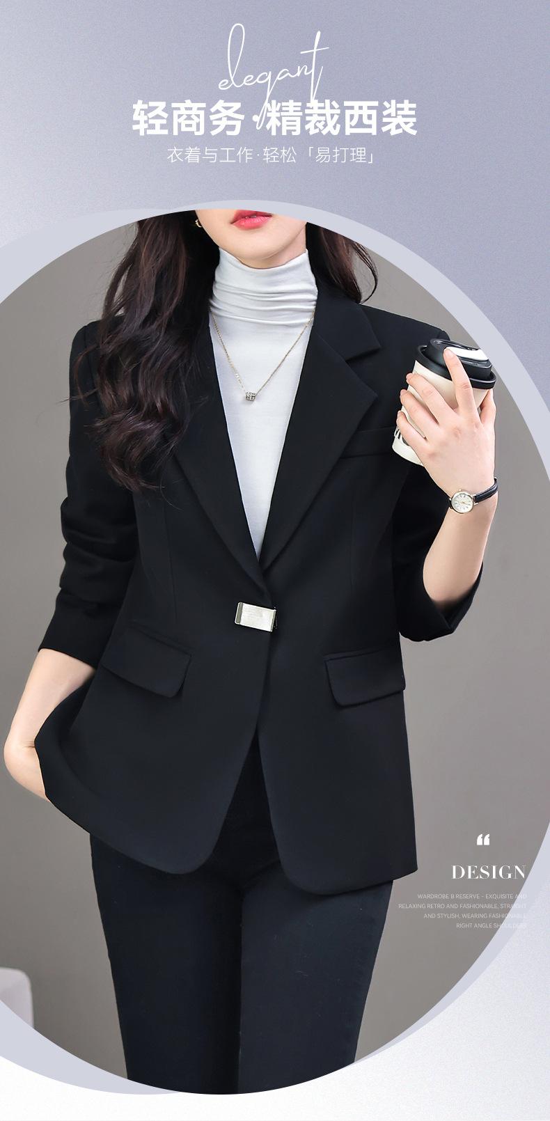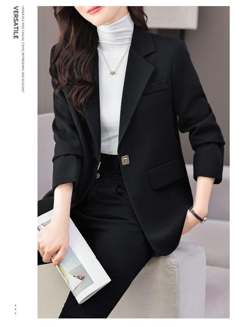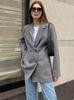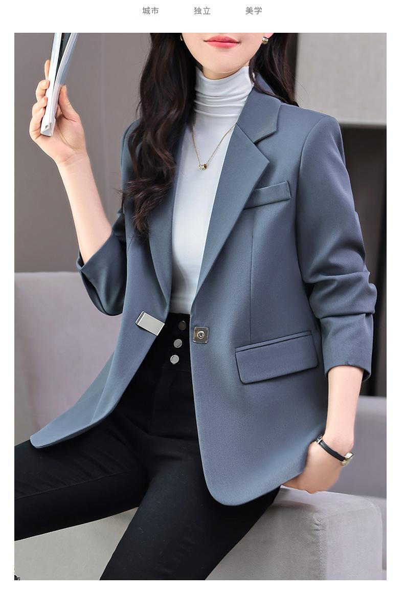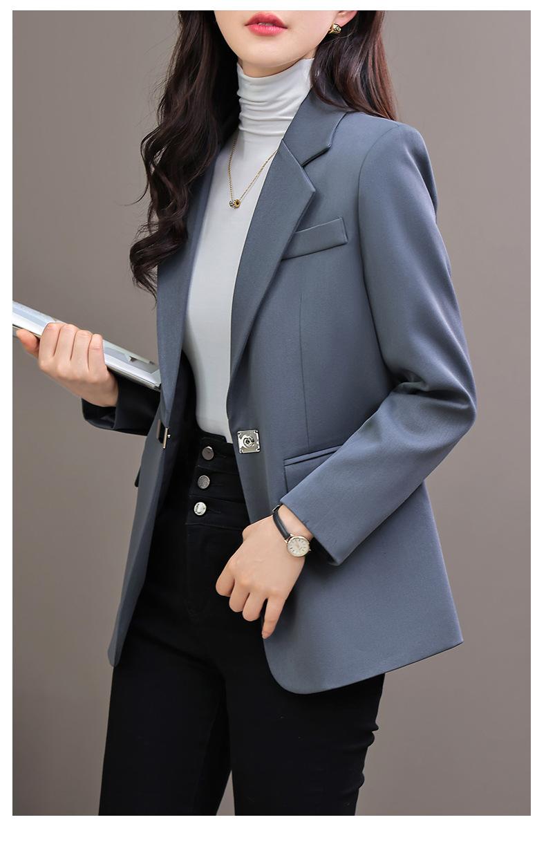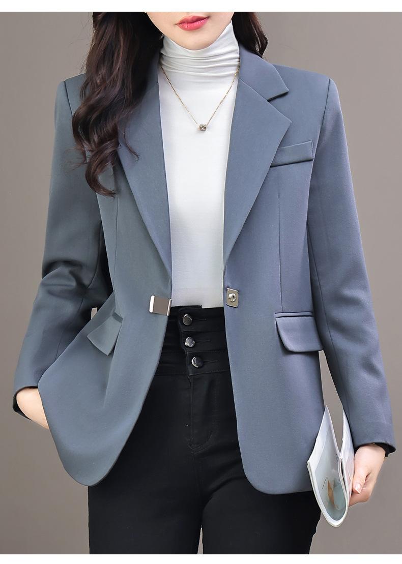 Otoño e invierno 2023 nueva chaqueta de cuello de traje pequeño simple profesional gris para mujer, moda casual de viajero, temperamento de moda
