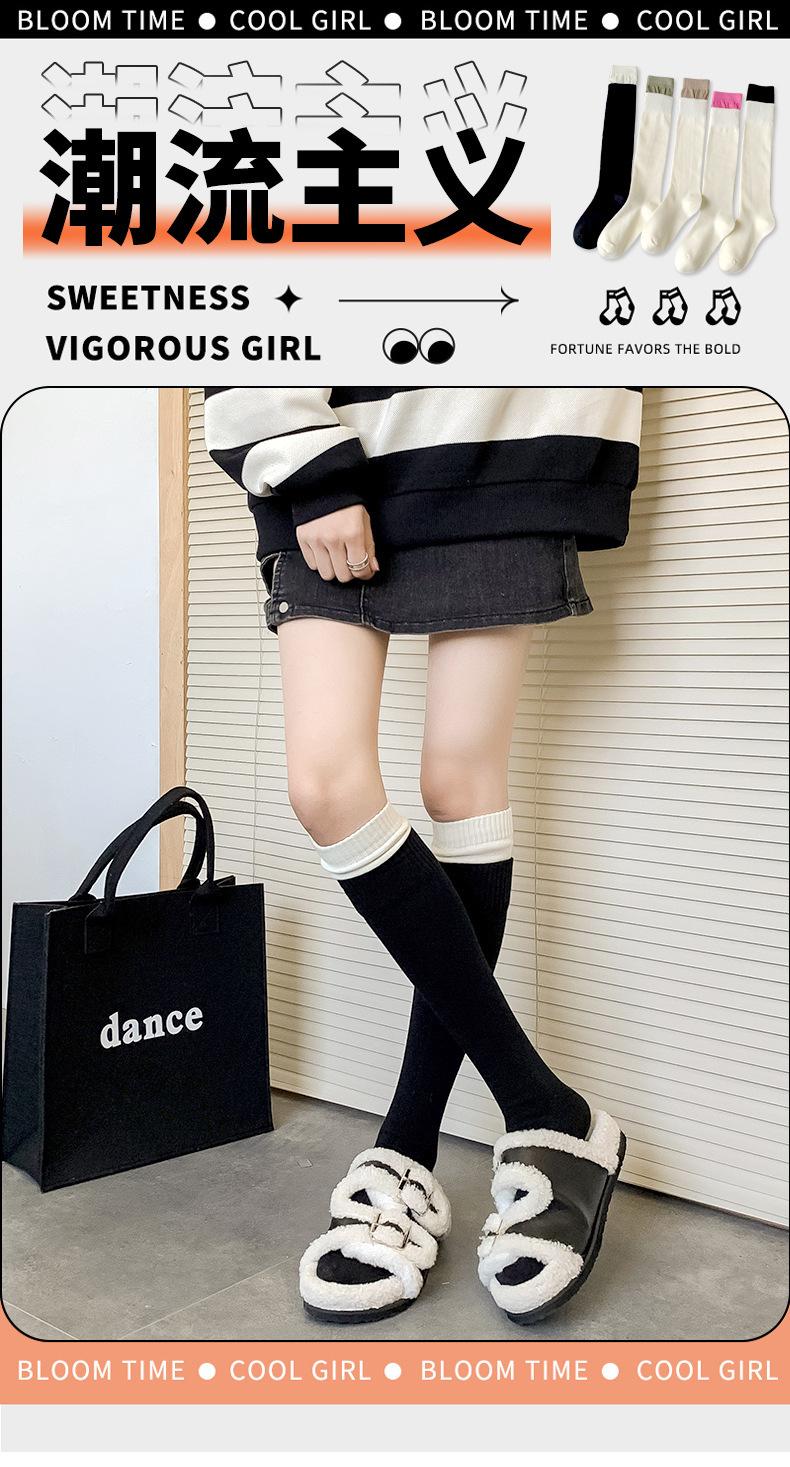 Calcetines de becerro de punto calcetines de otoño e invierno mujeres medias a juego de color negro calcetines hasta la rodilla jk medias calcetines de felpa al por mayor