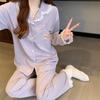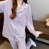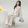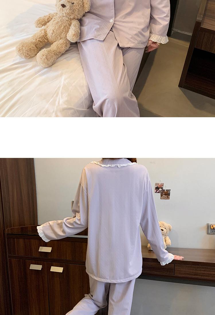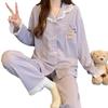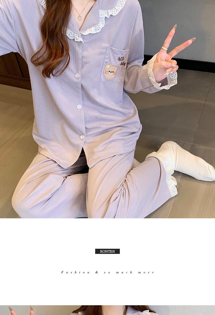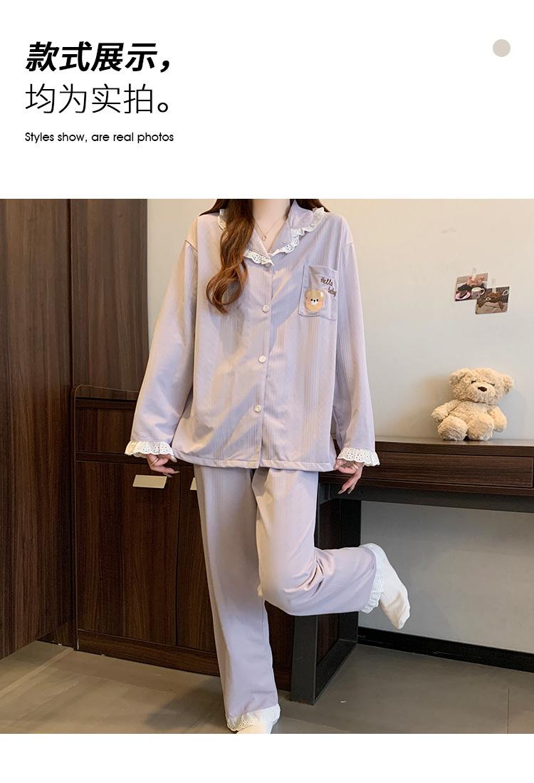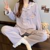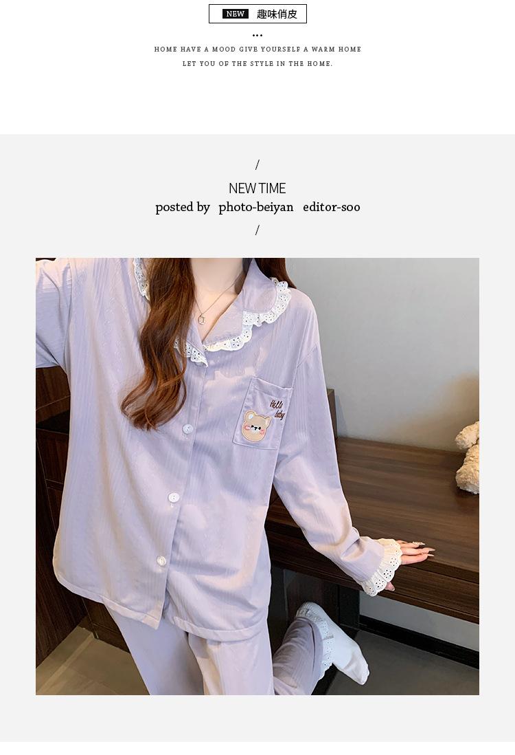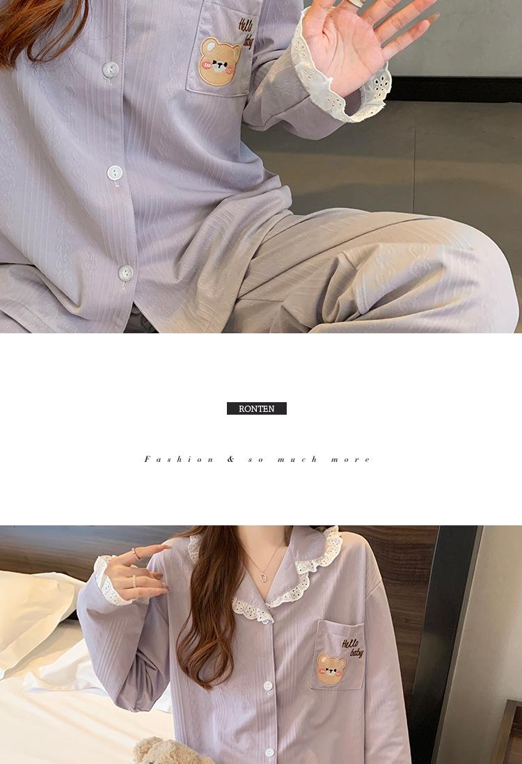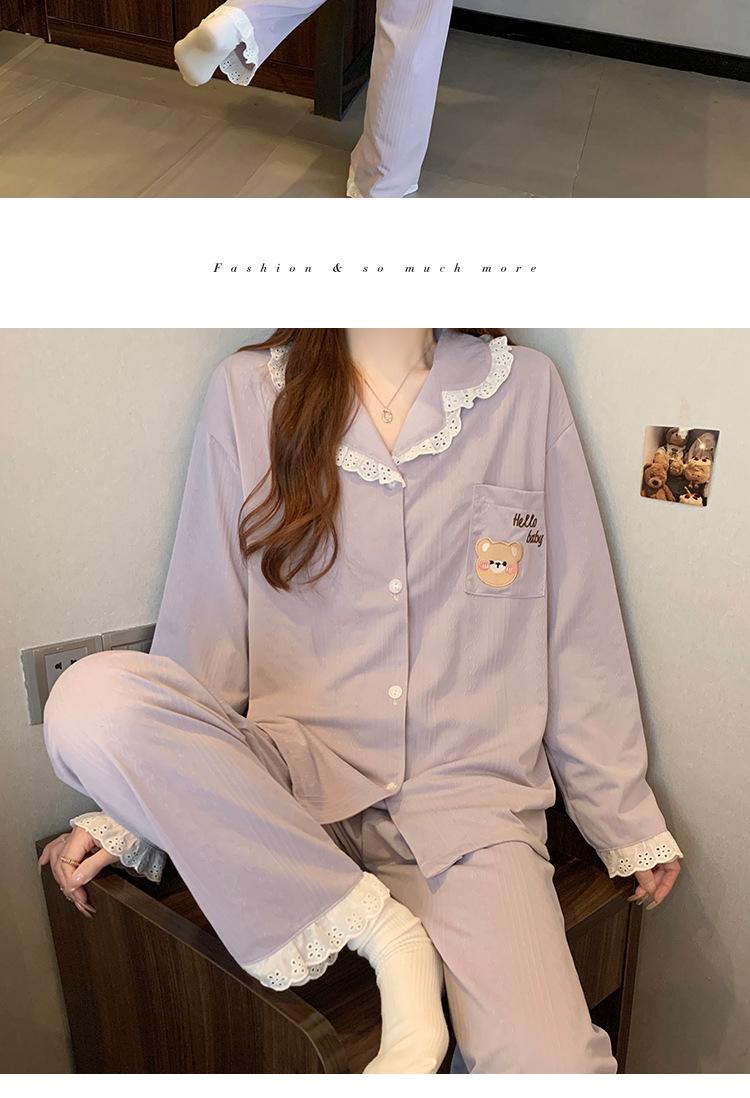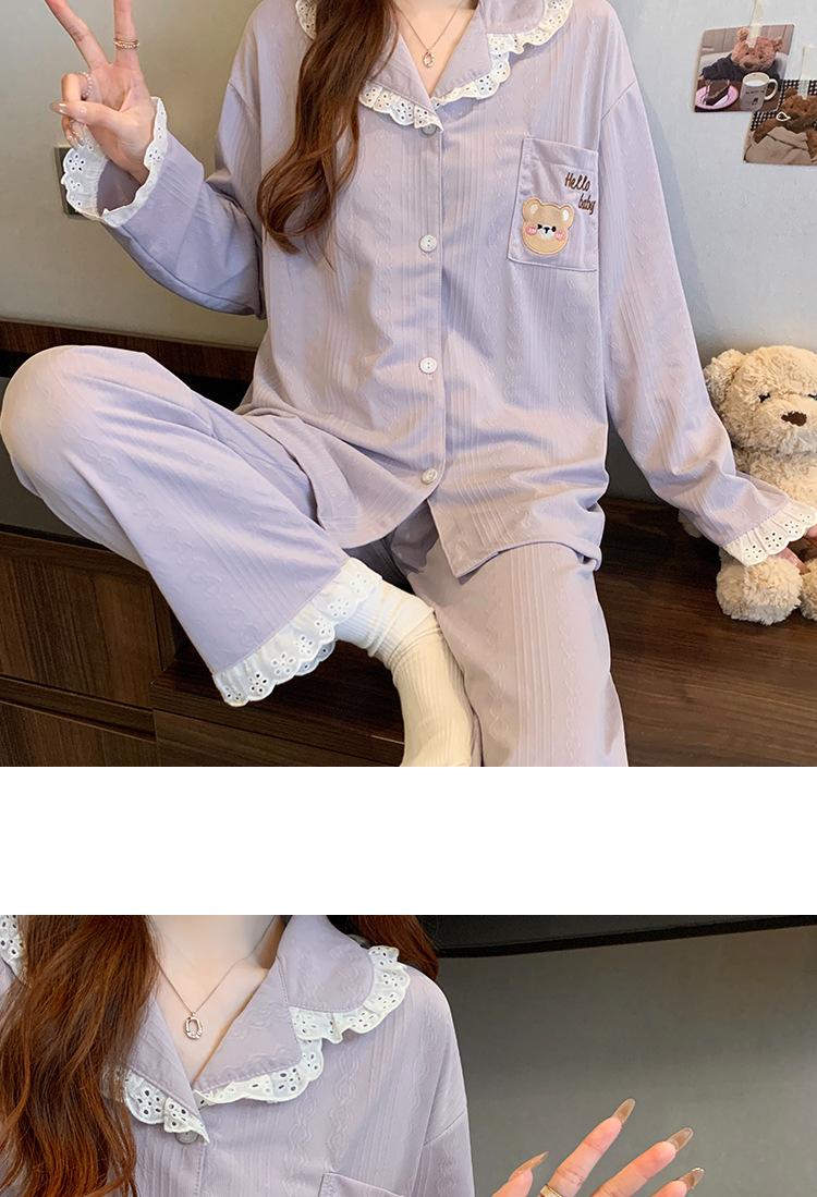 Pijama de Encaje Dulce de Manga Larga para Mujer Primavera Algodón Imitación Manga Larga Oso Carmen Oso Jacquard Holgado Ropa para el Hogar Traje Venta al por Mayor