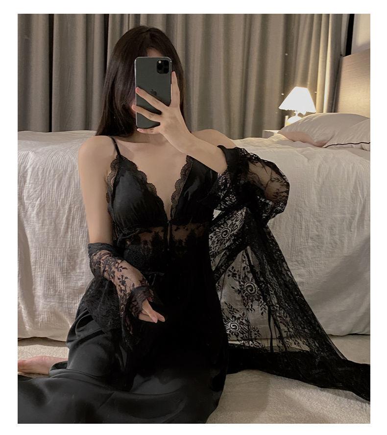 Pijama sexy de verano para mujer Pure Desire 2025, nuevo estilo, camisón de encaje con tirantes, camisón de seda fina con almohadilla para el pecho, primavera