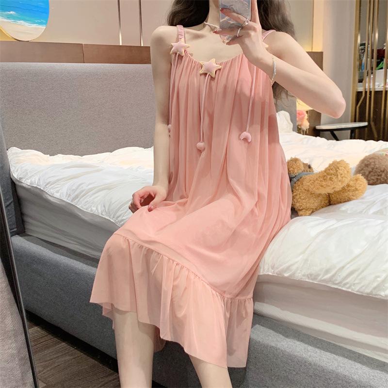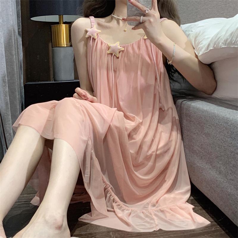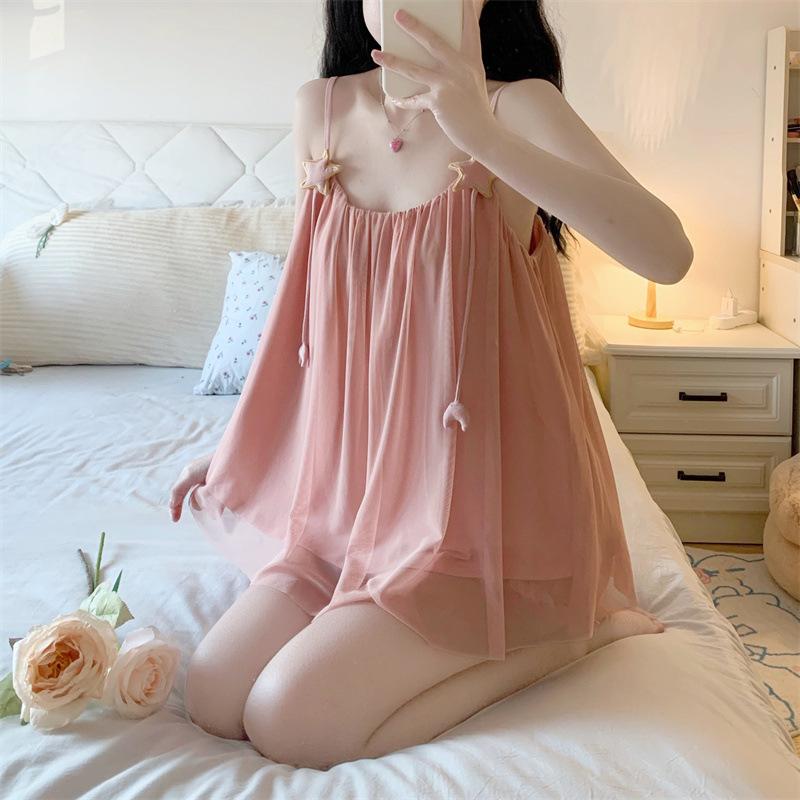 Camisón de malla con tirantes para niña, camisón de verano pequeño para mujer, nuevo, dulce princesa Pure Desire, camisón con tirantes, traje de casa