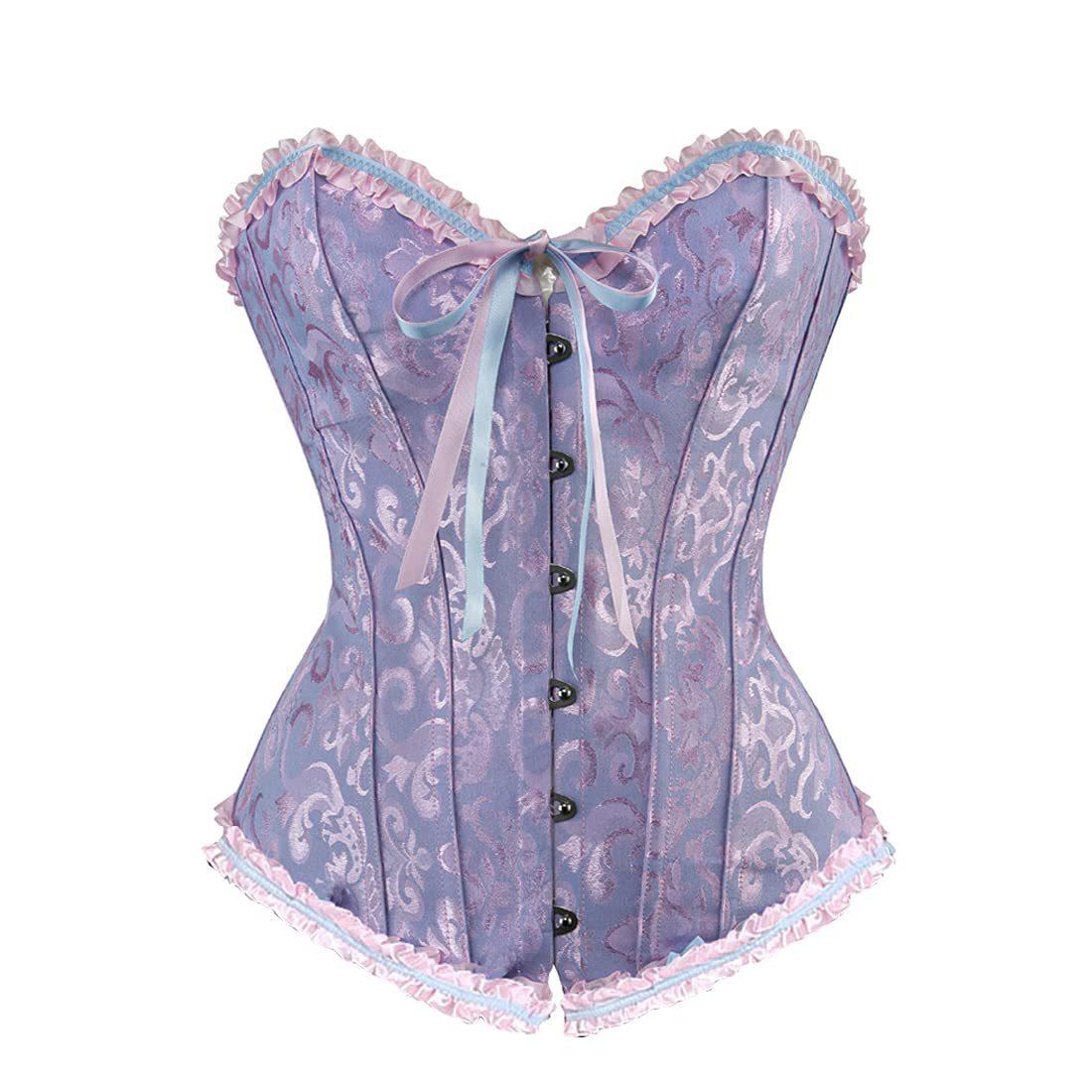 Encaje Estampado Multicolor Sexy Corsé Victoriano Retro de Corte Real que Realza el Busto con Varillas en un Estilo de Corte Vintage