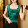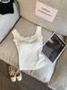 Camisola de cuello cuadrado con encaje y lazo dulce para mujer, nueva prenda exterior blanca de belleza pura, sin mangas