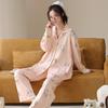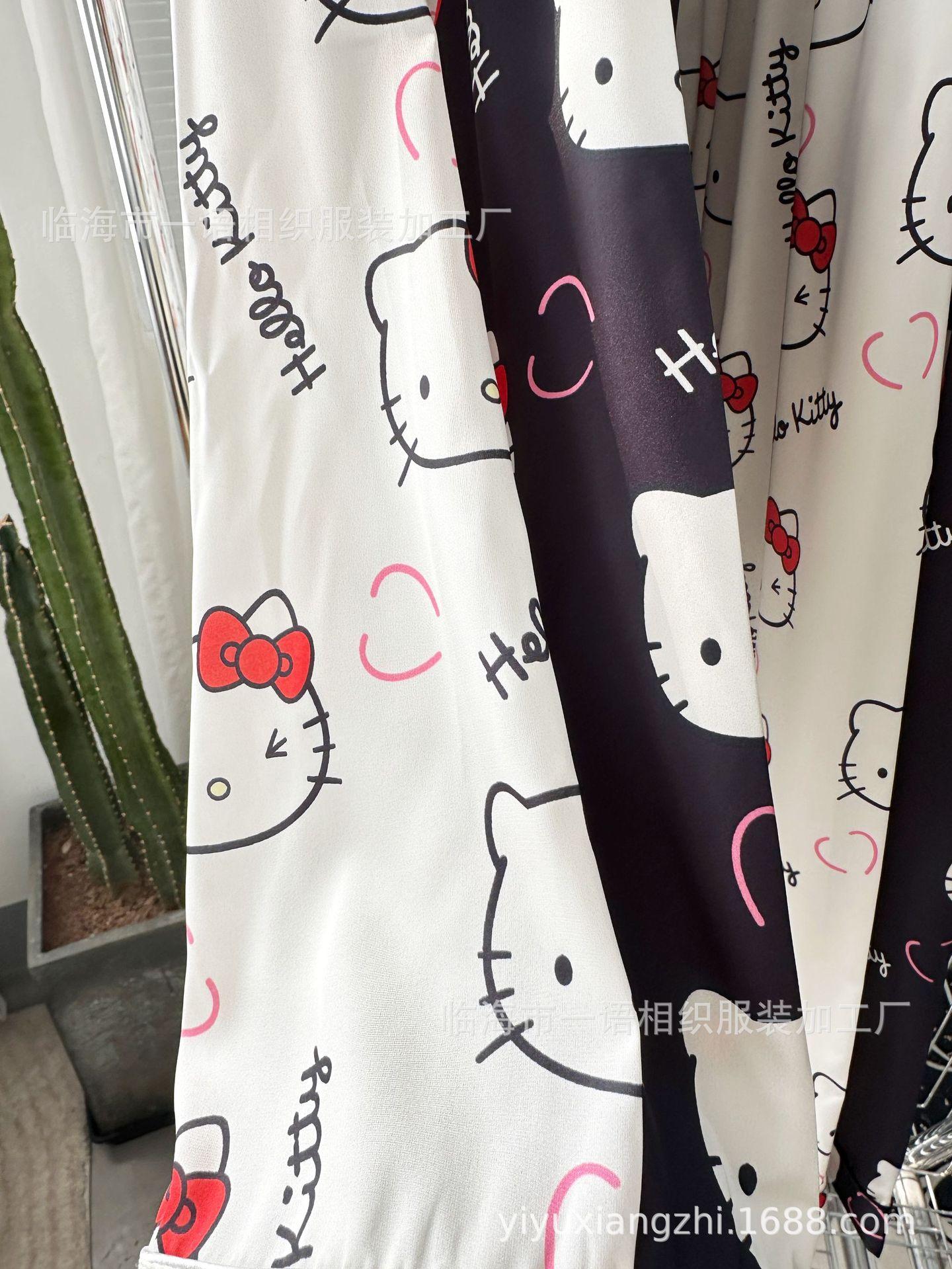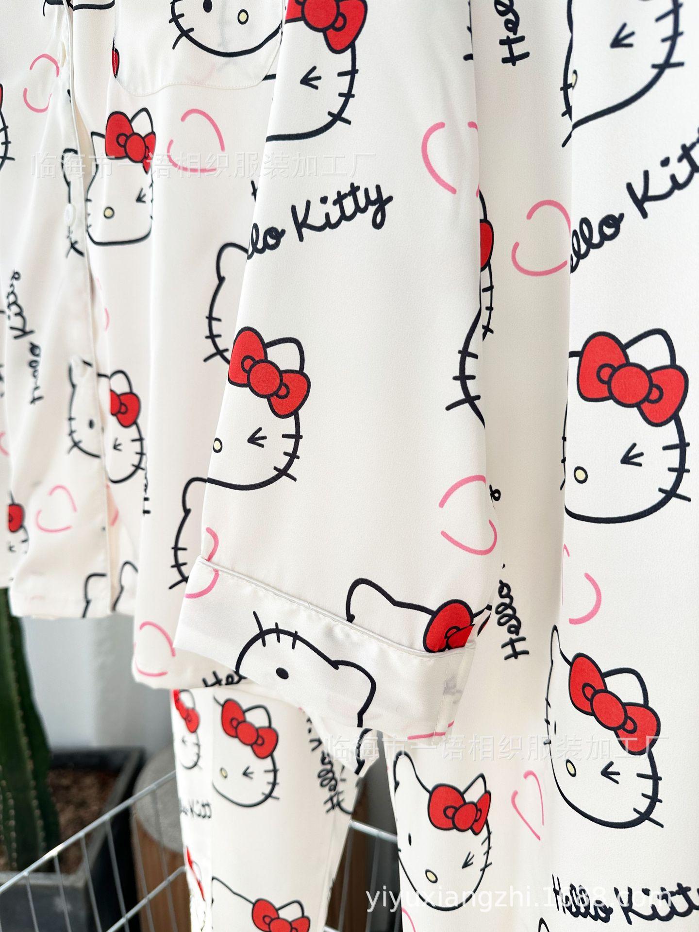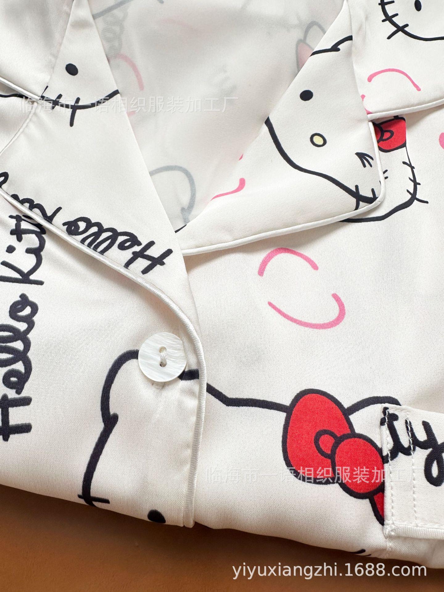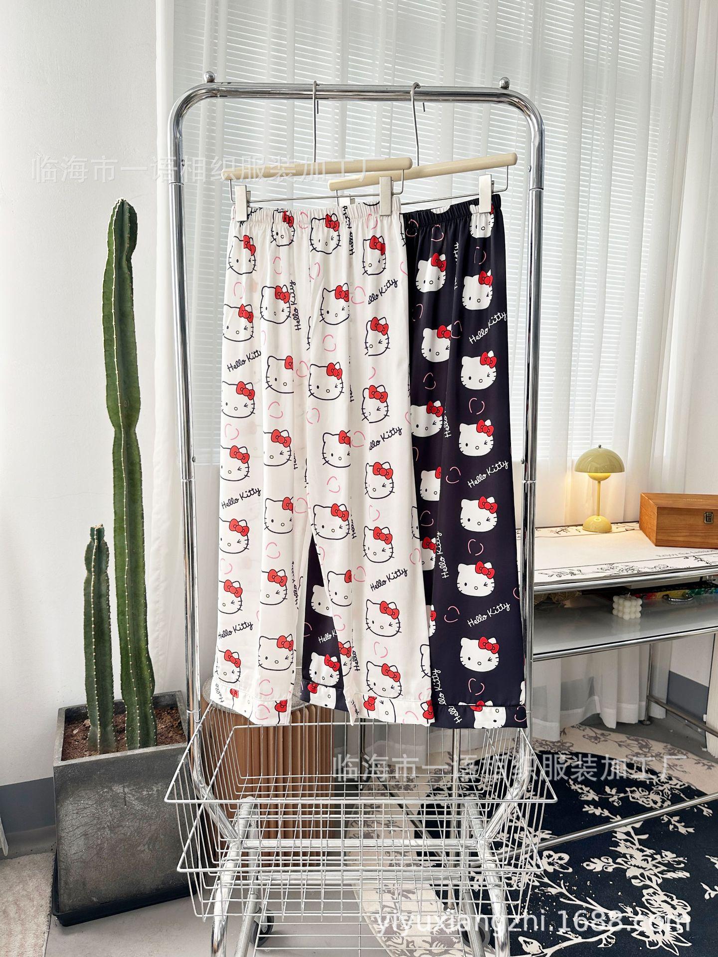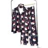 Primavera Nuevo Pijama Negro de Dibujos Animados de Seda de Hielo para Mujer Estilo Francés Casual y Cómodo Conjunto de Ropa para Casa de Niñas con Lazo para el Cabello