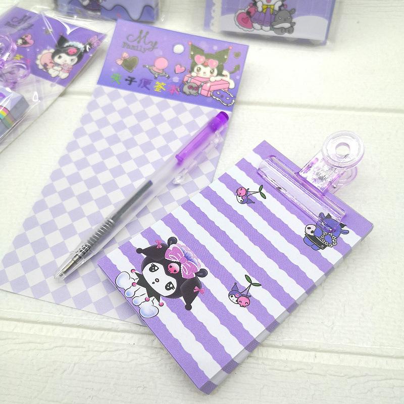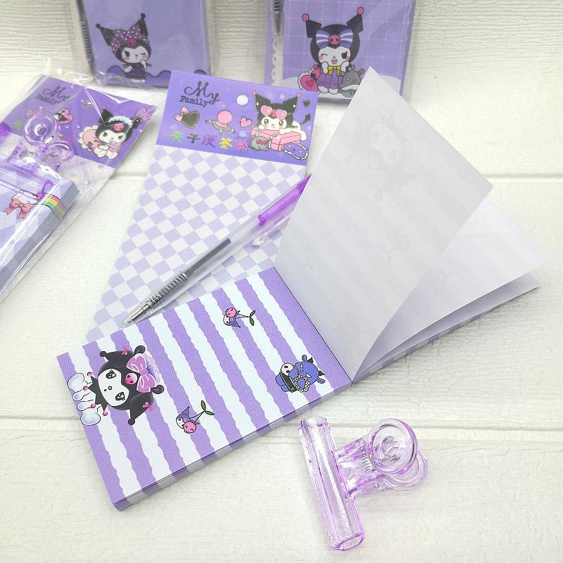 Nuevo Bloc de notas con clip de cuenta de dibujos animados de Sanrio con bolígrafo, bloc de notas aleatorio, regalo para niños