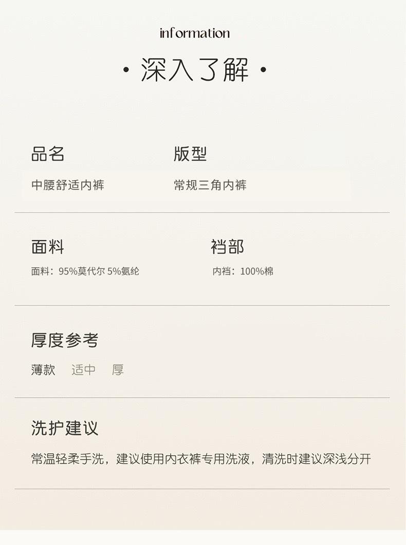 Ropa interior modal de entrepierna larga 7A para mujer, Pure Desire, hueca, elástica, cómoda, de cintura media y cadera.