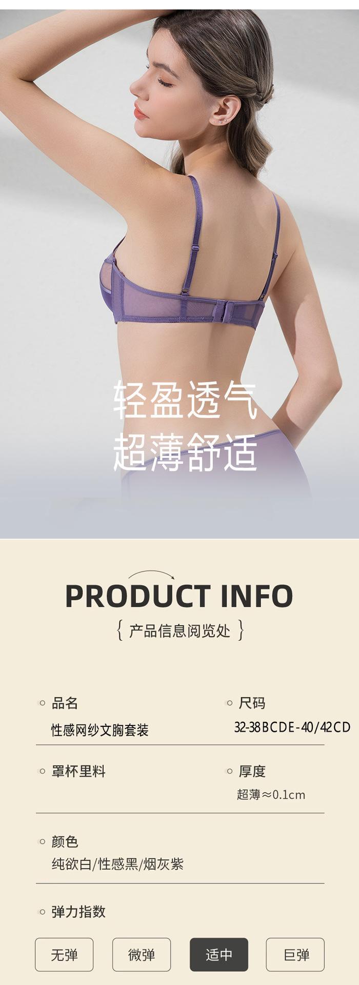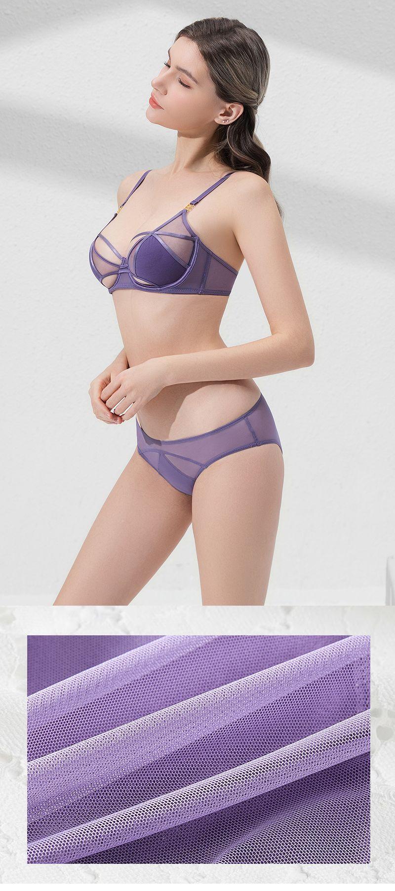 Conjunto de ropa interior de encaje sexy, ropa interior fina de pecho grande y pequeña para mujer, sujetador transpirable Pure Desire, conjunto de sujetador ultrafino |