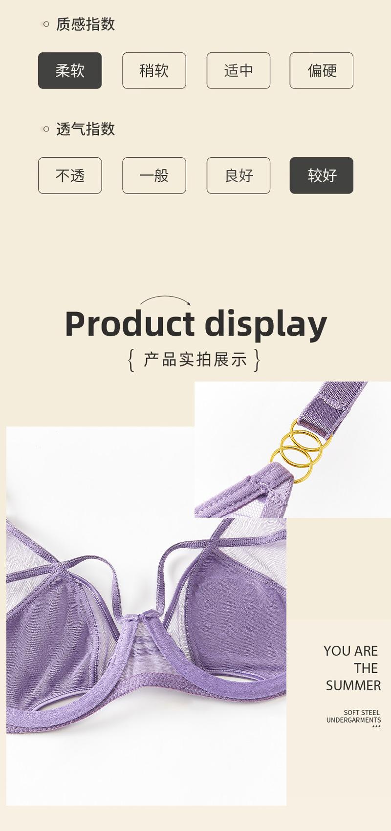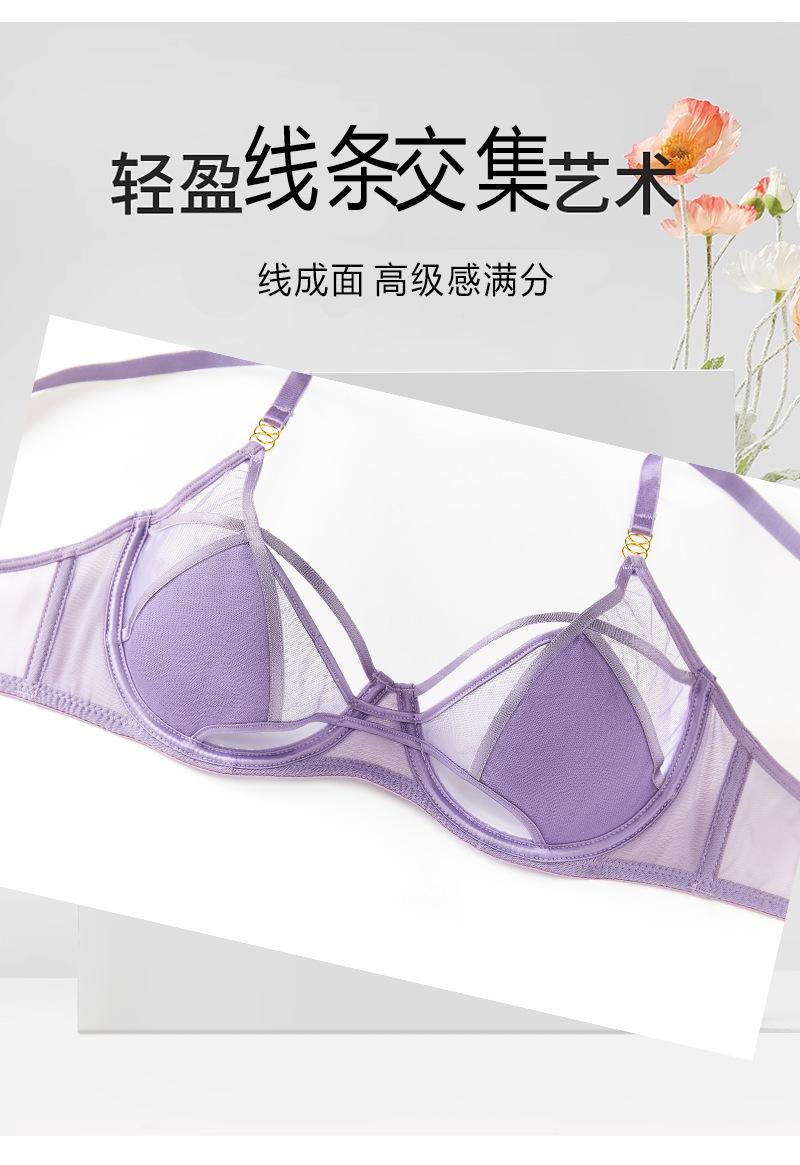 Conjunto de ropa interior ultrafina de verano con sujetador de encaje bordado sexy, deseo puro, pechos grandes que muestran un pequeño sujetador antiflacidez |