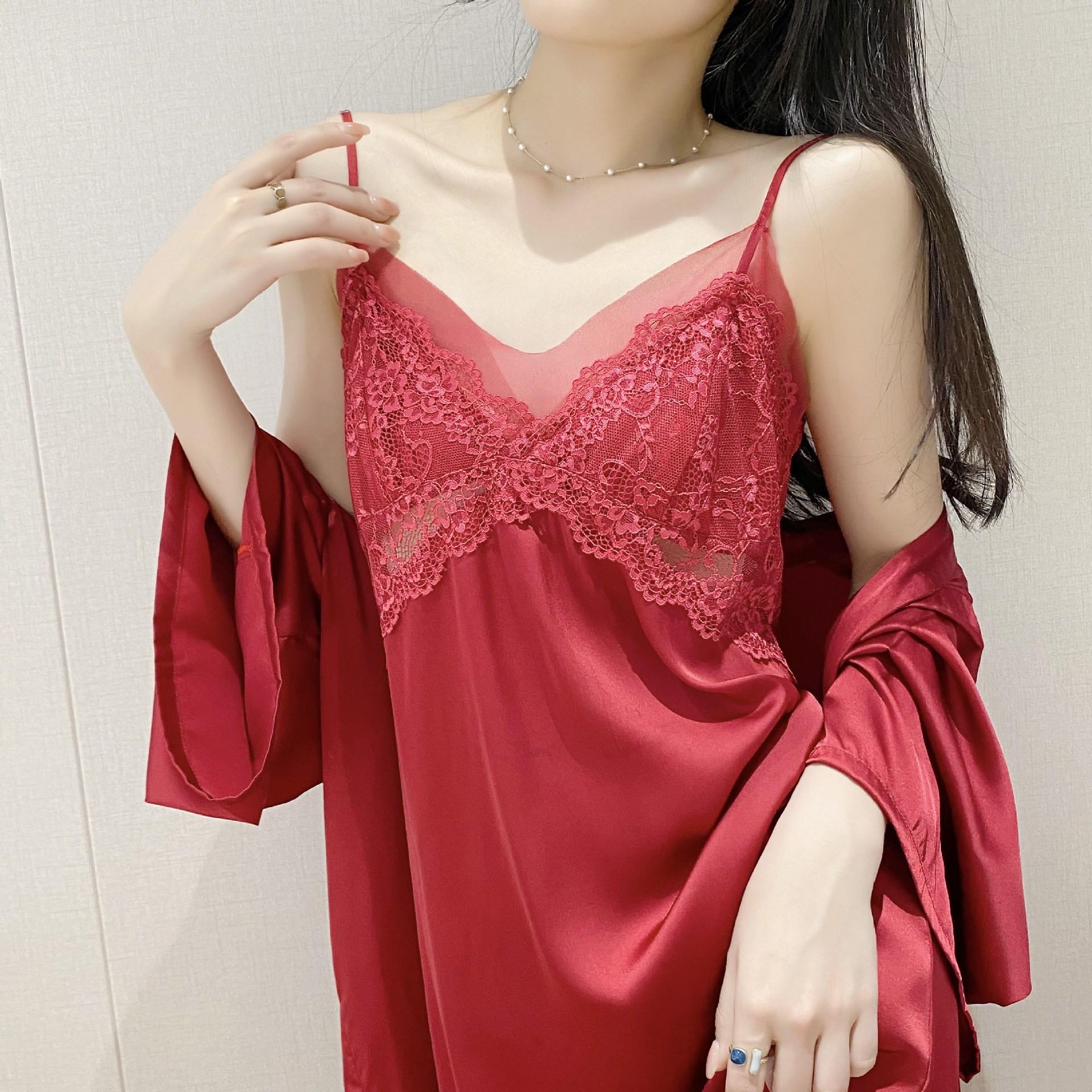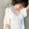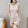 [Con Almohadilla en el Pecho] Camisón de Encaje con Tirantes 2023 Primavera y Otoño para Mujer Sexy Verano para Estar en Casa Malla para Usar Encima
