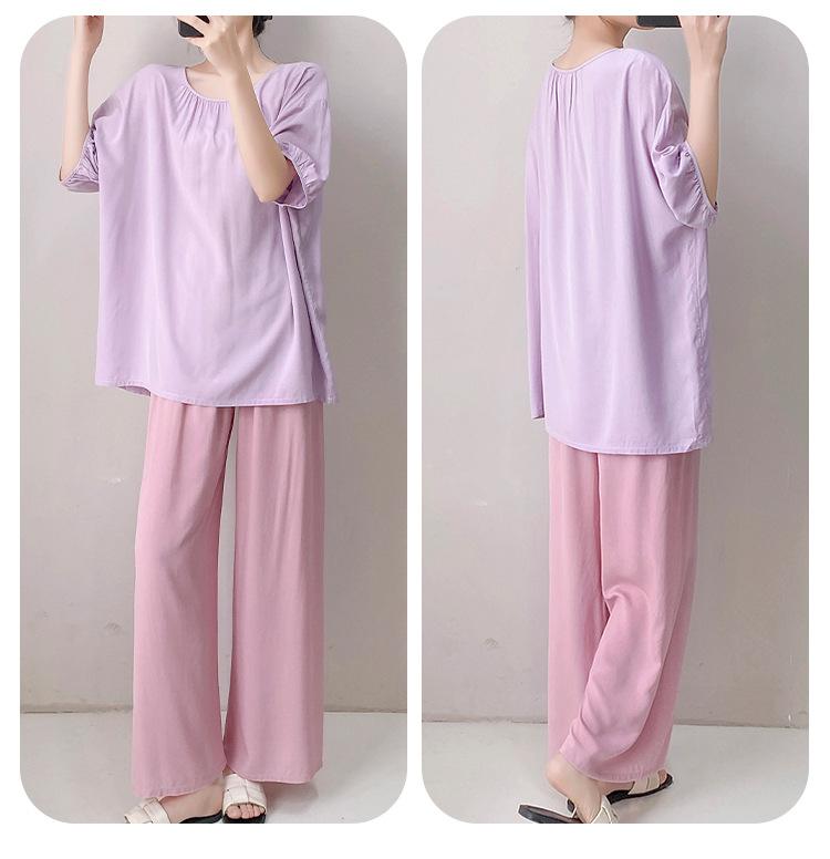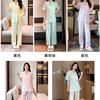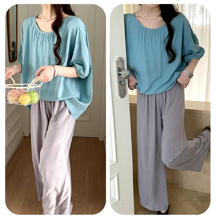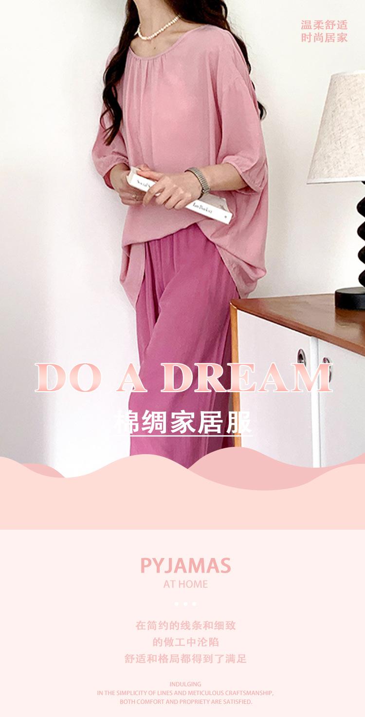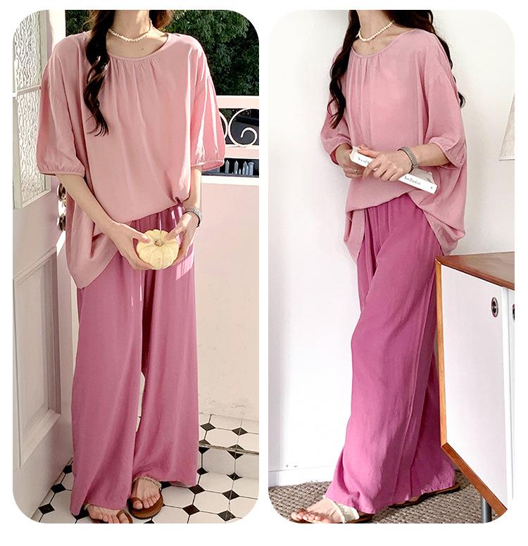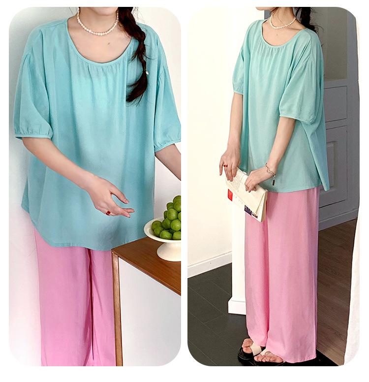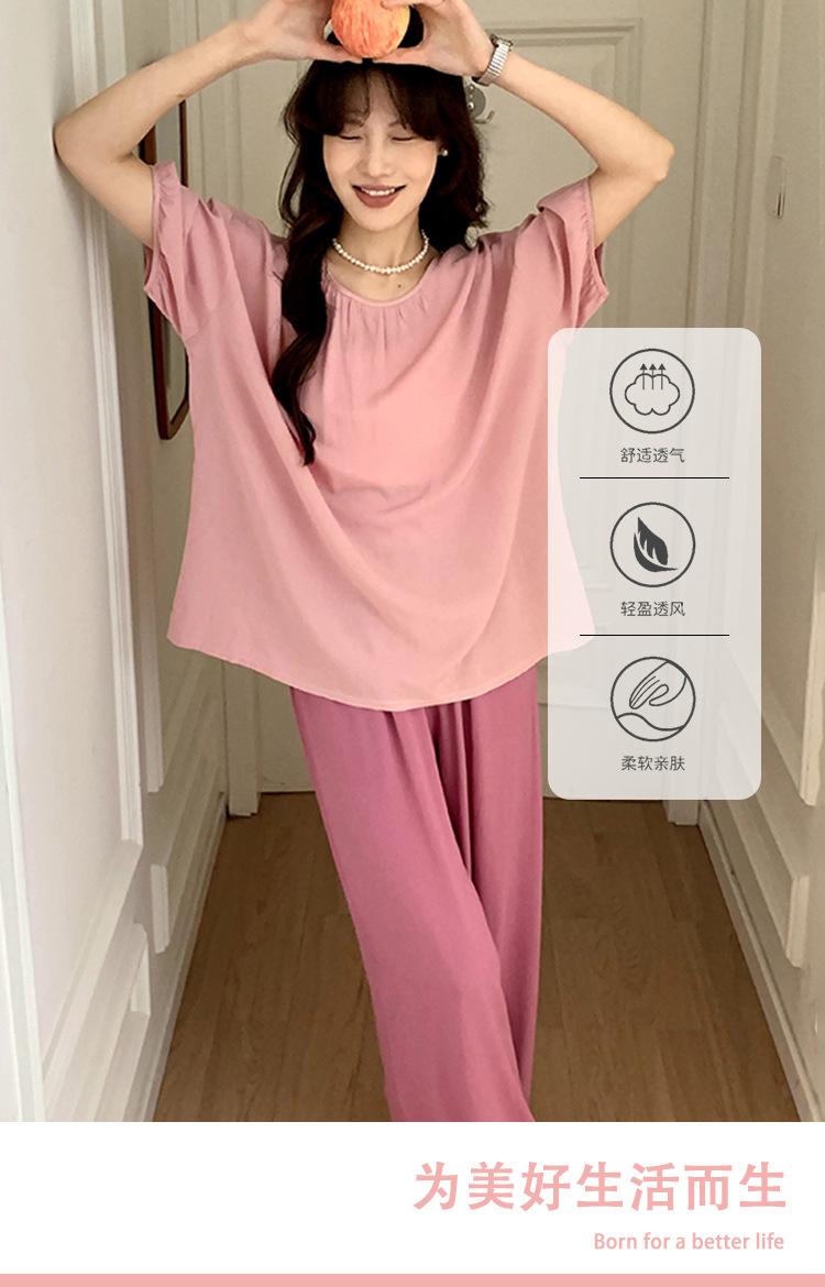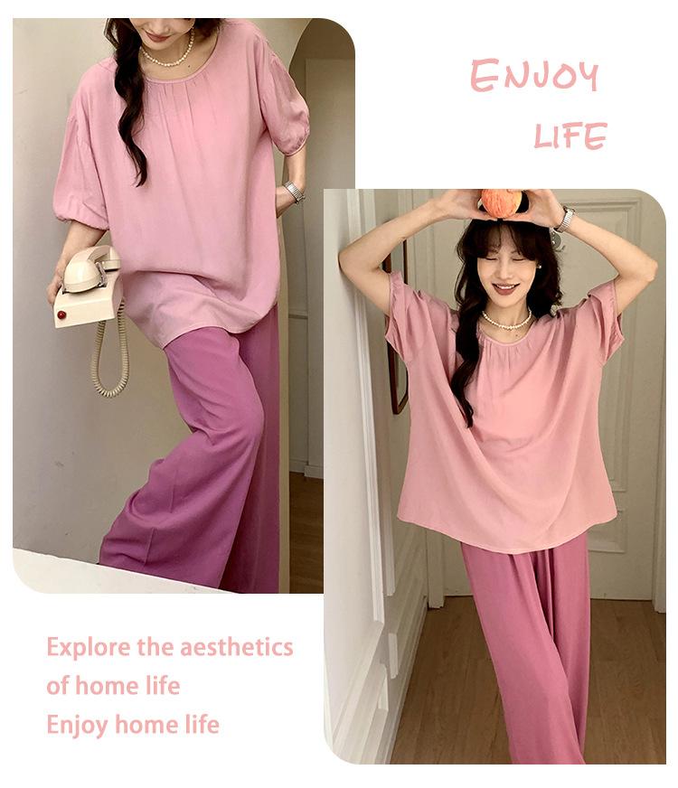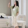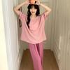 Pijamas de mujer de primavera y verano finos, dulces, frescos, de algodón artificial, de manga corta, pantalones, ropa sencilla y cómoda para el hogar, traje de seda de algodón.