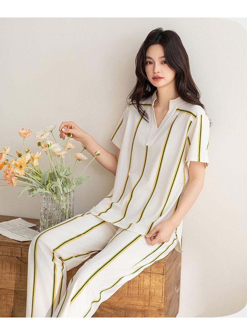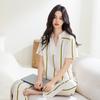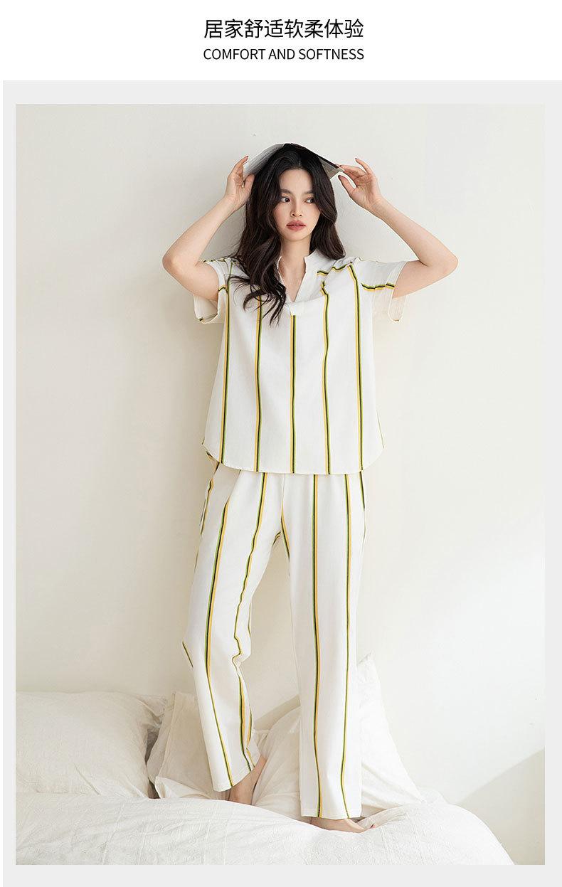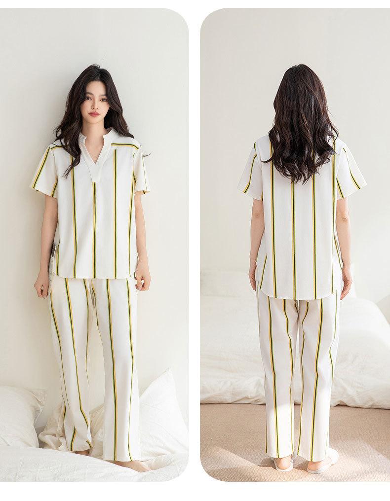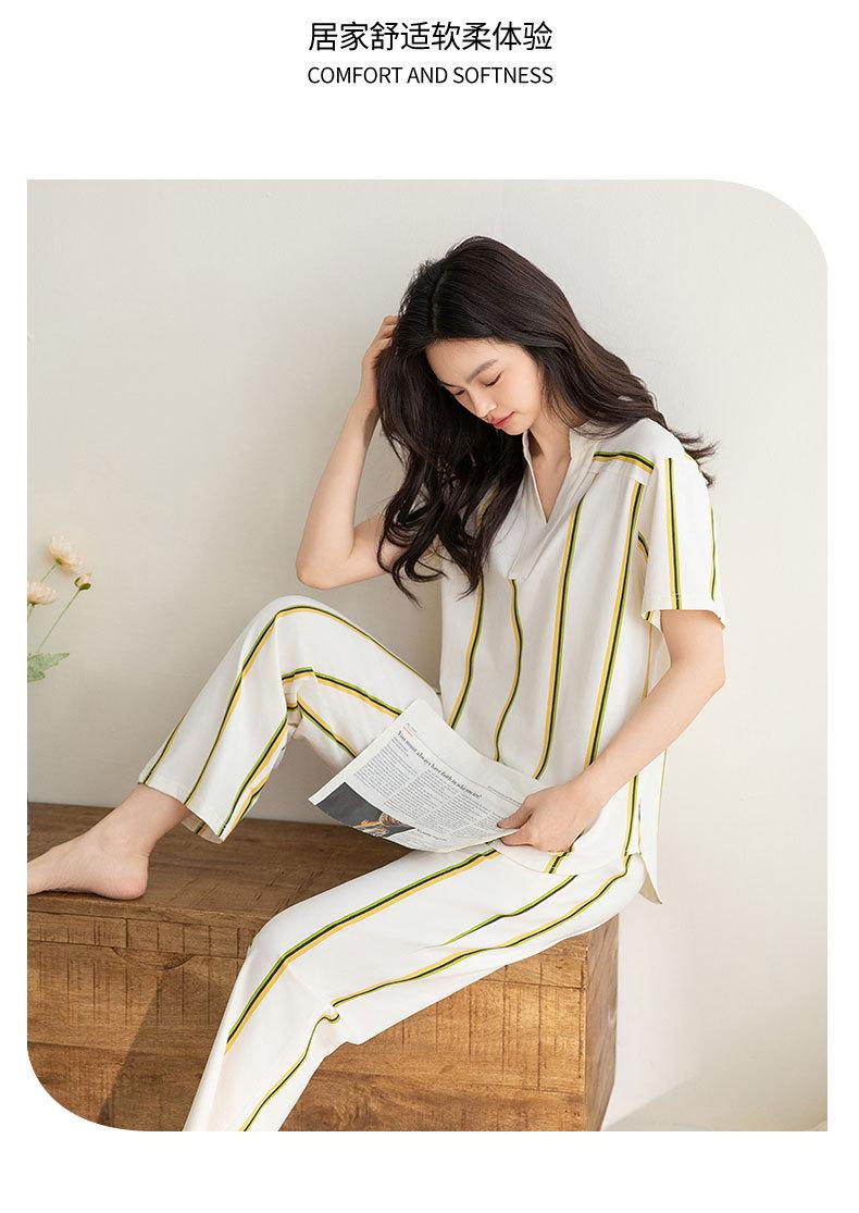 Pijamas de verano para mujer, pantalones de manga corta de algodón puro, ropa de casa de rayas finas, ropa exterior de algodón fresco, traje de nuevo estilo