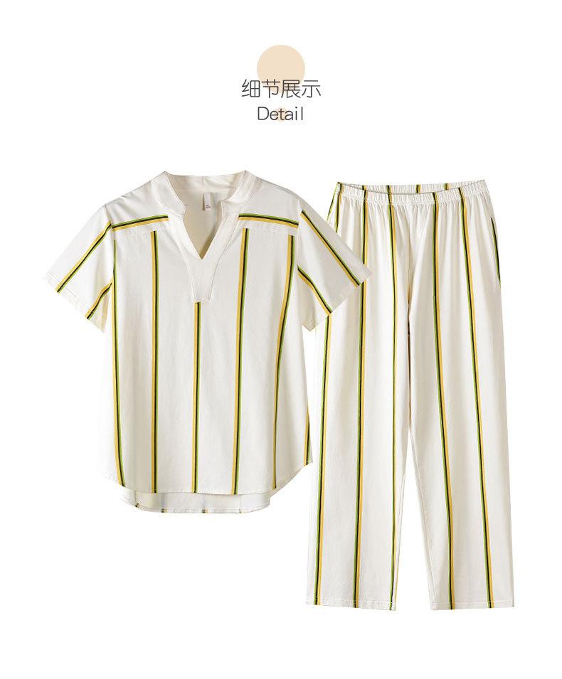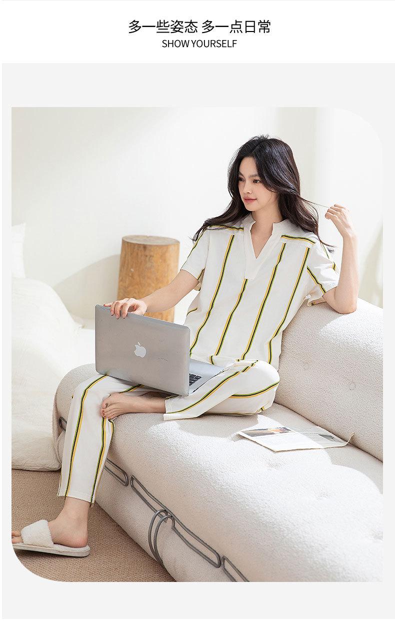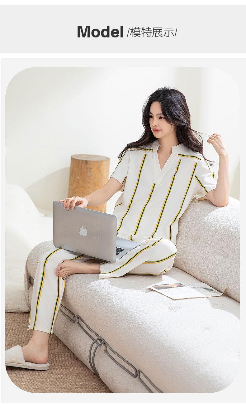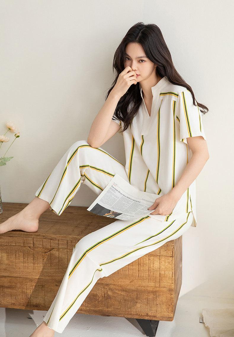 Pijamas de verano para mujer, pantalones de manga corta de algodón puro, ropa de casa de rayas finas, ropa exterior de algodón fresco, traje de nuevo estilo
