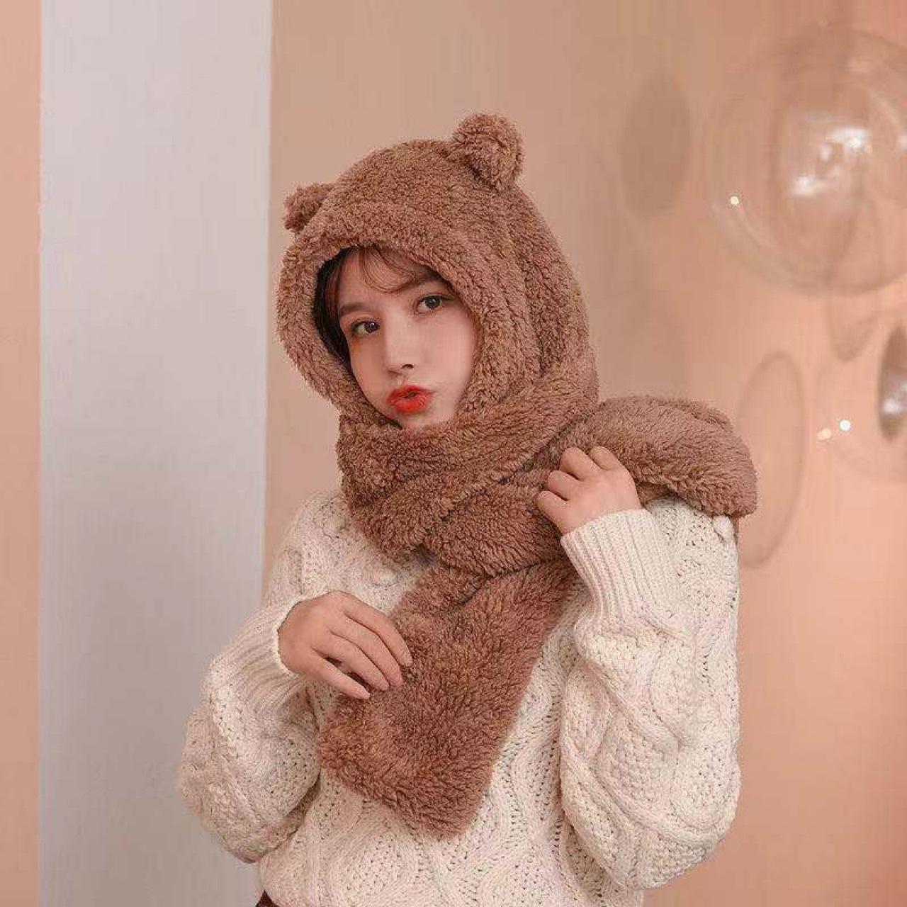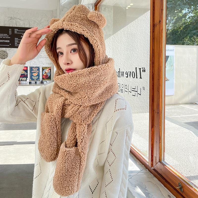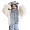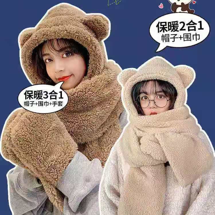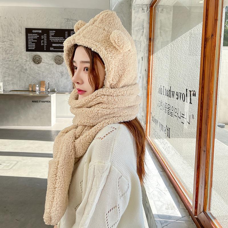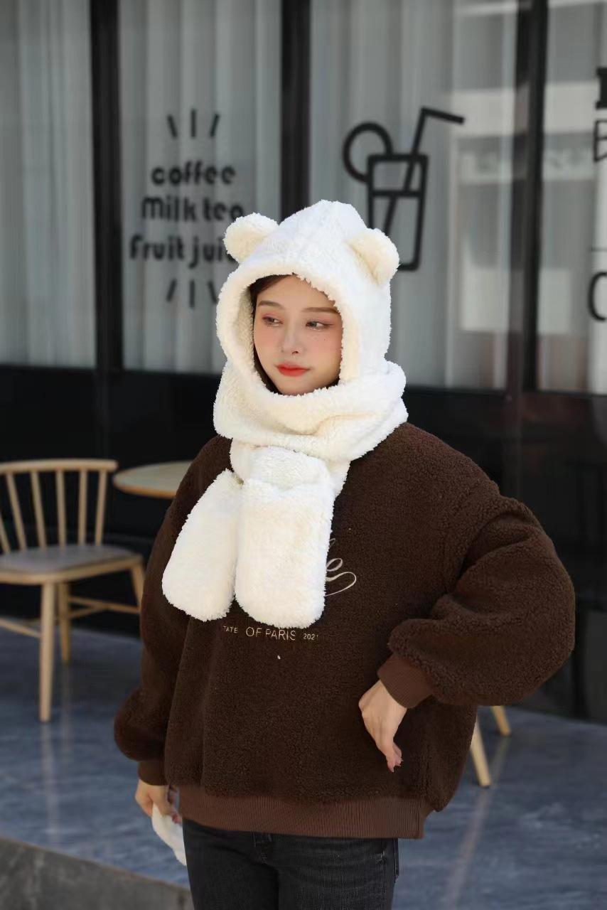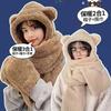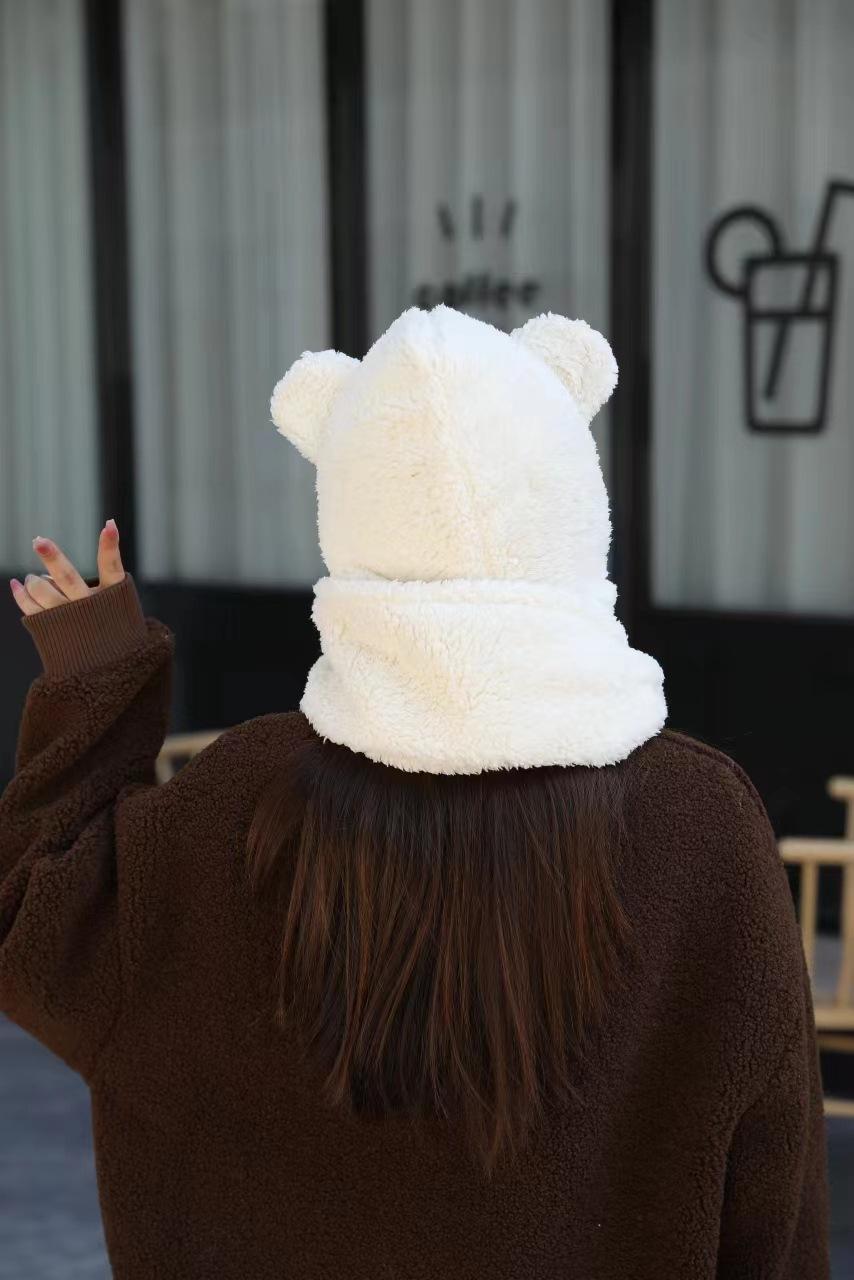 Gorro de oso, bufanda, gorro de terciopelo de una pieza, bonito gorro de punto de invierno para mujer, gorro de lana grueso y cálido con forro polar, venta al por mayor