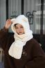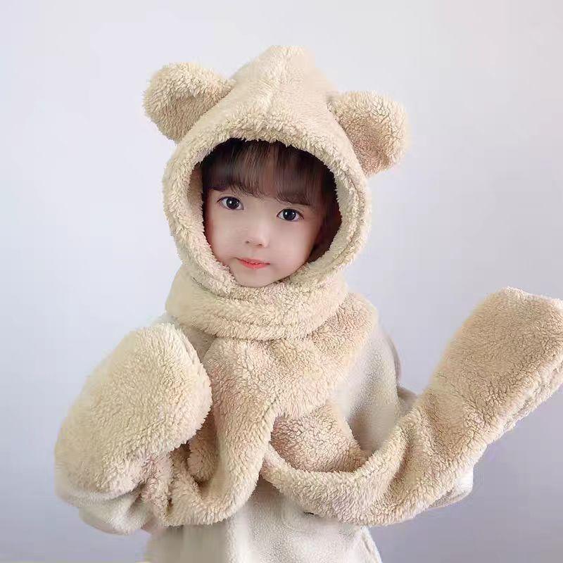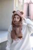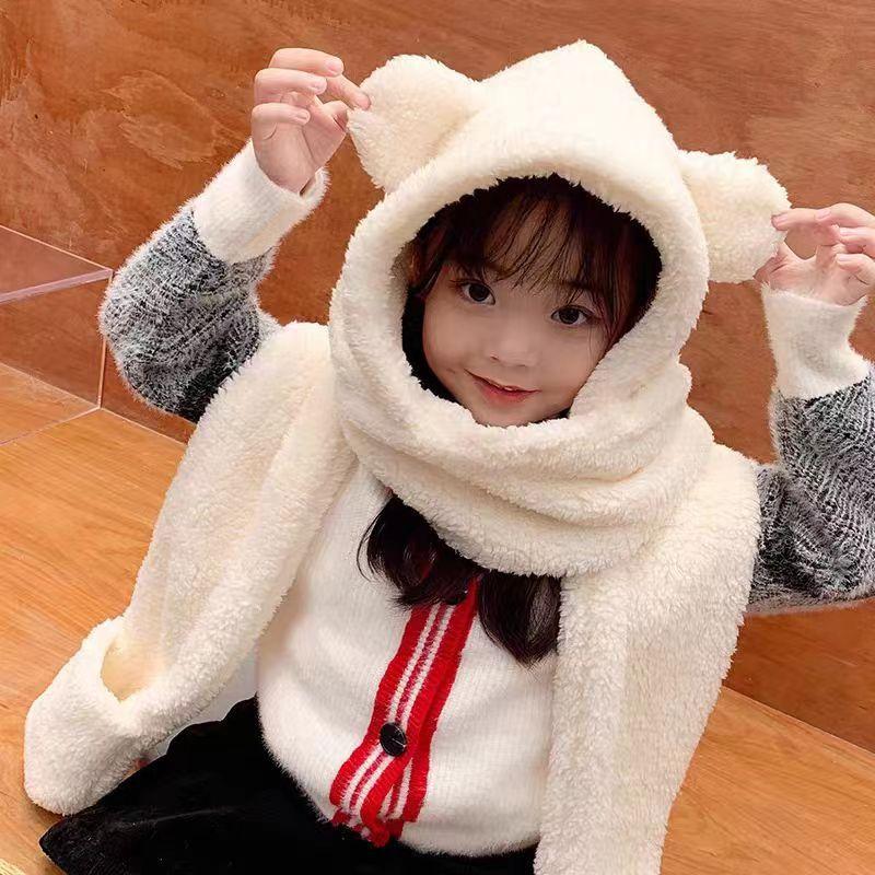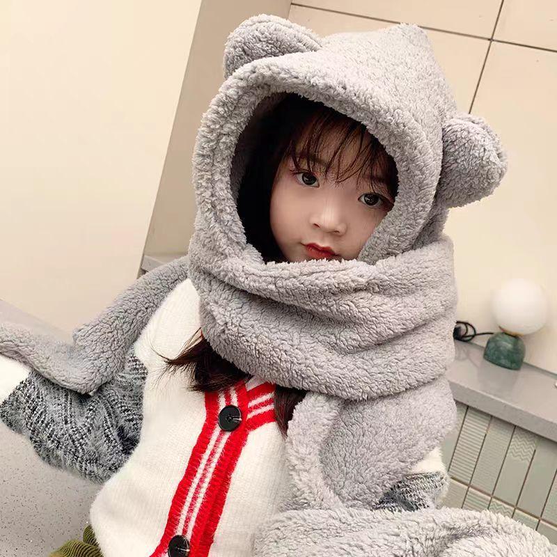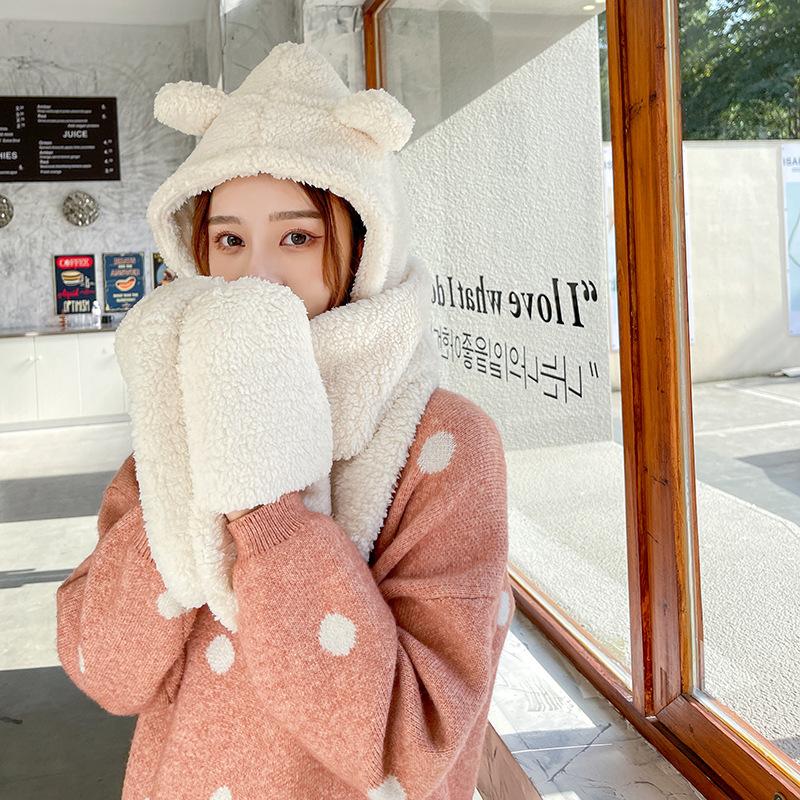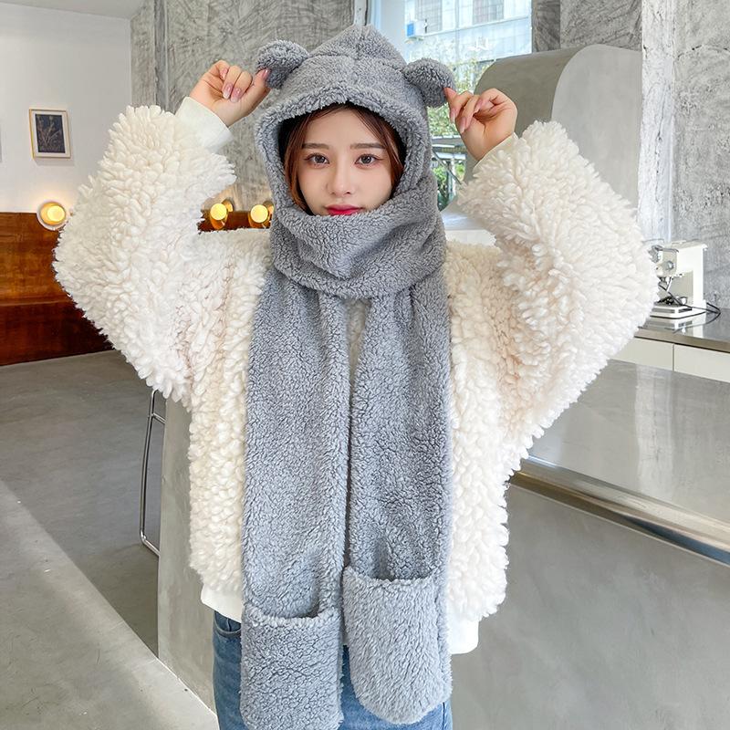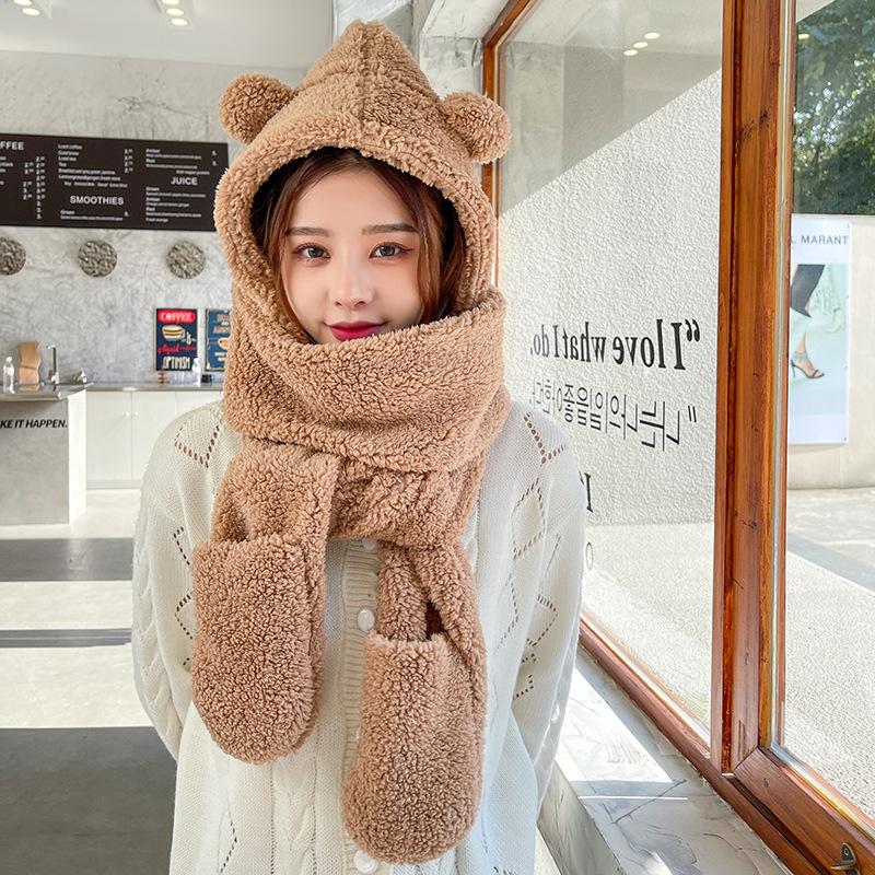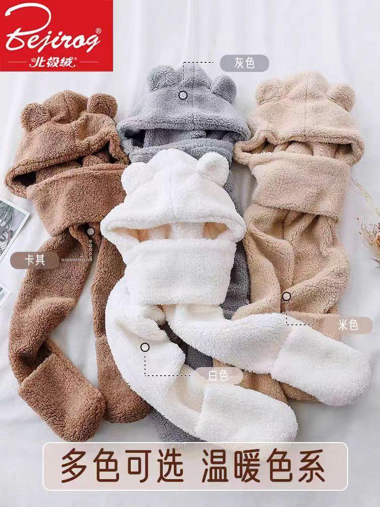 Gorro de oso, bufanda, gorro de terciopelo de una pieza, bonito gorro de punto de invierno para mujer, gorro de lana grueso y cálido con forro polar, venta al por mayor