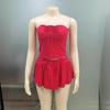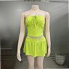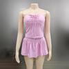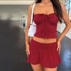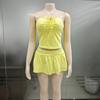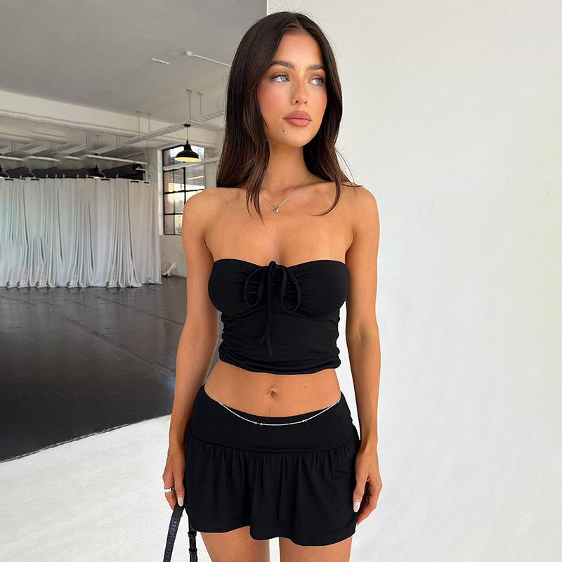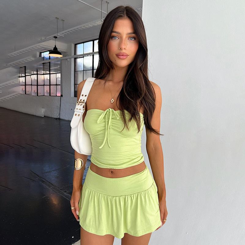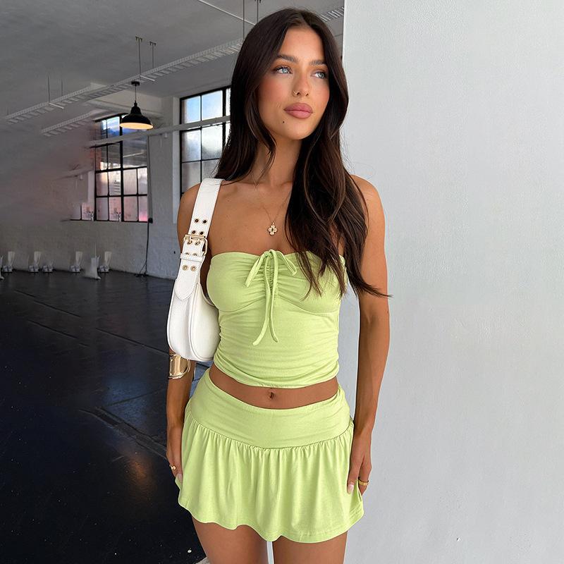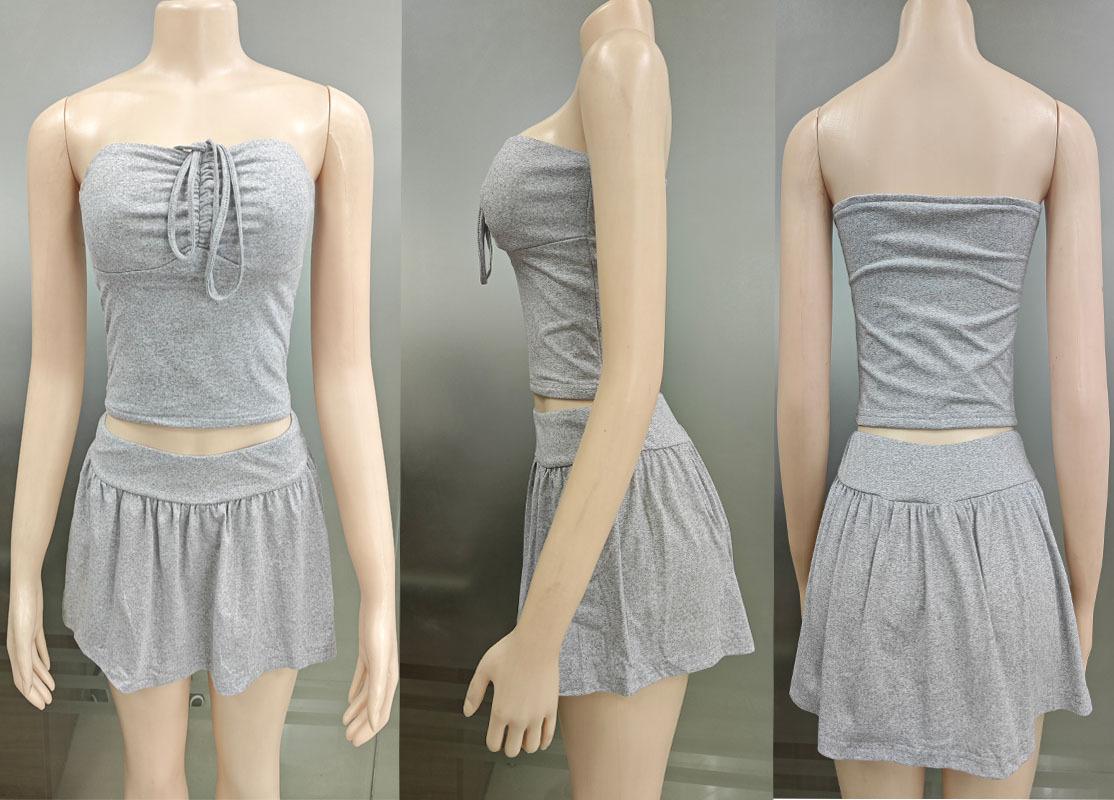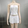 Ropa Transfronteriza Amazon Europea y Americana Casual Sexy Plisado con Cordones Top de Tubo Pantalones y Falda A-Line Traje para Mujer