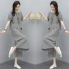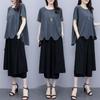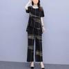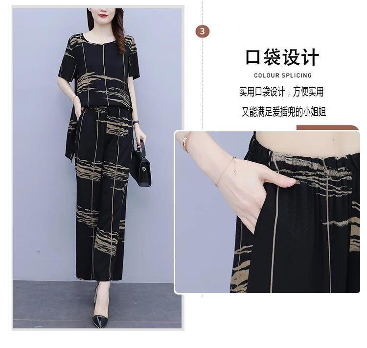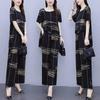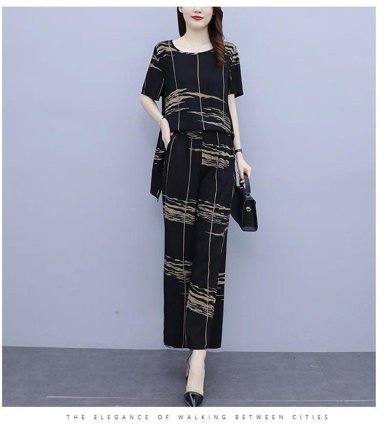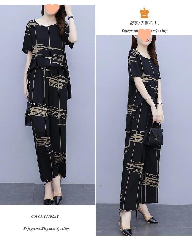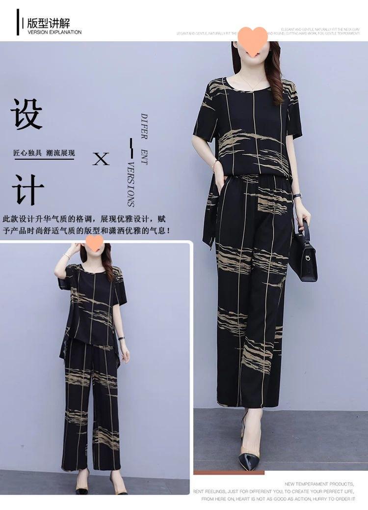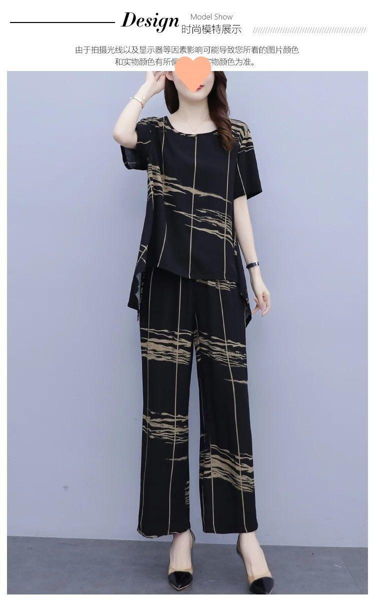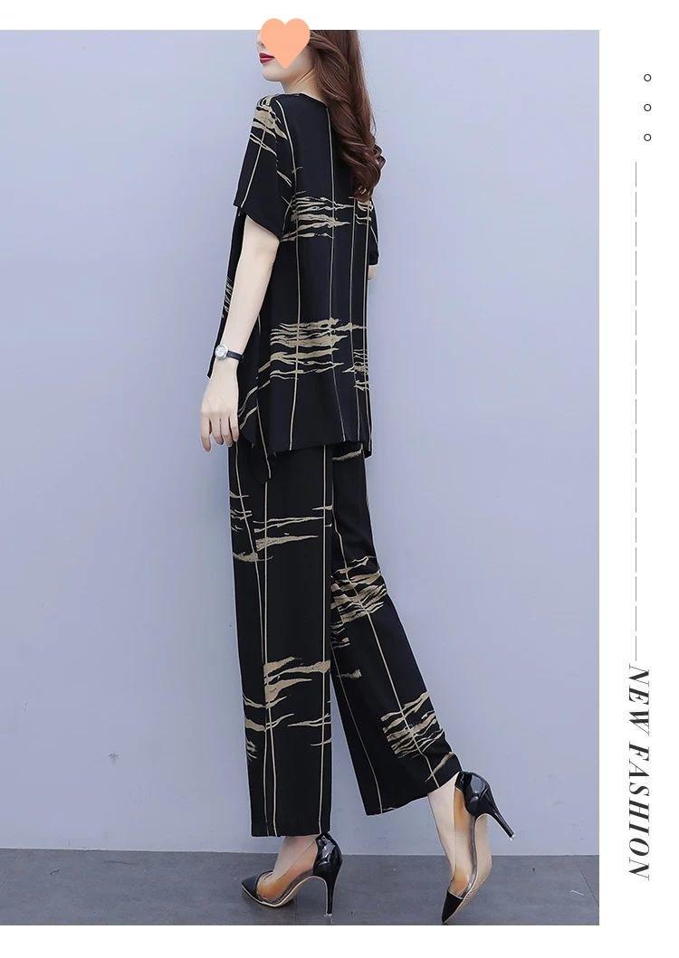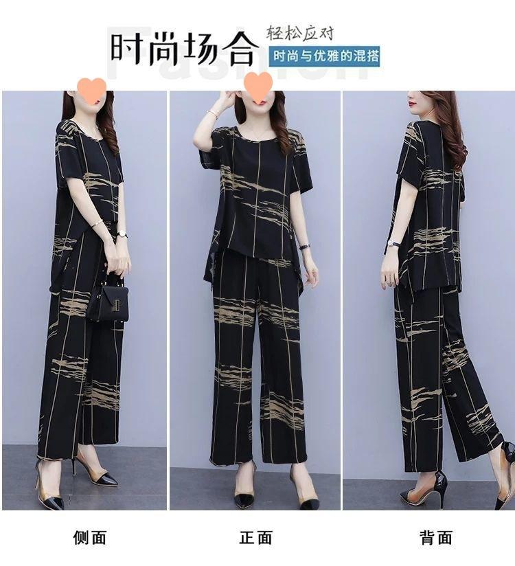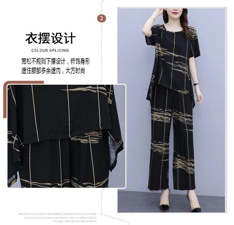 Ropa de talla grande para mujer, pantalones anchos adelgazantes reductores de edad para mamás gorditas, traje informal de verano, moda elegante, traje de dos piezas reductor de edad a la moda
