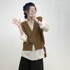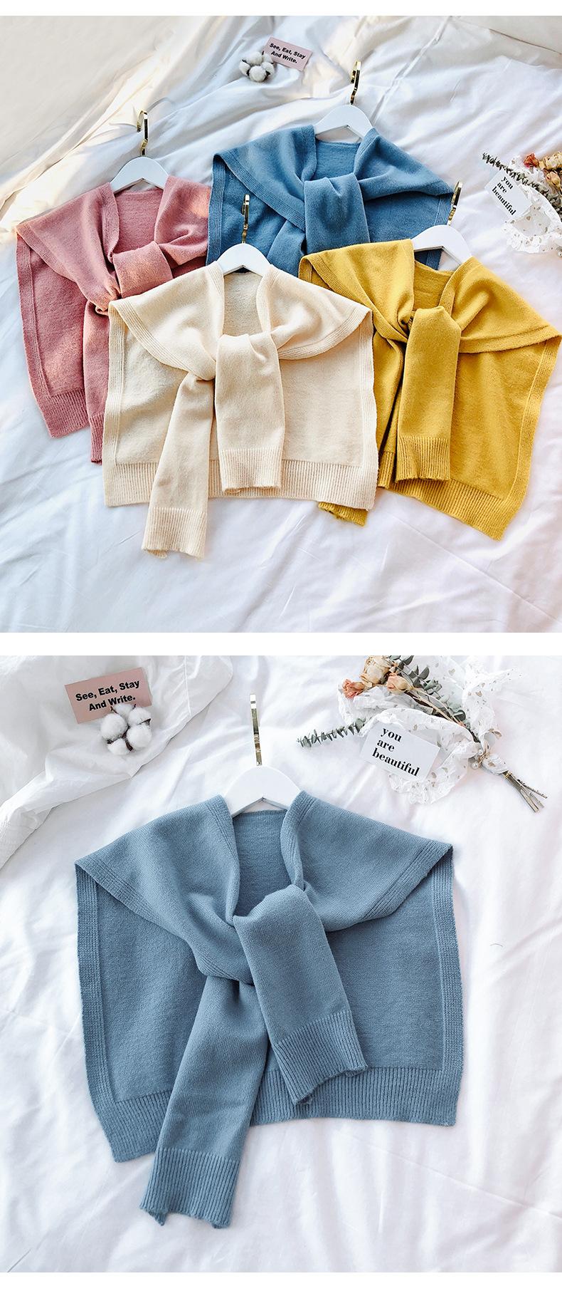 Chaleco estilo coreano otoño corto chal de punto para mujer bufanda combinable exterior lana cuello falso capa para hombros