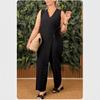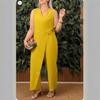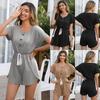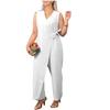 Pantalones casuales con cinturón cruzado y cuello para mujer, de color sólido, de Amazon, europeos y americanos, 2025