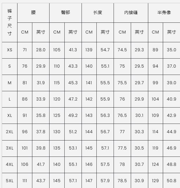 XS, S, M, L, XL, 2XL, 3XL, 4XL, 5XL