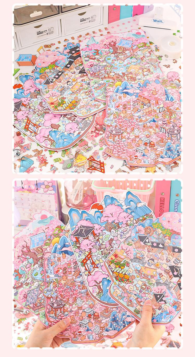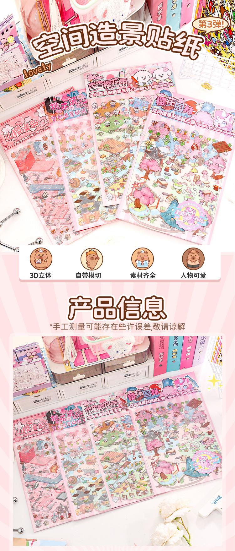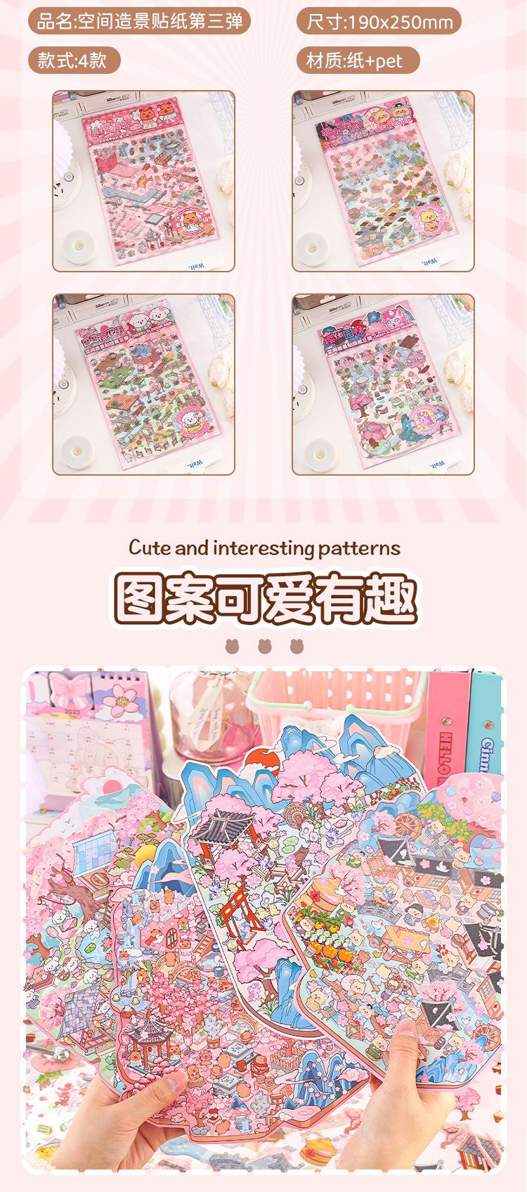 Pegatina de paisajismo espacial, tercera viñeta, flor de cerezo primaveral, paisajismo estéreo, pegatina de PET, bricolaje, escena en miniatura sin cortes