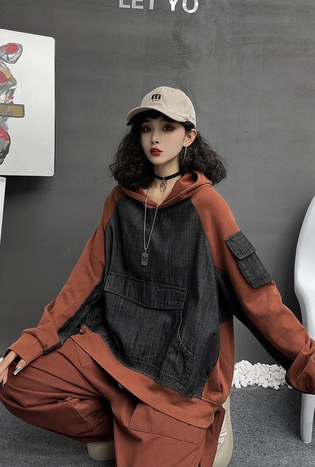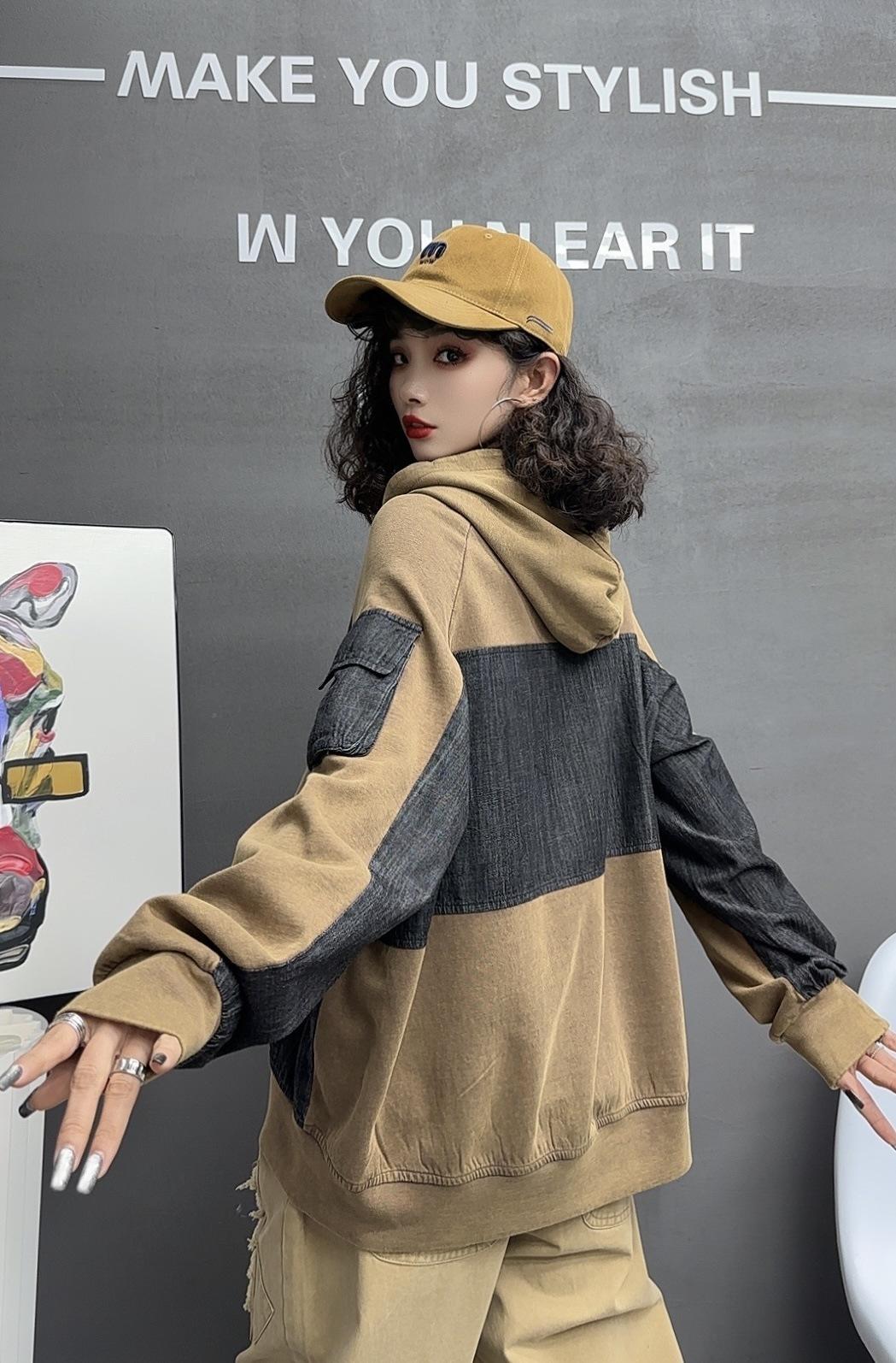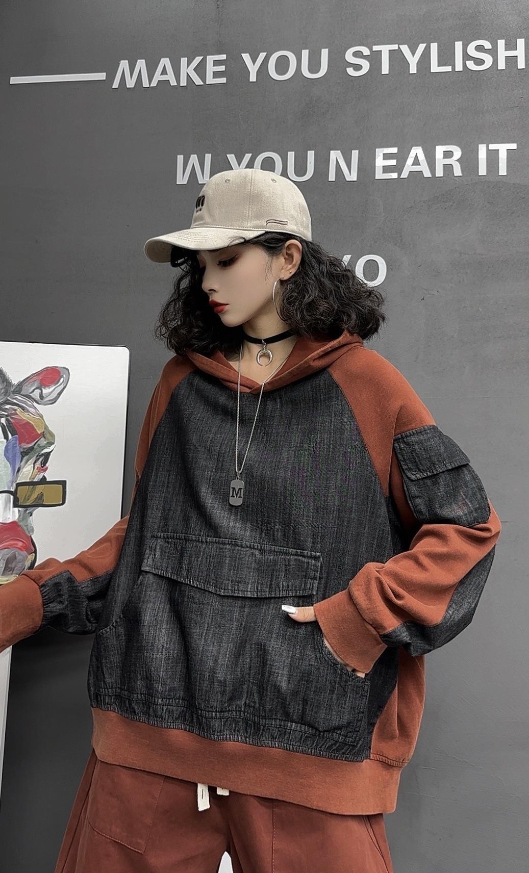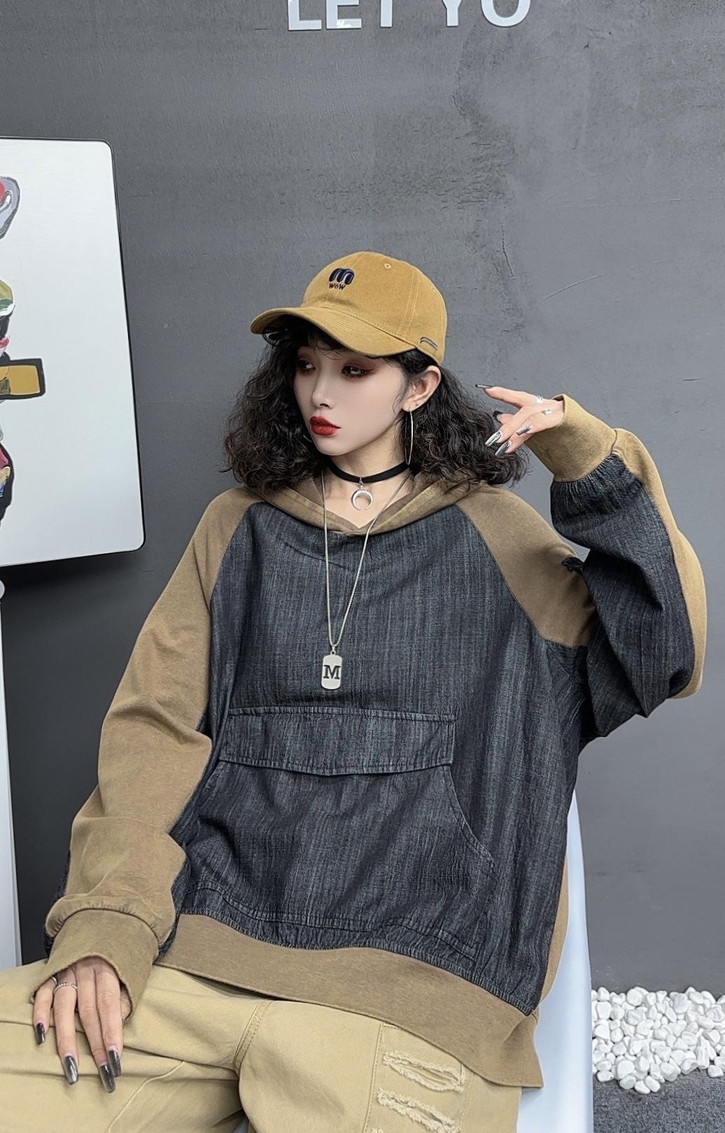 Sudadera con capucha de primavera para mujer, estilo informal, con colores a juego, holgada, talla grande, estilo retro, con contraste de colores, combina con todo.