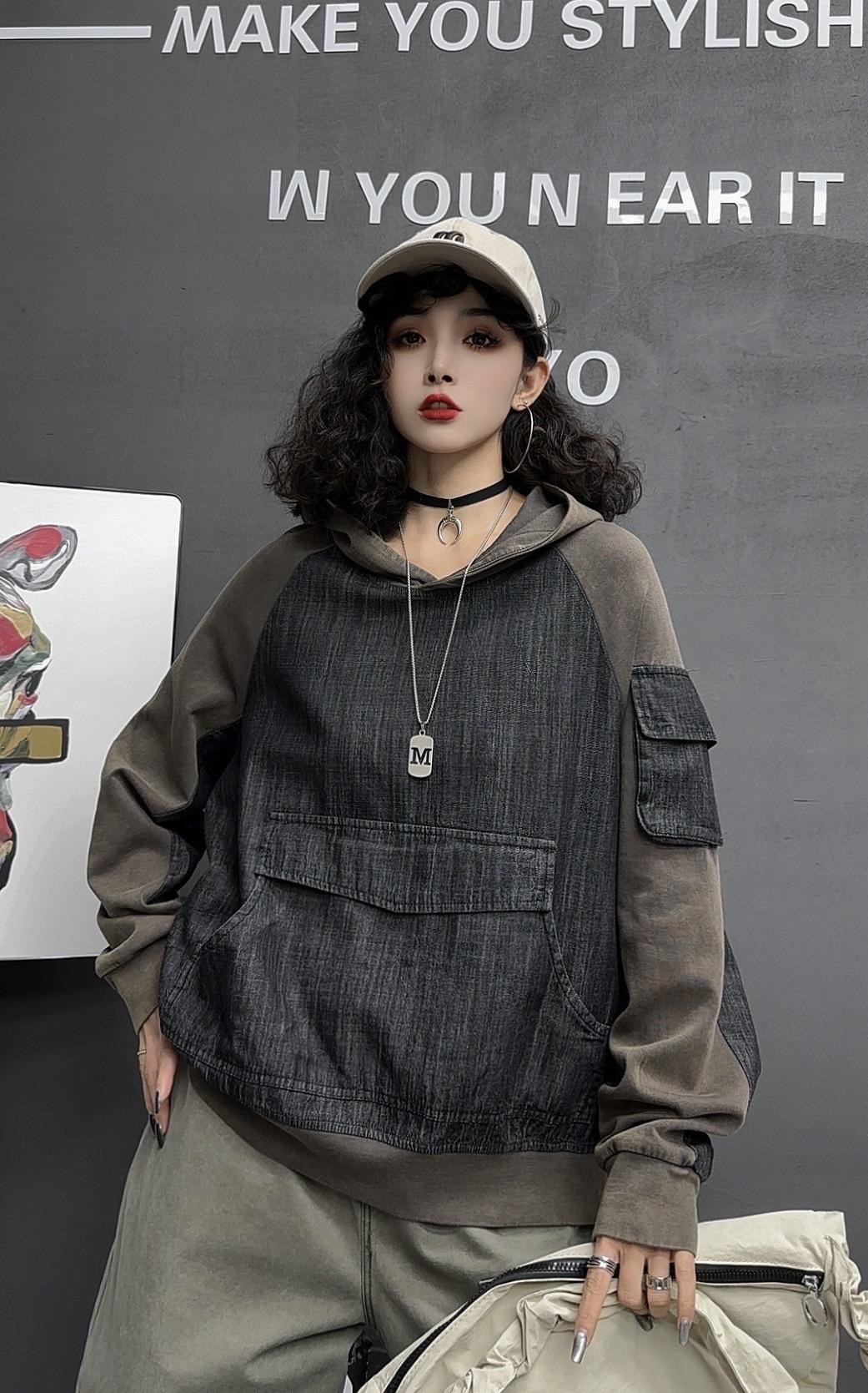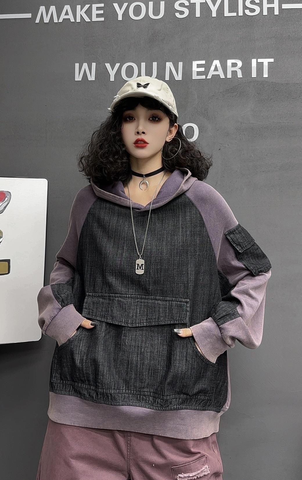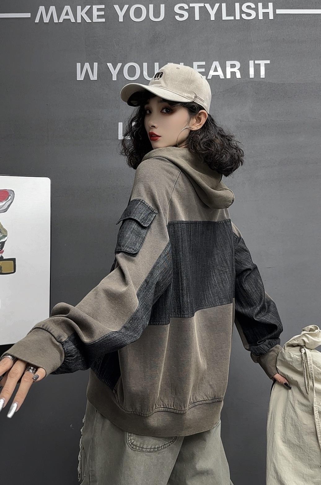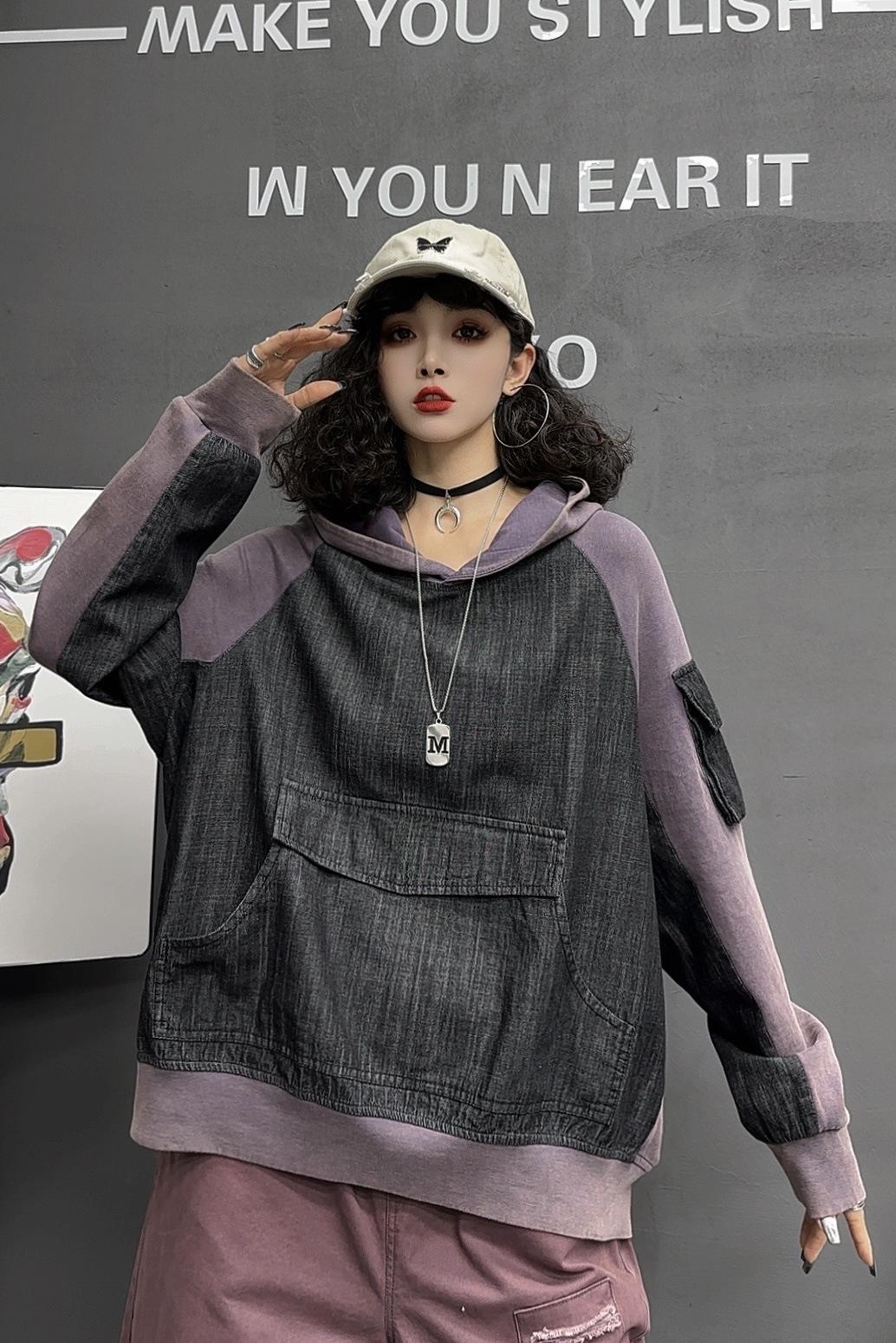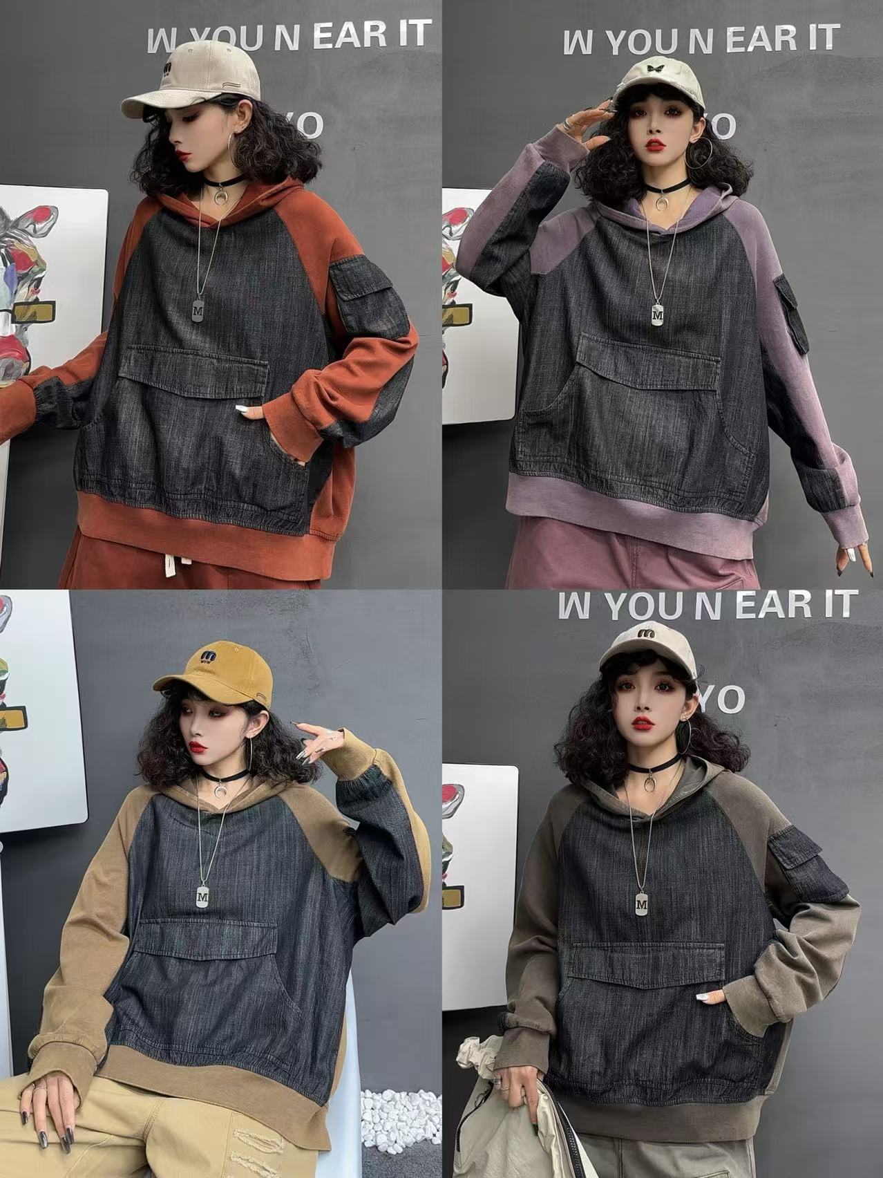Sudadera con capucha de primavera para mujer, estilo informal, con colores a juego, holgada, talla grande, estilo retro, con contraste de colores, combina con todo.