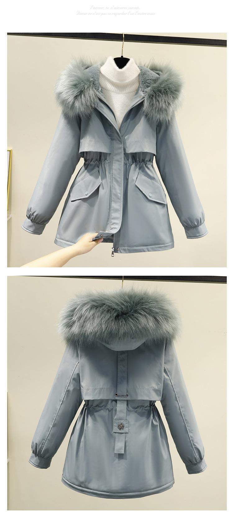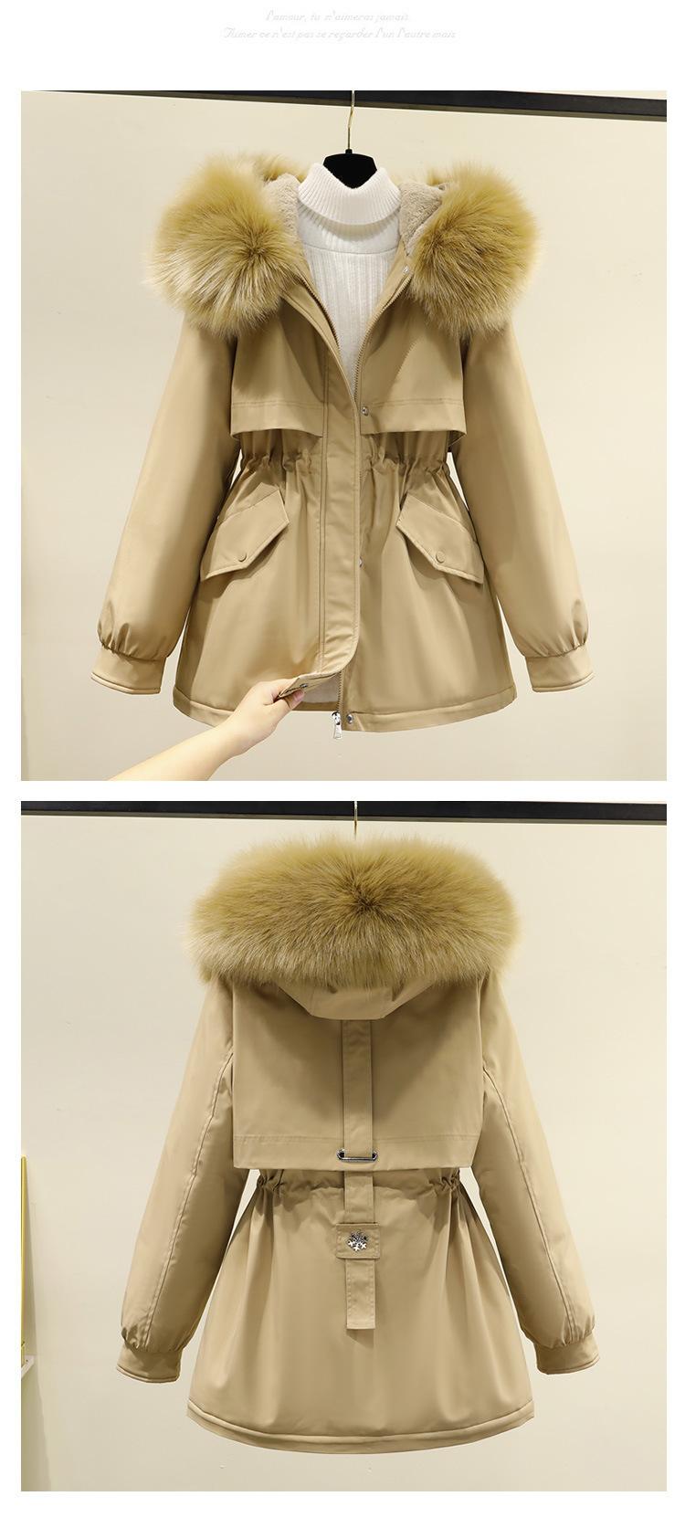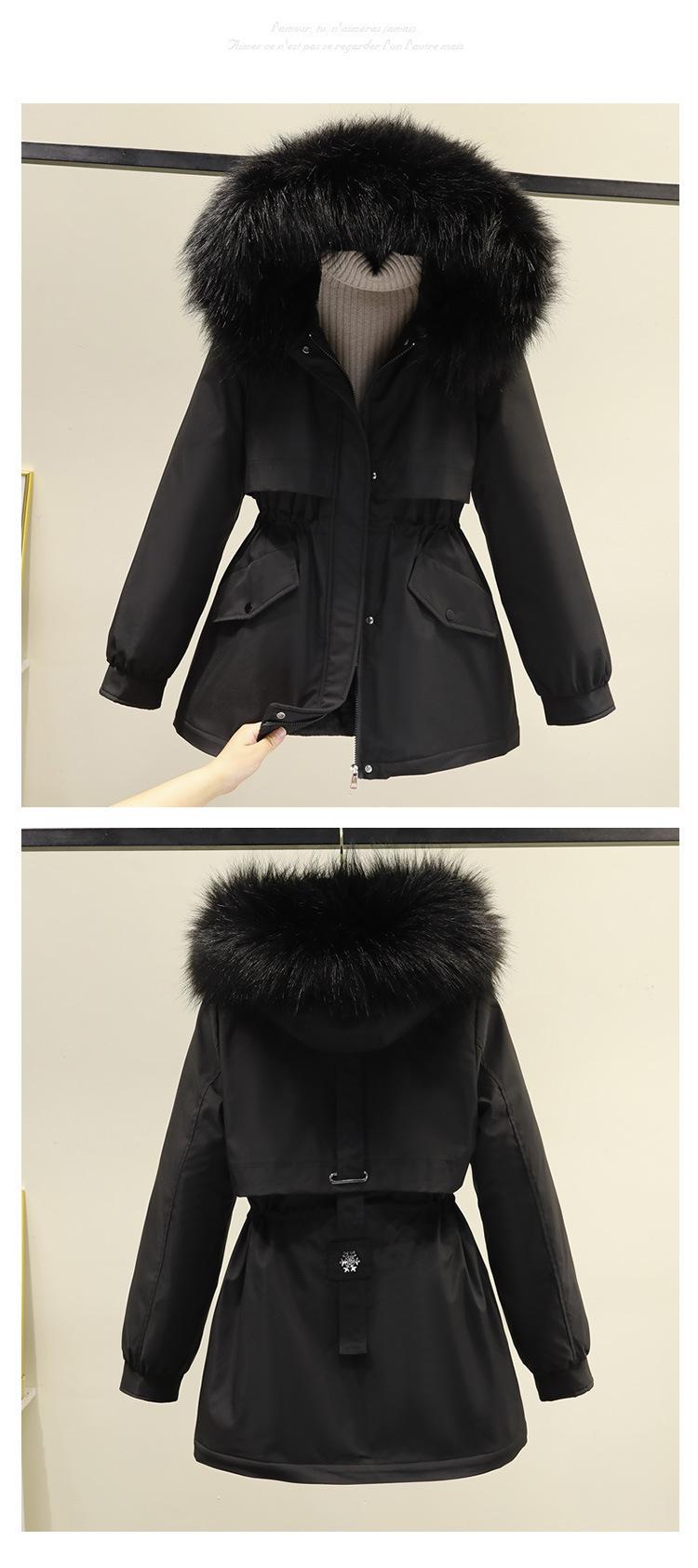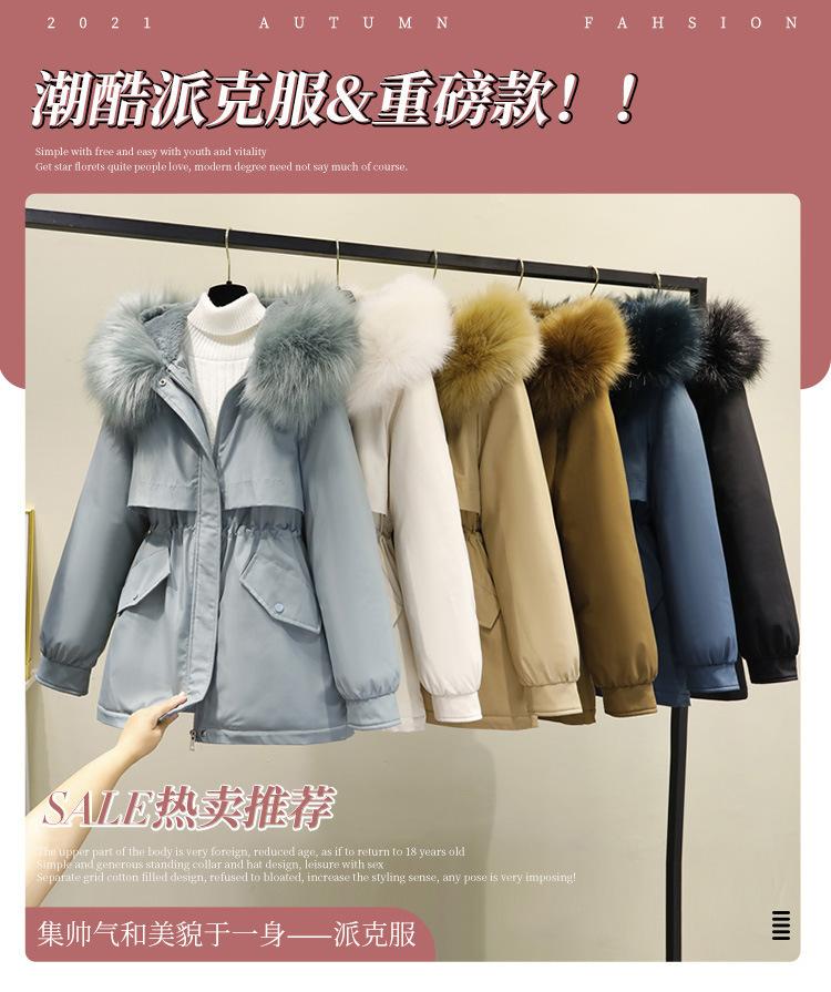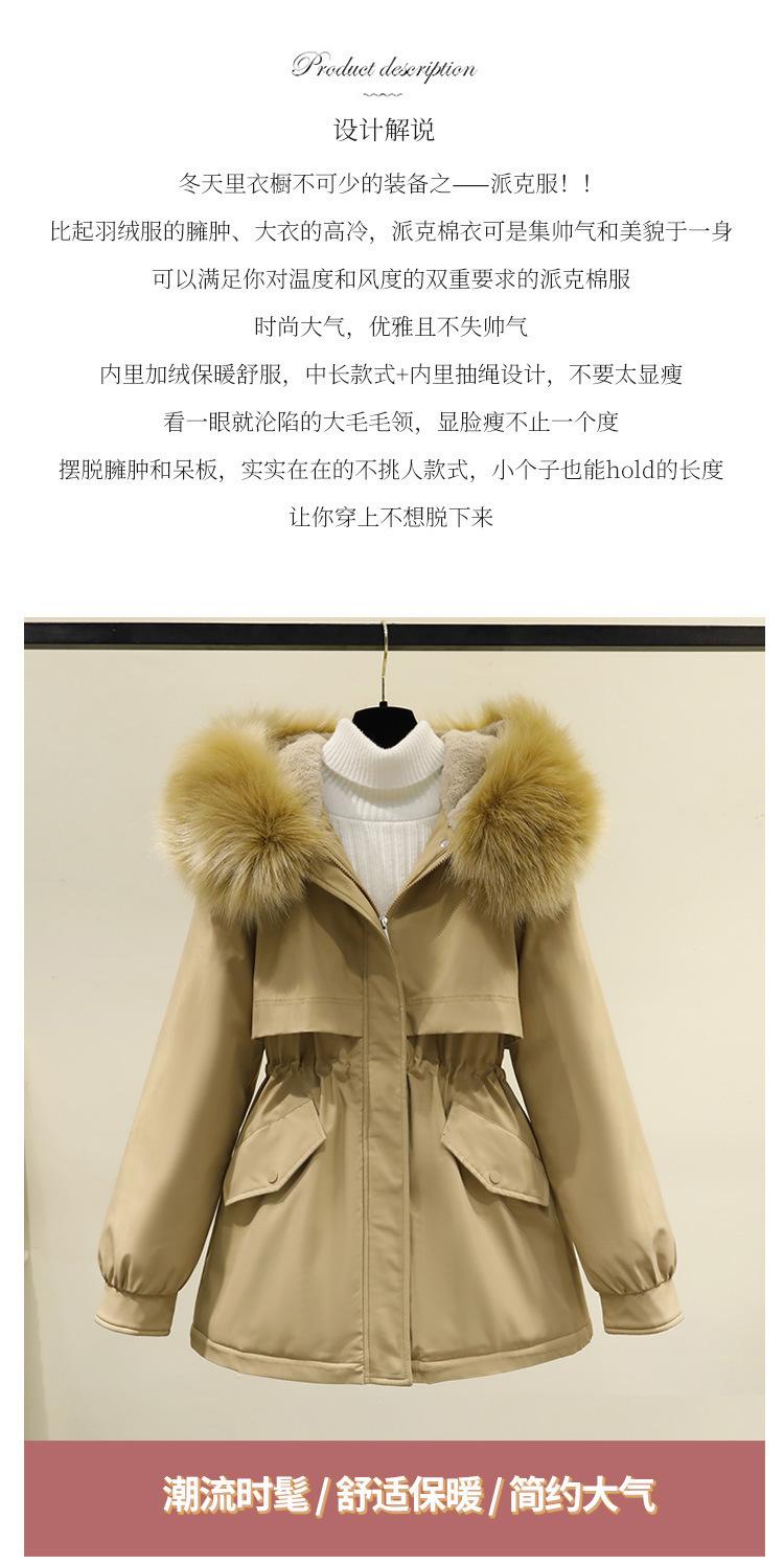 Zipper, flap pocket pants, buttons, fur collar, stereo decoration, shirring