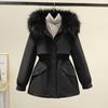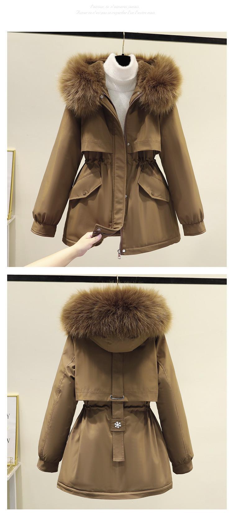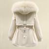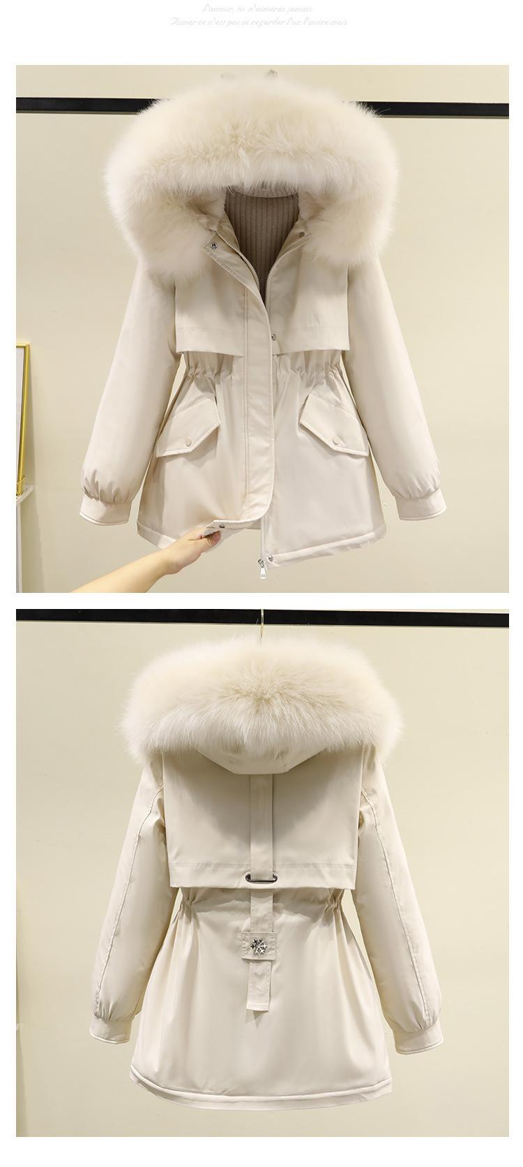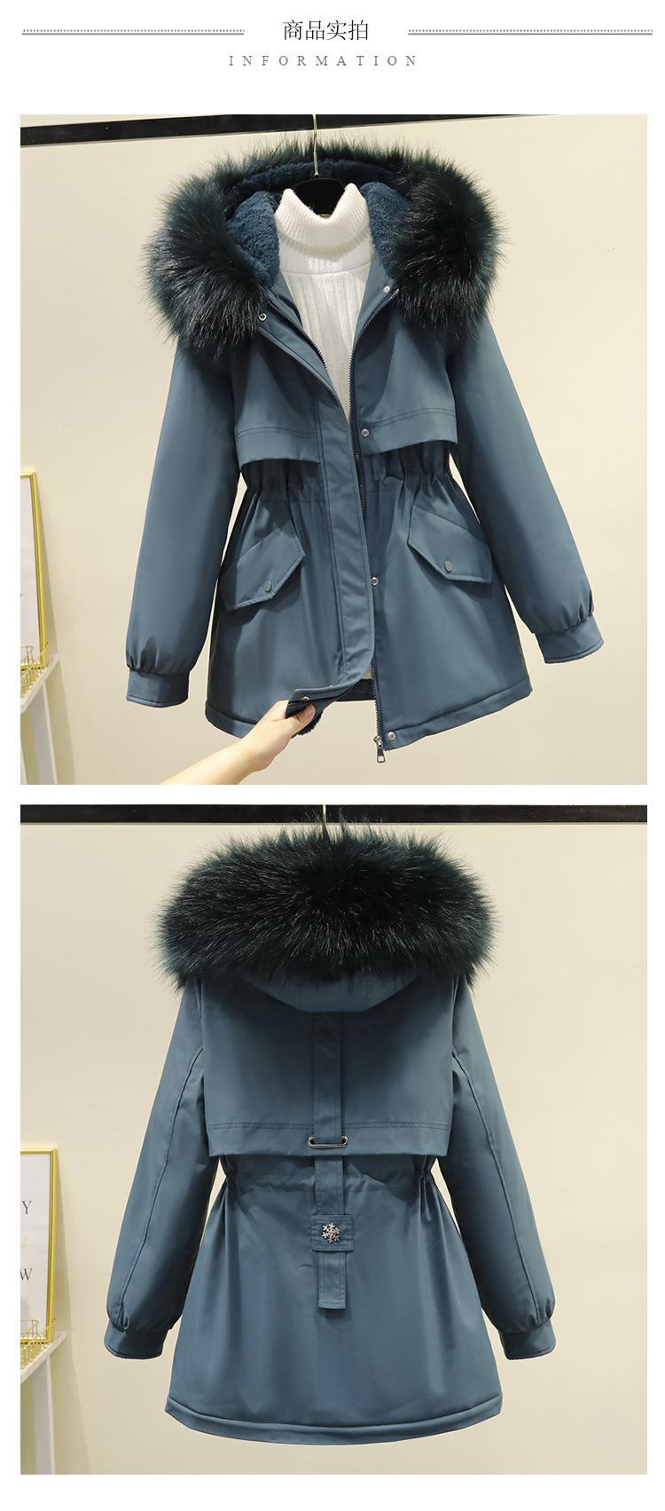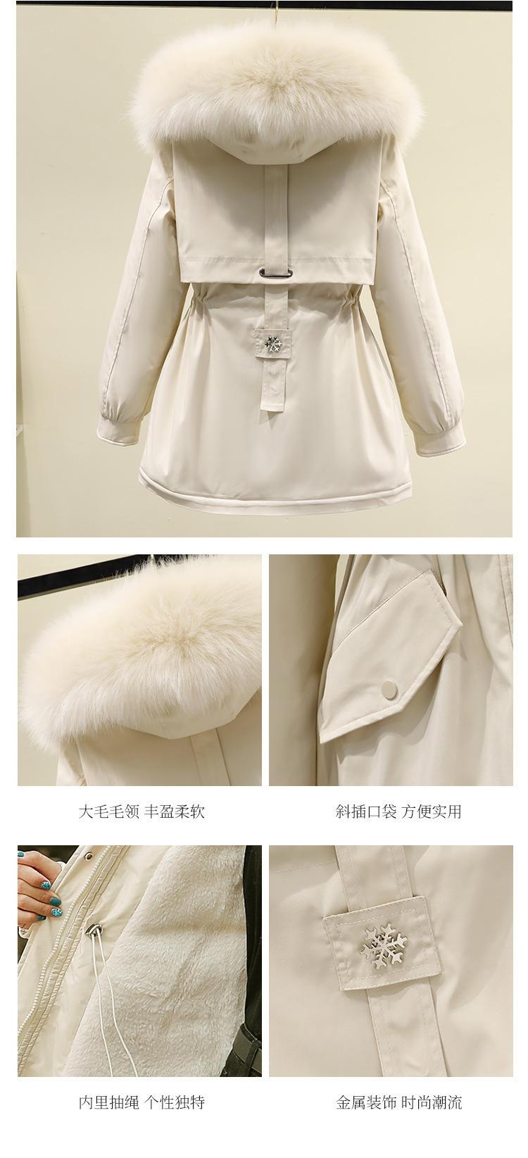 Zipper, flap pocket pants, buttons, fur collar, stereo decoration, shirring