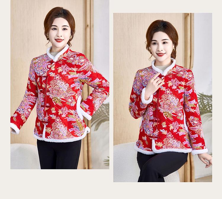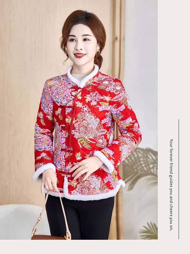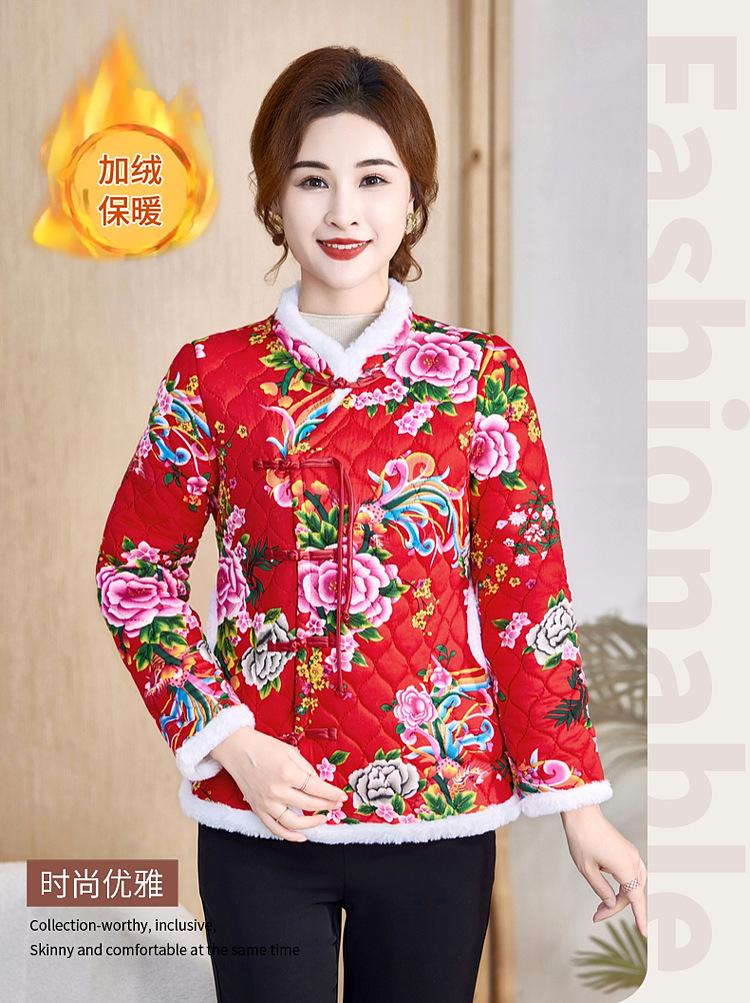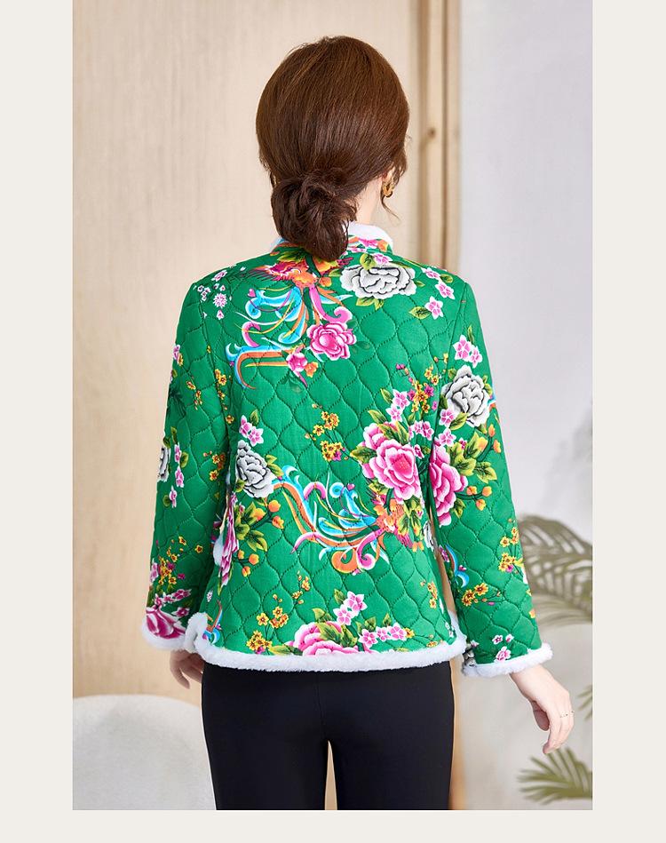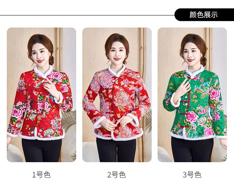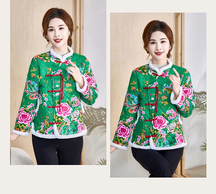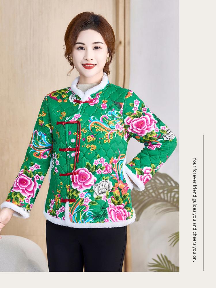 Nuevo estilo chino, nuevo estilo, abrigo acolchado de algodón, cálido abrigo acolchado de algodón con flores, abrigo grueso de Internet, popular en el noreste, retro, con forro polar, abrigo acolchado de algodón de invierno para madres.