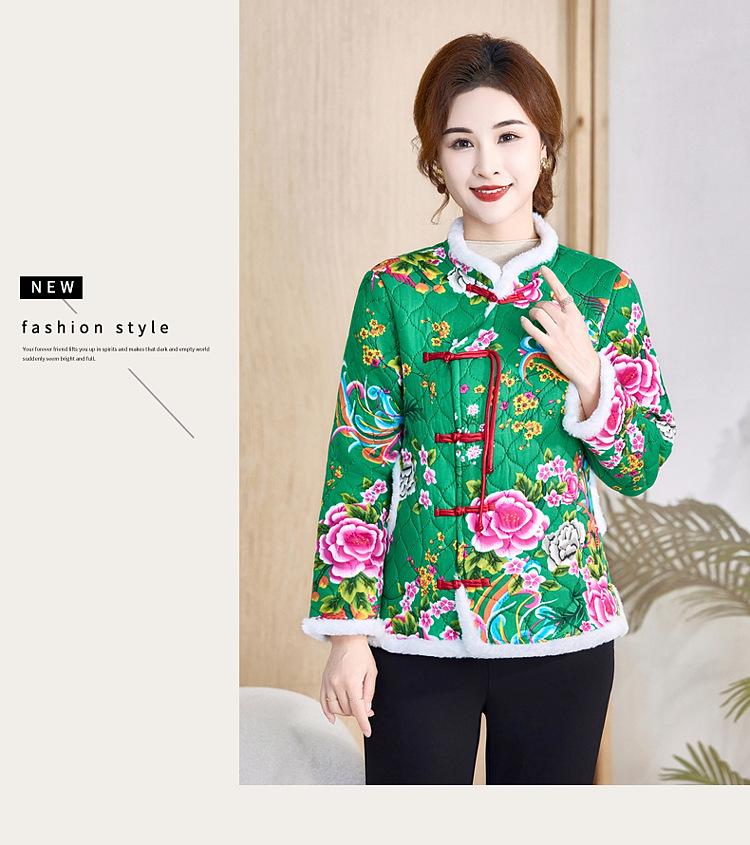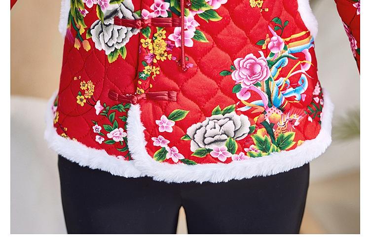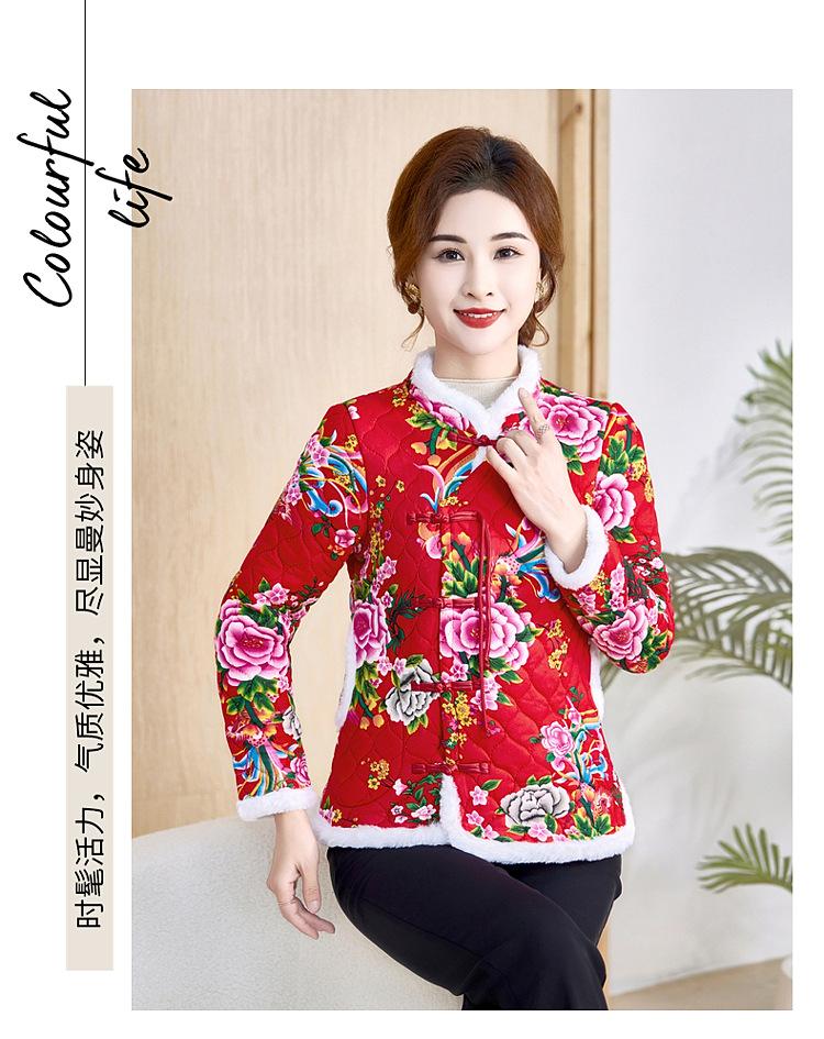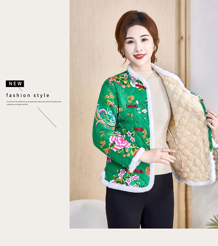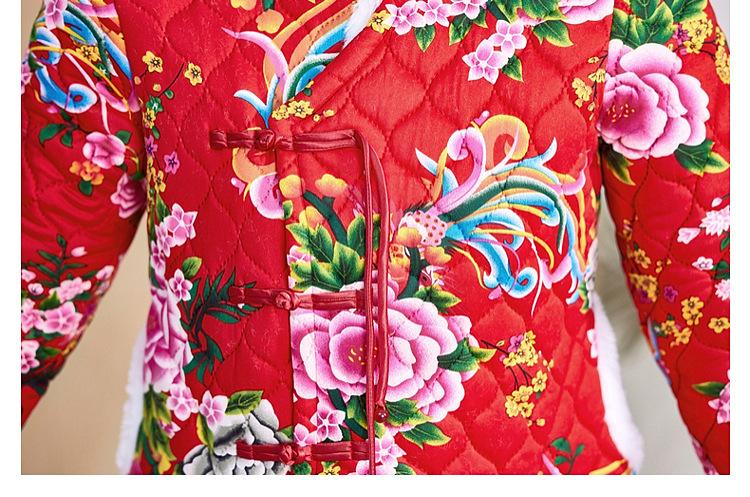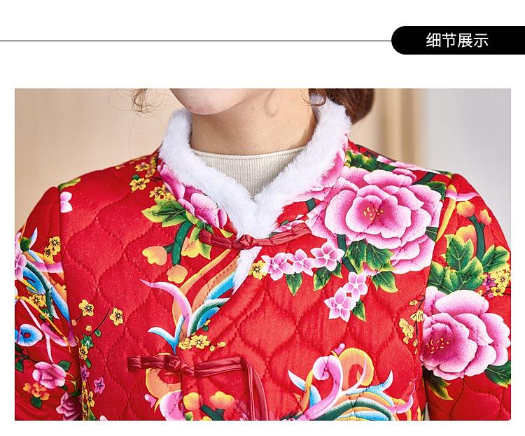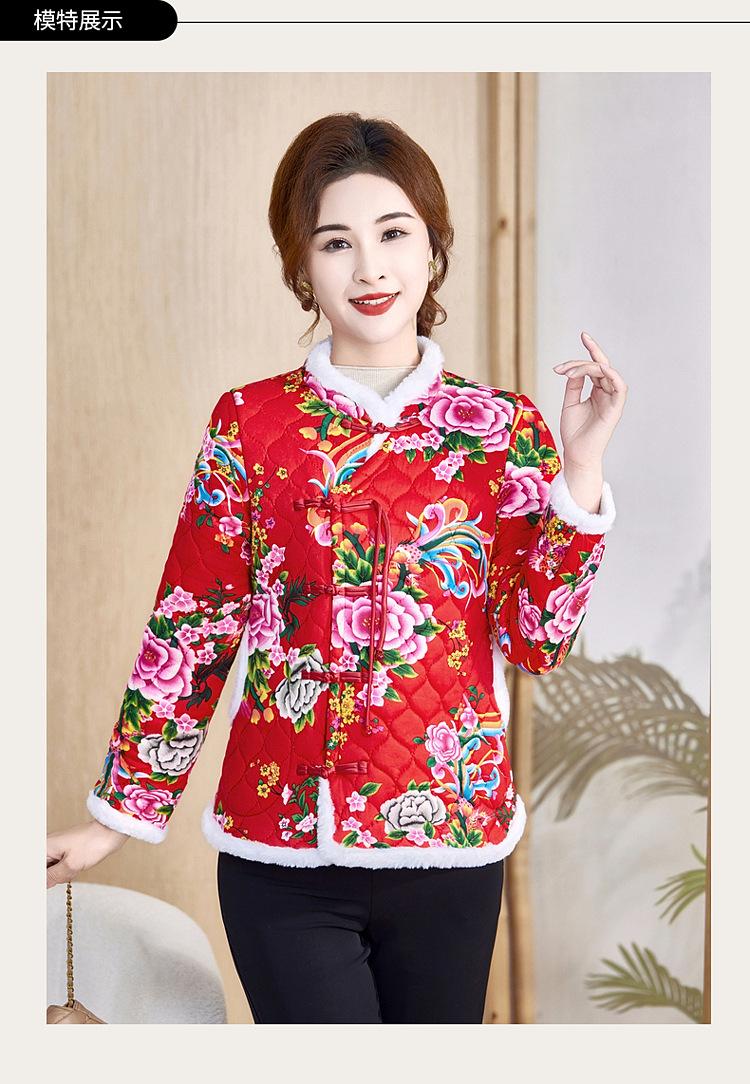 Nuevo estilo chino, nuevo estilo, abrigo acolchado de algodón, cálido abrigo acolchado de algodón con flores, abrigo grueso de Internet, popular en el noreste, retro, con forro polar, abrigo acolchado de algodón de invierno para madres.