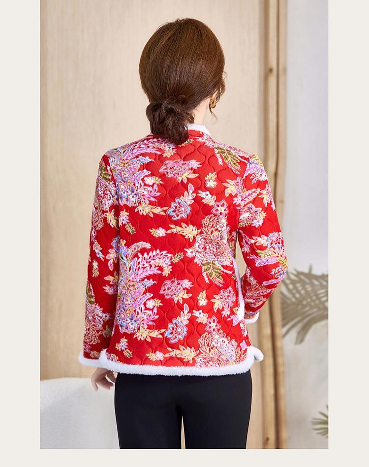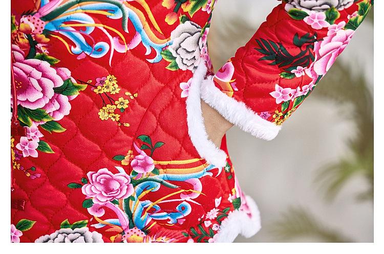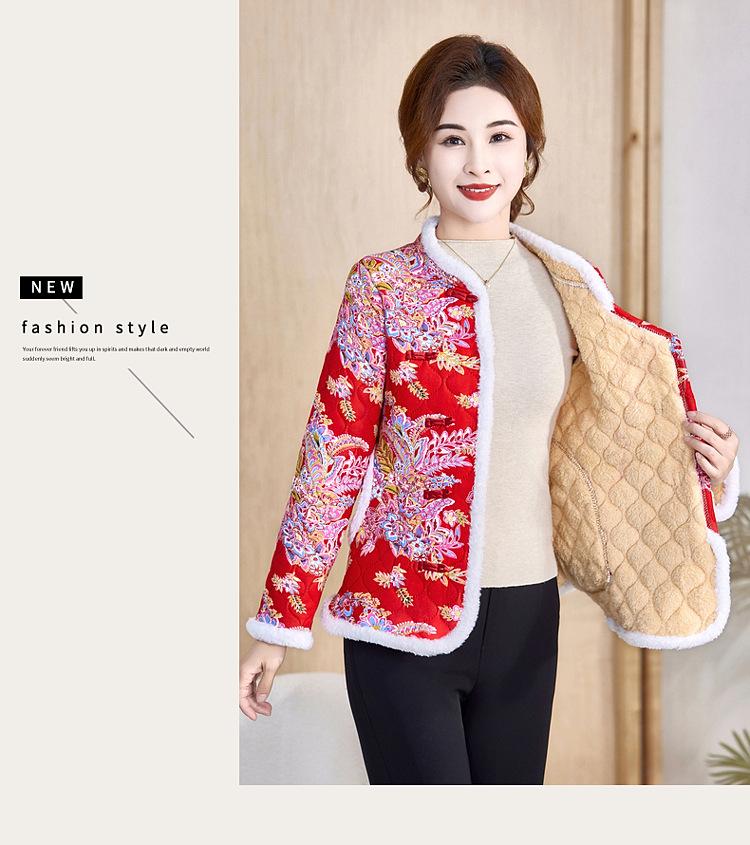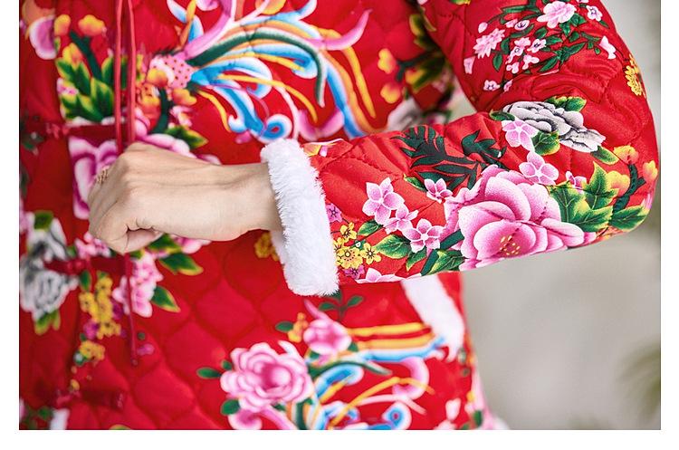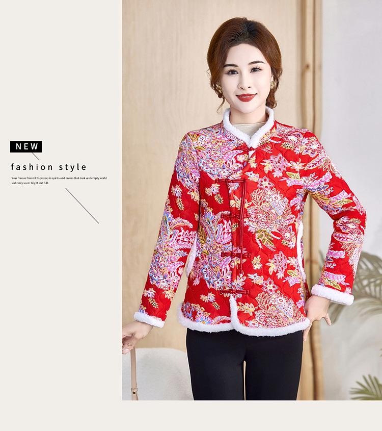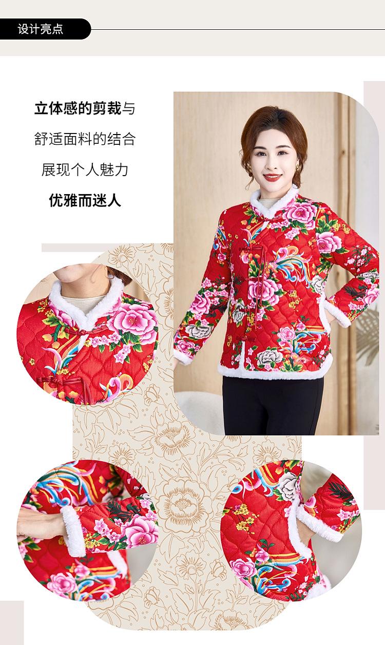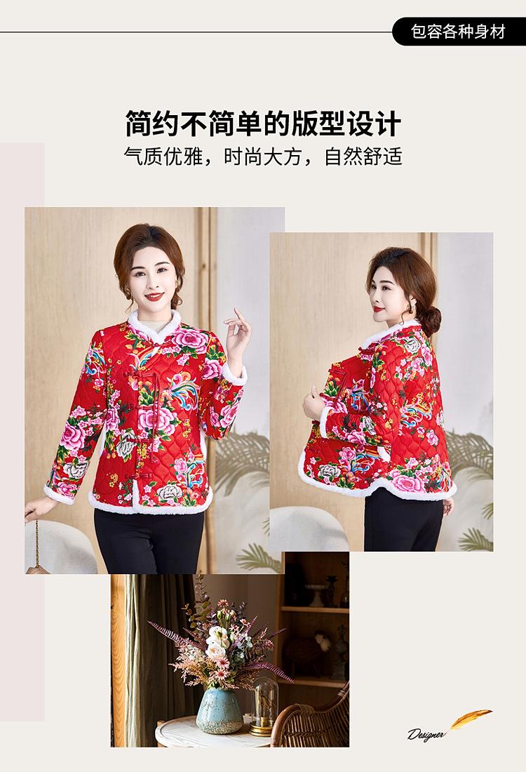 Nuevo estilo chino, nuevo estilo, abrigo acolchado de algodón, cálido abrigo acolchado de algodón con flores, abrigo grueso de Internet, popular en el noreste, retro, con forro polar, abrigo acolchado de algodón de invierno para madres.