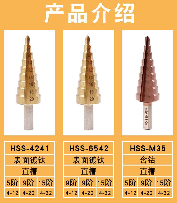 Broca escalonada de ranura recta con vástago hexagonal y ranura en espiral, broca Baota, broca escalonada, escariador, apto para escariado