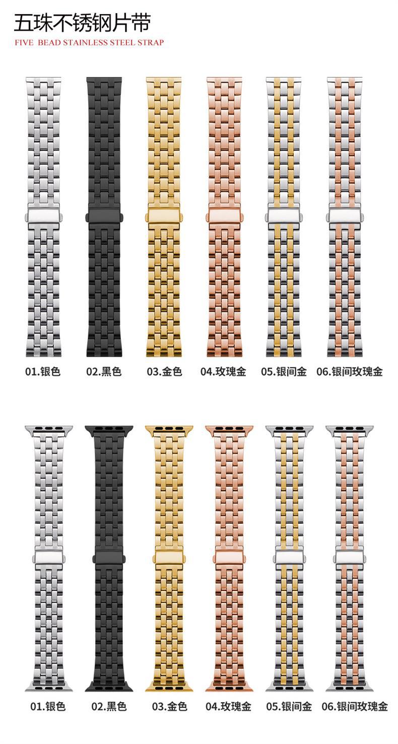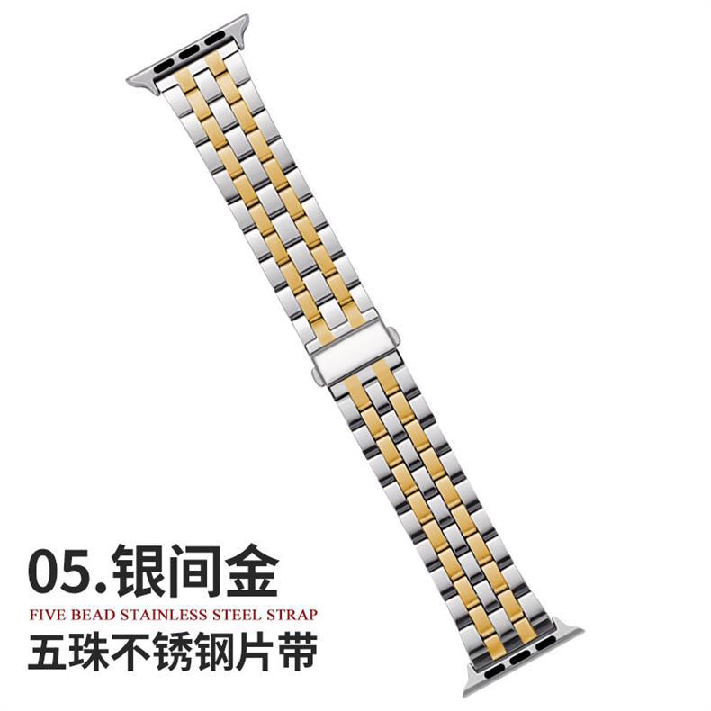 Adecuado para Apple Watch Correa de Acero Inoxidable de Cinco Eslabones Hebilla iWatch Correa para Huawei Watch Correa para Reloj