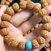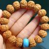 Pulsera Rey del Árbol de cinco pétalos, tamaño grande Rey del Árbol, pulsera con patrón de Tiranosaurio, doble dragón de carne completa, misma madera limpiada piel amarilla jengibre de alta calidad. Tamaño alrededor de 13-14 mm, condición como se muestra