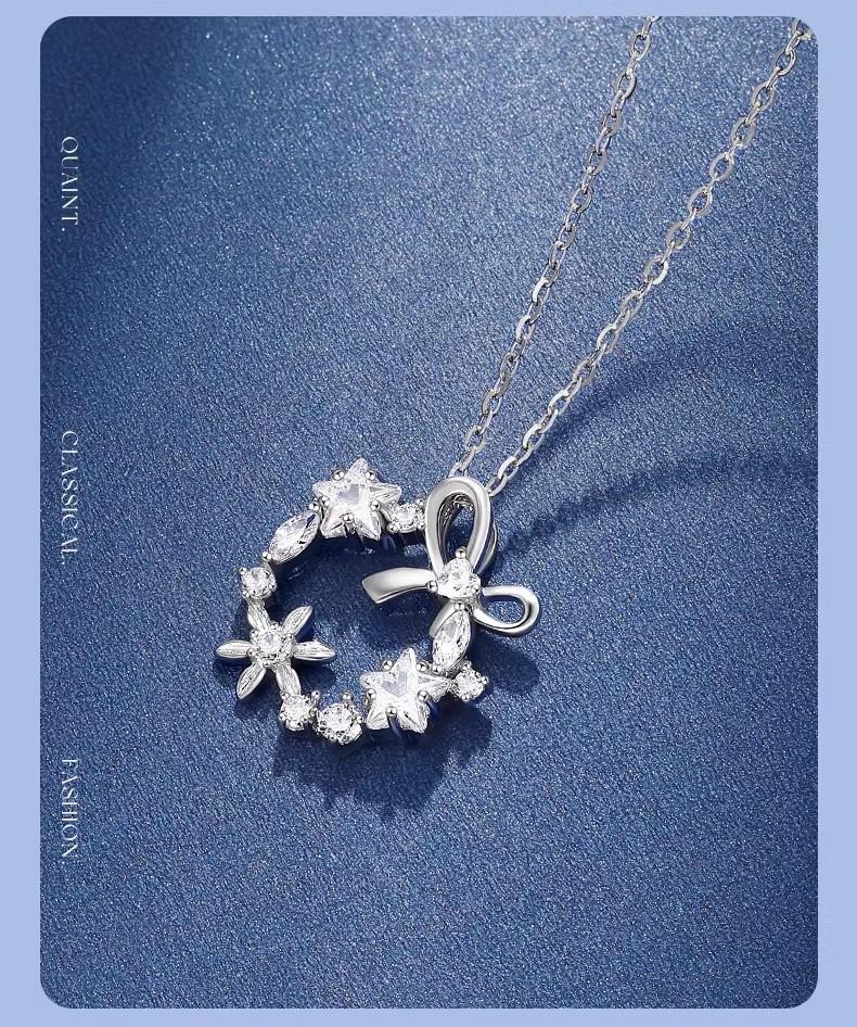 Collar de Plata Esterlina S925 Lazo Corona de la Suerte para Mujer Primavera y Verano Nueva Entrada Lujo Nicho Cadena Clavícula para Novia